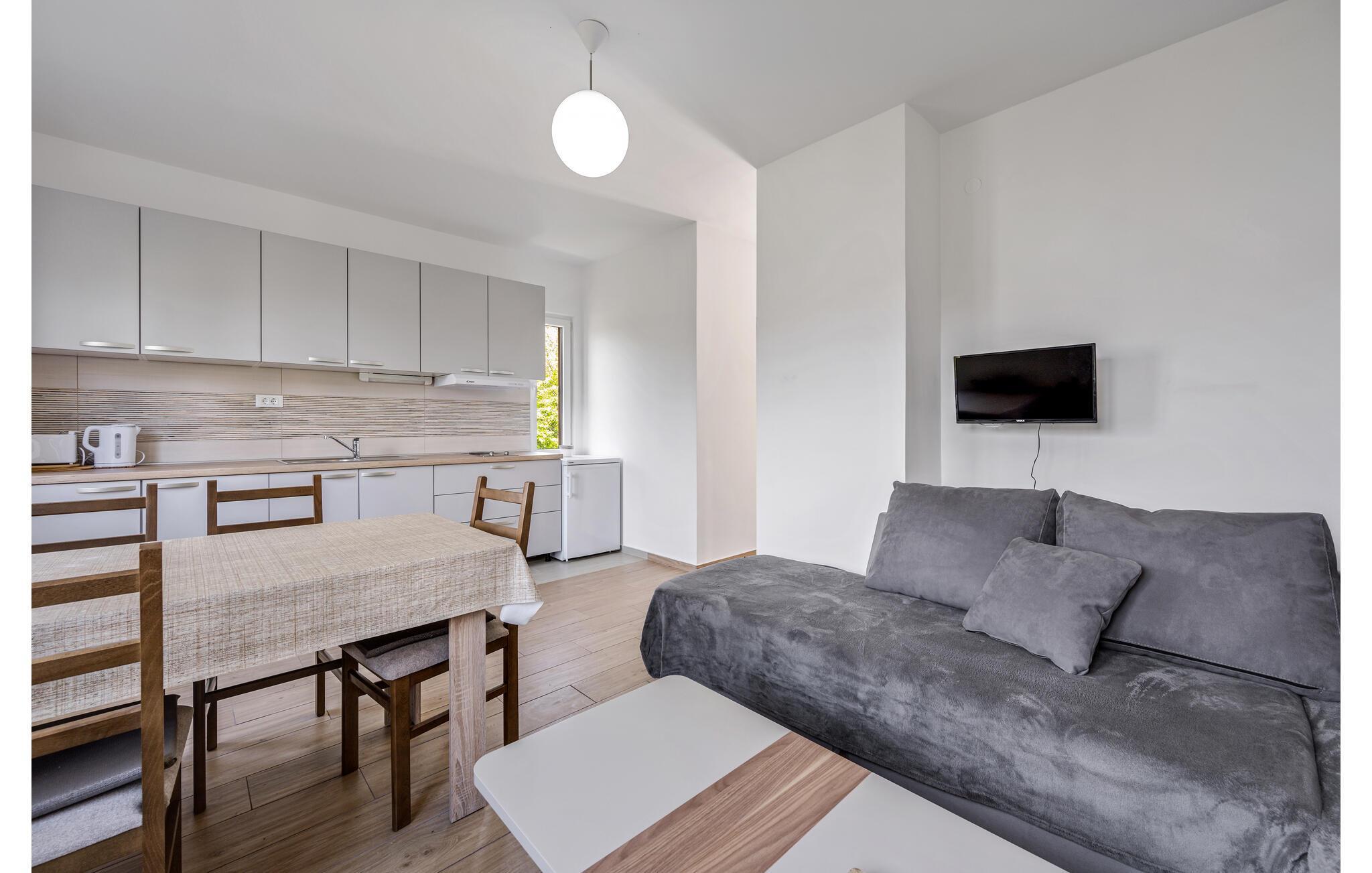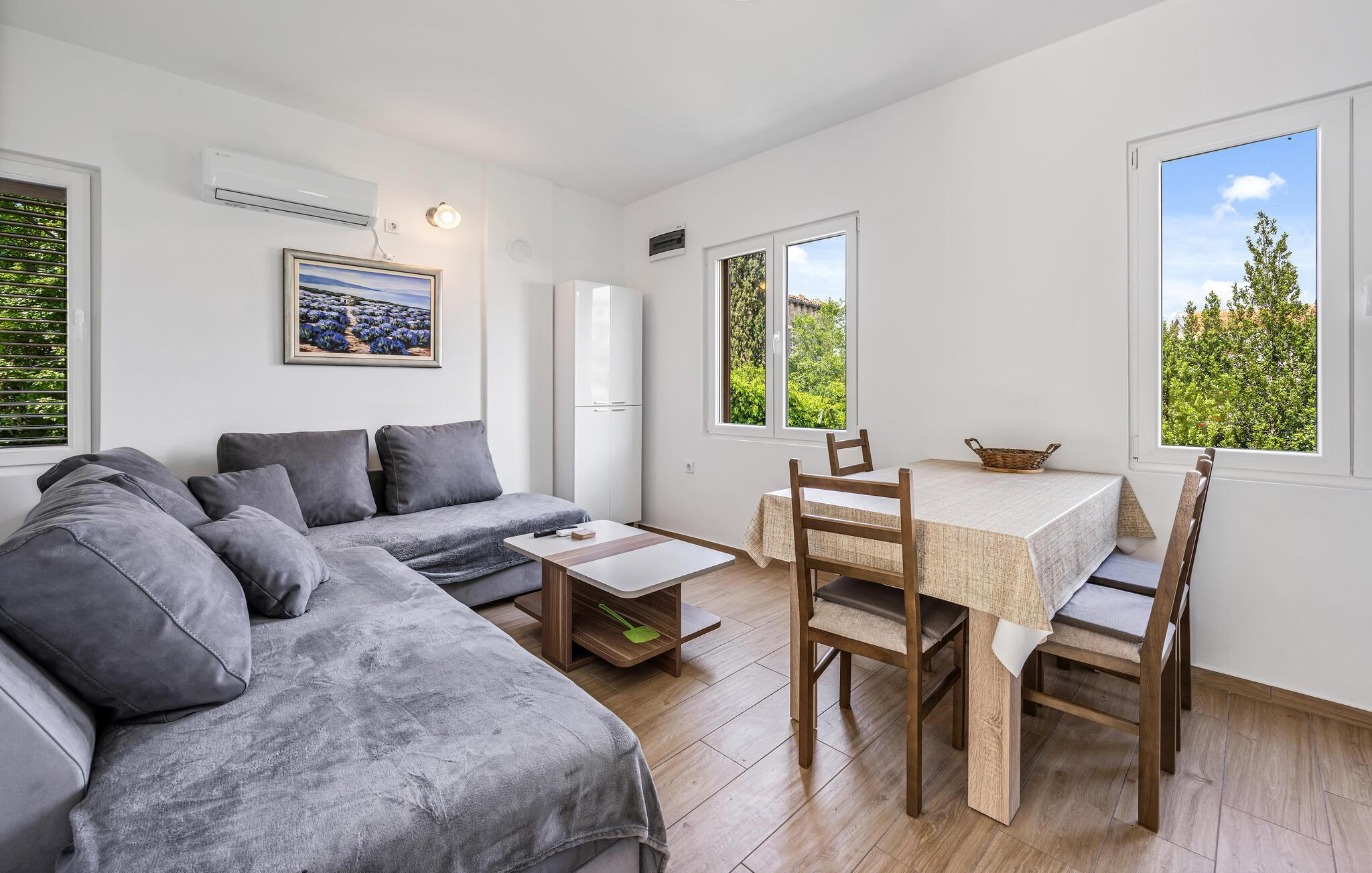 In dieser kleinen, aber feinen Ferienwohnung auf der autofreien Insel Zlarin empfängt Sie ein behaglicher, lichtdurchfluteter Innenbereich. Die helle und funktionale Küche bietet alles, was Sie für die Zubereitung köstlicher Mahlzeiten benötigen, die Sie mit Blick ins Grüne genießen können. Lassen Sie den erlebnisreichen Urlaubstag auf dem gemütlichen Sofa ausklingen und schmieden Sie bei einem Glas Wein Pläne für den nächsten Tag.