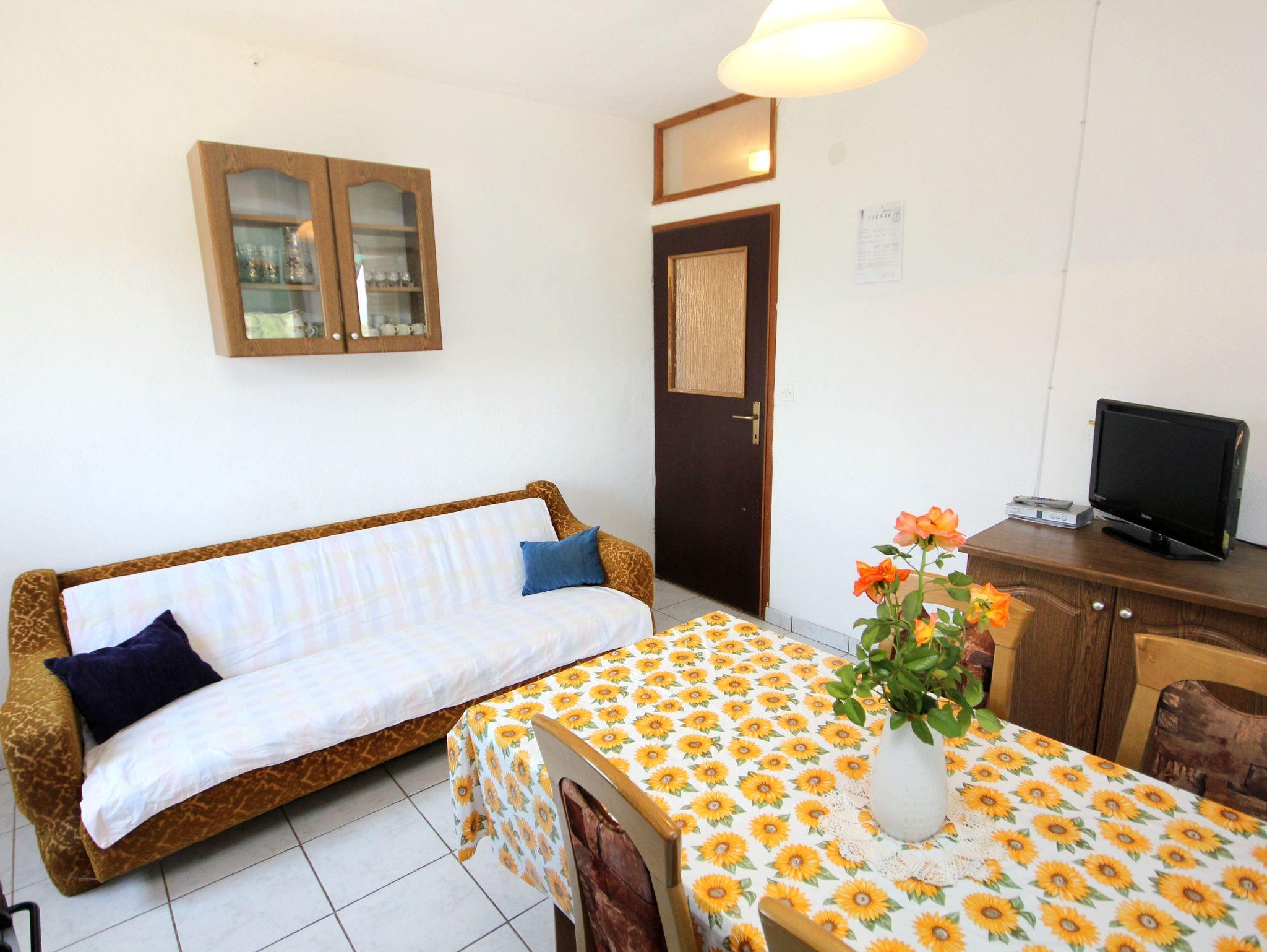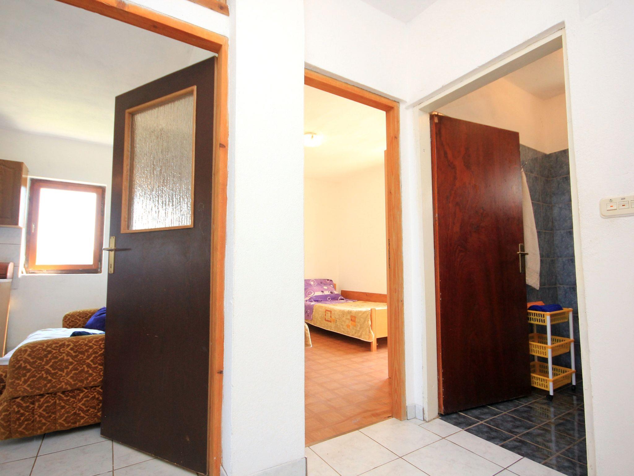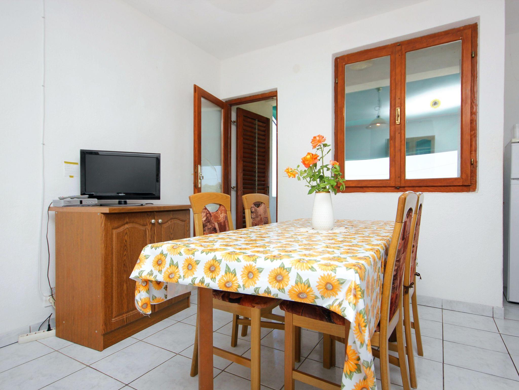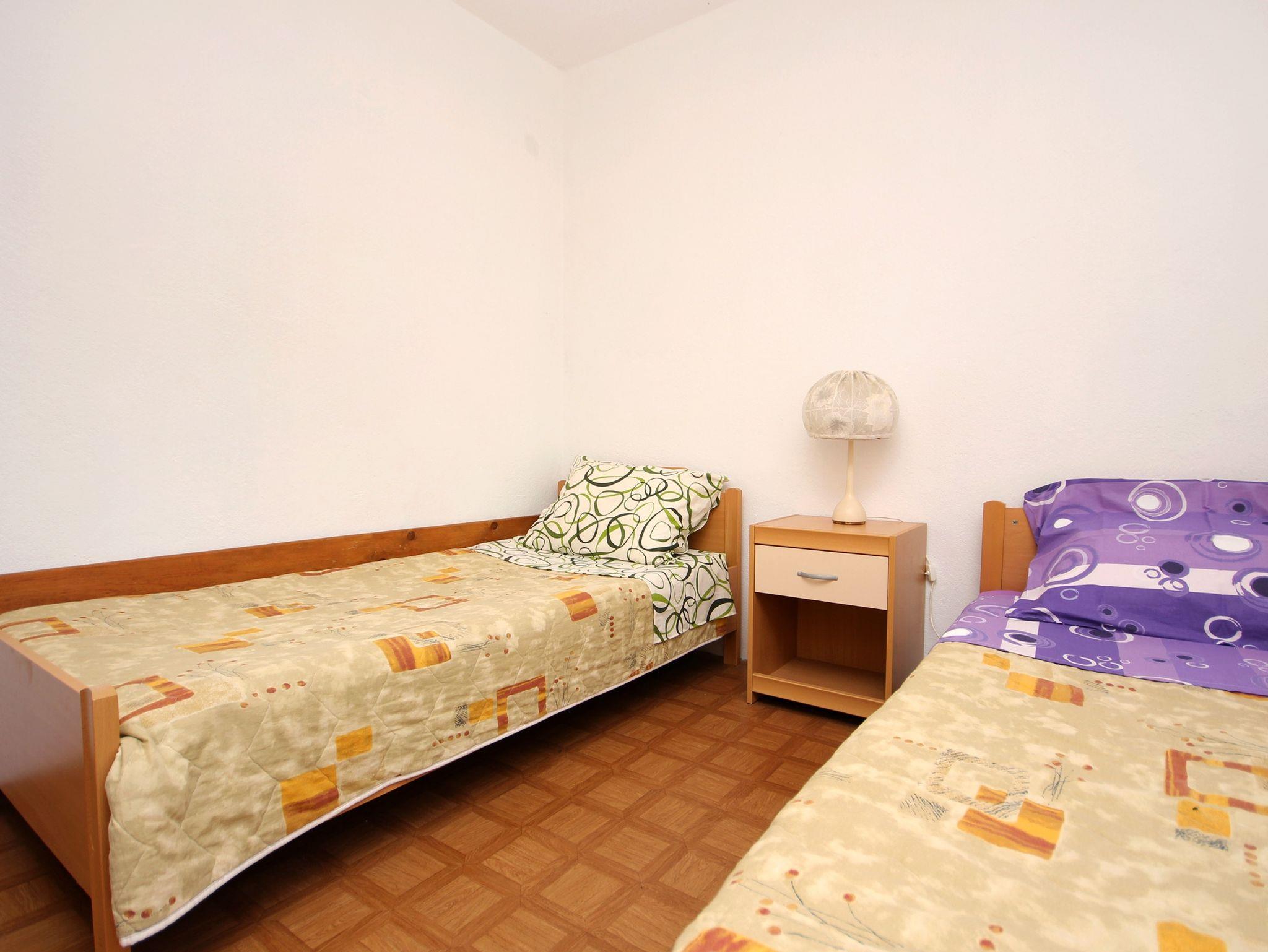 Ferienwohnung bietet Platz für 5 Gäste. Die Betten sind in Schlafzimmern, die es 2 gibt, und in Wohnzimmer, innerhalb einer Gesamtfläche von 42m2, angeordnet. Die Gäste haben eine eigene Terrasse zur Verfügung, auf der sie in warmen Sommernächten genießen können. Das Apartment bietet Meerblick. Es ist erlaubt, Speisen auf dem Gemeinschafts-Grill vorzubereiten. In der Unterkunftseinheit besteht die Möglichkeit des Mitbringens von Haustieren gegen Aufpreis. IM PREIS INBEGRIFFEN: Kurtaxe, Endreinigung, Klimatisierung, Garage, Internet, Wäschewaschen, Kinderbett, Bügeleisen, Bügelbrett, Föhn. VERBINDLICHE ZUSÄTZLICHE KOSTEN: Aufzahlung für Kurzaufenthalte (prozentualer Zuschlag pro Nächtigungsanzahl: 30% - 1, 20% - 2, 10% - 3). UNVERBINDLICHE ZUSÄTZLICHE KOSTEN: Haustiere (5,00 € pro Nacht). Die Verfügbarkeit zusätzlicher Dienstleistungen in Ihrem reservierten Termin und die Preise derselben (falls nicht aufgeführt) müssen im Voraus überprüft werden. Zusätzliche Dienstleistungen die in der Zahlungsaufforderung nicht aufgeführt sind werden direkt beim Vermieter bezahlt, angenommen der Gast nutzt auch diese.