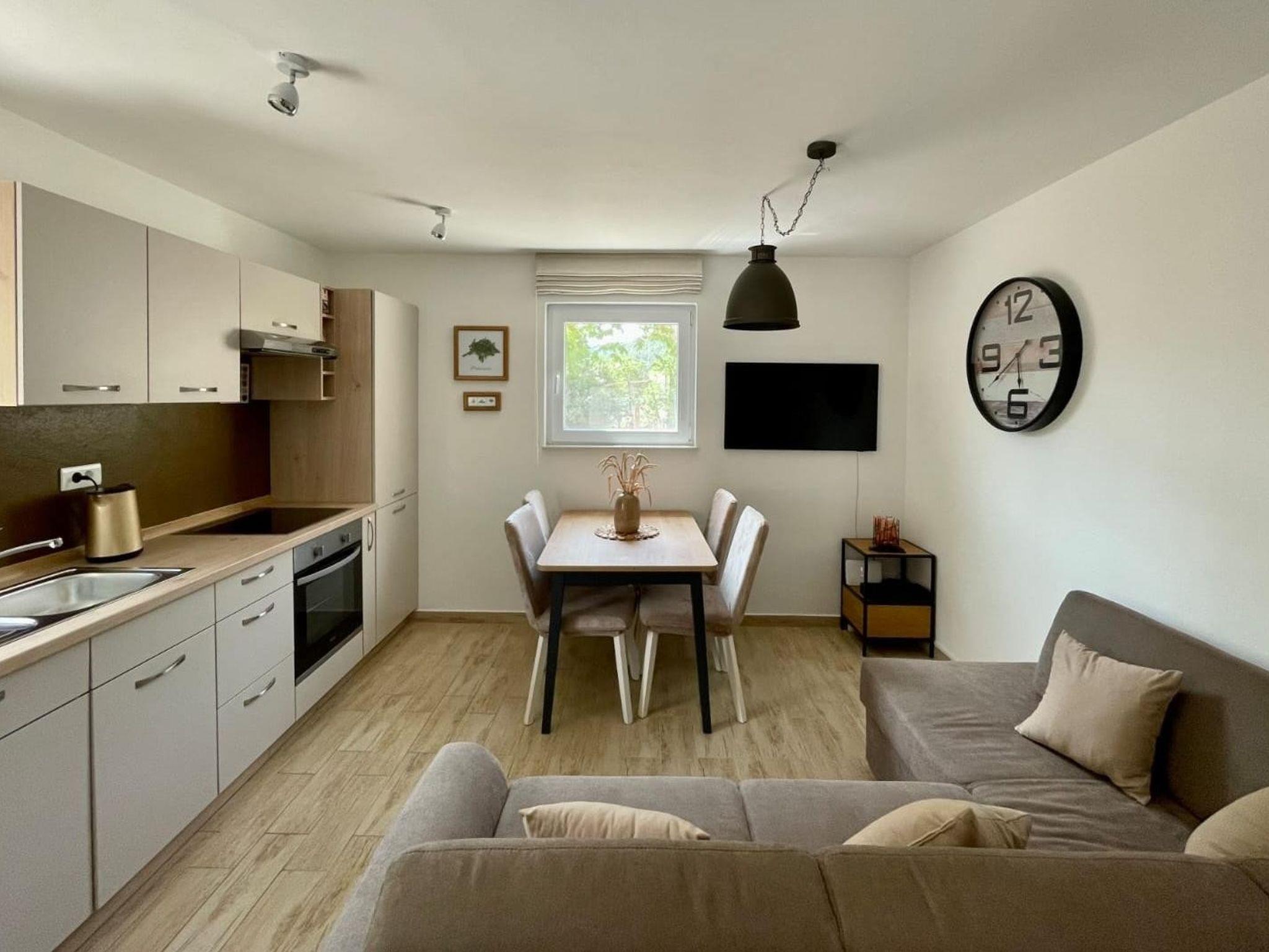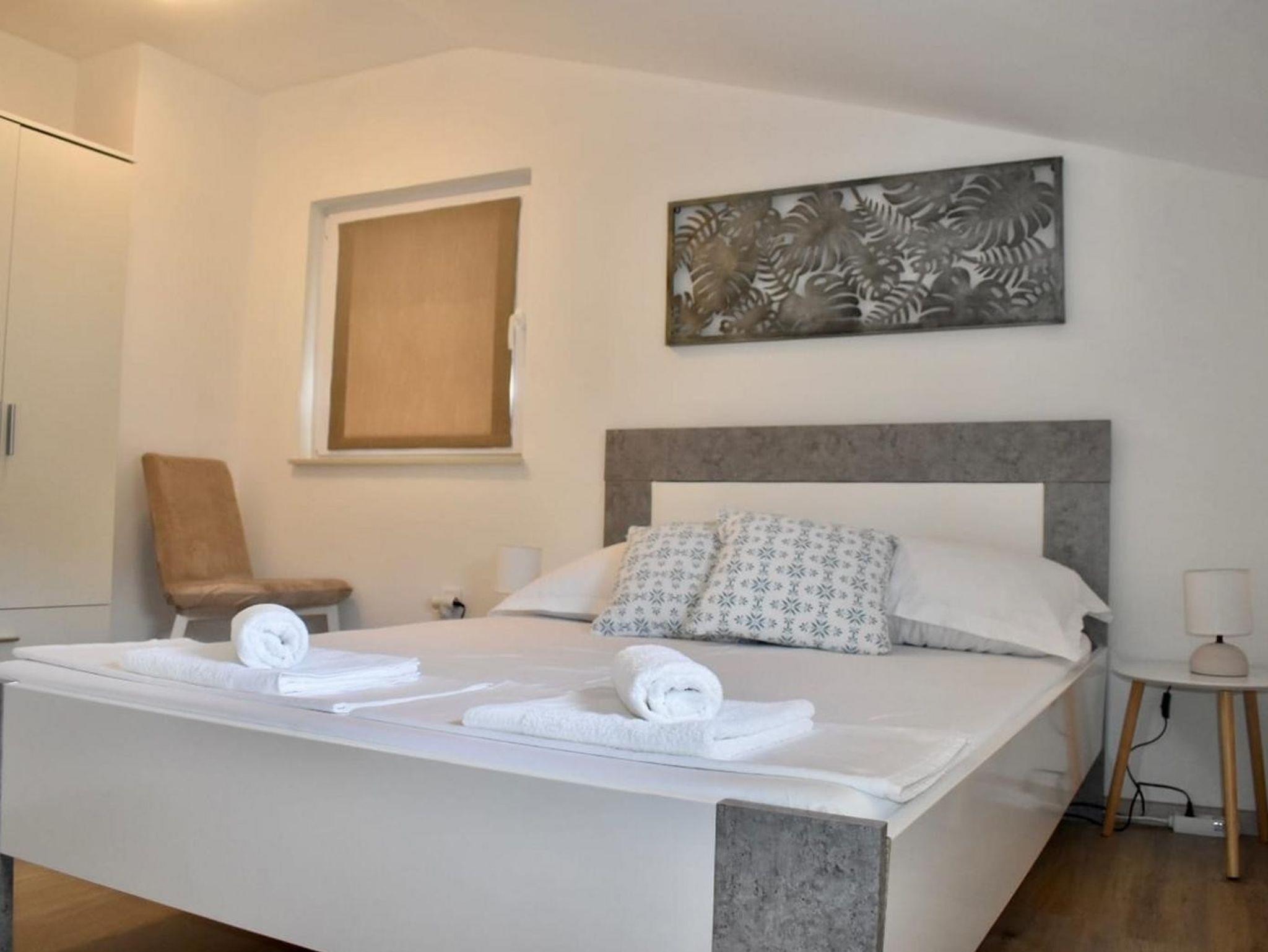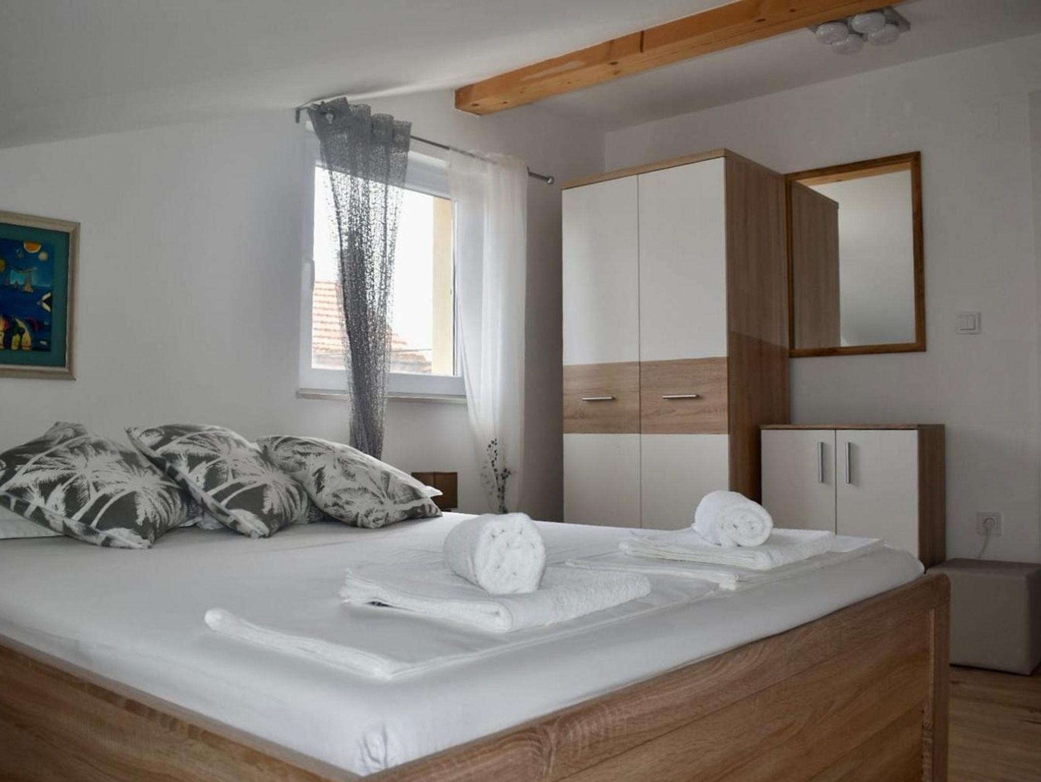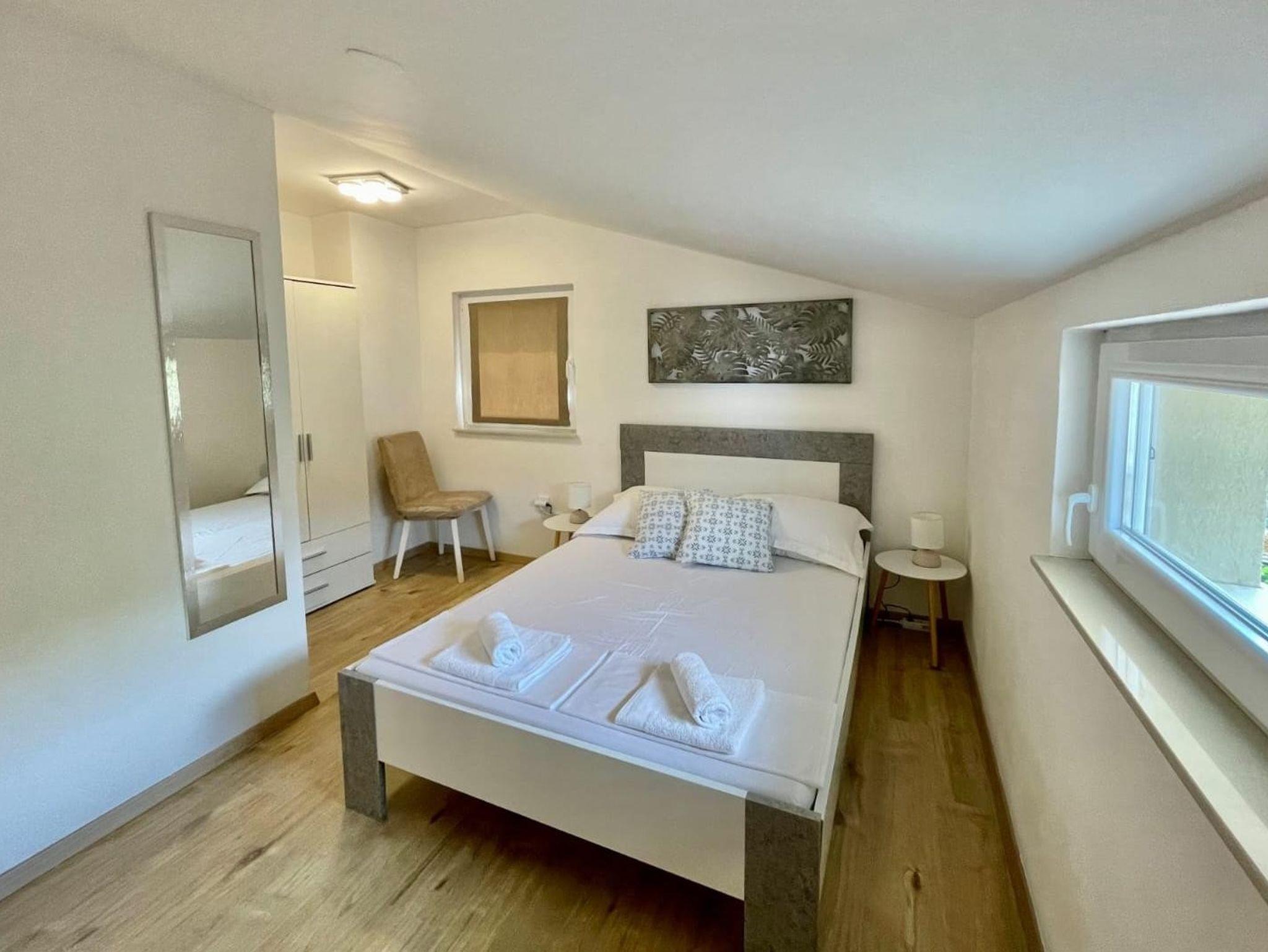 Haus bietet Platz für 5 Gäste. Die Betten sind in Schlafzimmern, die es 2 gibt, und in Wohnzimmer, innerhalb einer Gesamtfläche von 57m2, angeordnet. Die Gäste haben eine eigene Terrasse zur Verfügung, auf der sie in warmen Sommernächten genießen können. Es ist erlaubt, Speisen auf dem Gemeinschafts-Grill vorzubereiten. In der Unterkunftseinheit besteht die Möglichkeit des Mitbringens von Haustieren, und die Dienstleistung ist im Preis der Unterkunft enthalten. IM PREIS INBEGRIFFEN: Kurtaxe, Endreinigung, Klimatisierung, Parkplatz, Internet, Haustiere, Bügeleisen, Bügelbrett, Föhn, tragbarer Grill. Die Verfügbarkeit zusätzlicher Dienstleistungen in Ihrem reservierten Termin und die Preise derselben (falls nicht aufgeführt) müssen im Voraus überprüft werden. Zusätzliche Dienstleistungen die in der Zahlungsaufforderung nicht aufgeführt sind werden direkt beim Vermieter bezahlt, angenommen der Gast nutzt auch diese. Ermäßigung auf den Grundpreis: Gratistag 21=19 (bei einem Aufenthalt von 21 Tagen oder mehr erhalten Sie 2 Gratistage für den Aufenthalt bis 31.12.26).