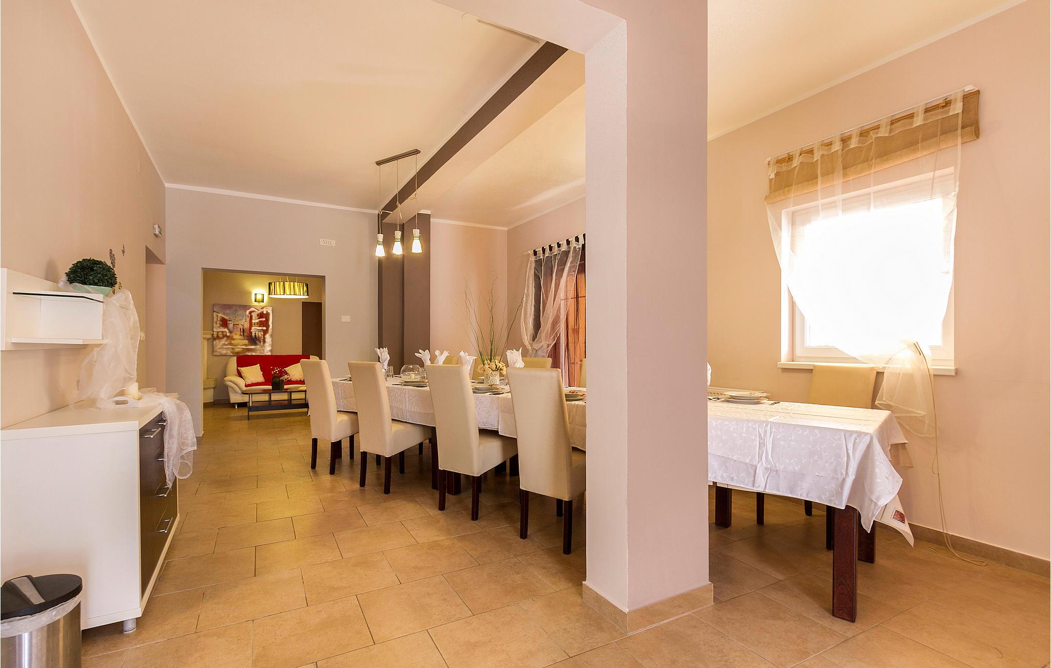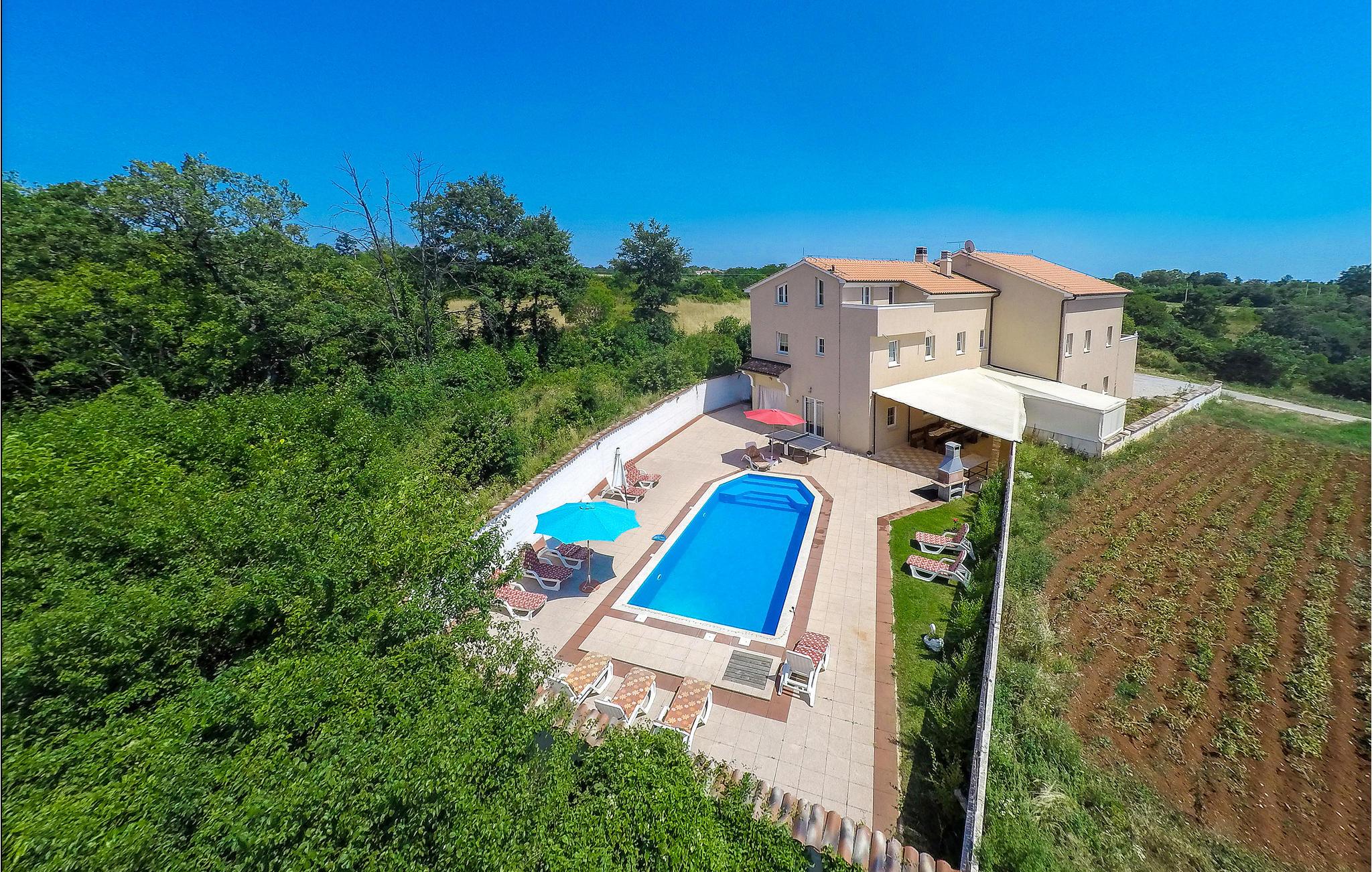 Im Herzen von Istrien, auf einem gepflegten Grundstück mit Pool, befindet sich dieses wunderbare Ferienhaus. Es besticht den Gast durch seine Geräumigkeit, die Familien und Gruppen von Freunden viel Platz für einen erholsamen Urlaub bietet. Das Erdgeschoss besteht aus einer gut ausgestatten Küche, Wohnzimmer und zwei Schlafzimmern, von denen eines für Personen mit eingeschränkter Mobilität geeignet ist. Der erste Stock verfügt über sechs Schlafzimmer mit jeweils eigenem Bad. Auf dem Steingrill können Sie nach Ihren Wünschen auch im Freien leckere Mahlzeiten zubereiten. Die Umgebung ist ein idealer Ausgangspunkt, um die ganze istrische Halbinsel zu erkunden.