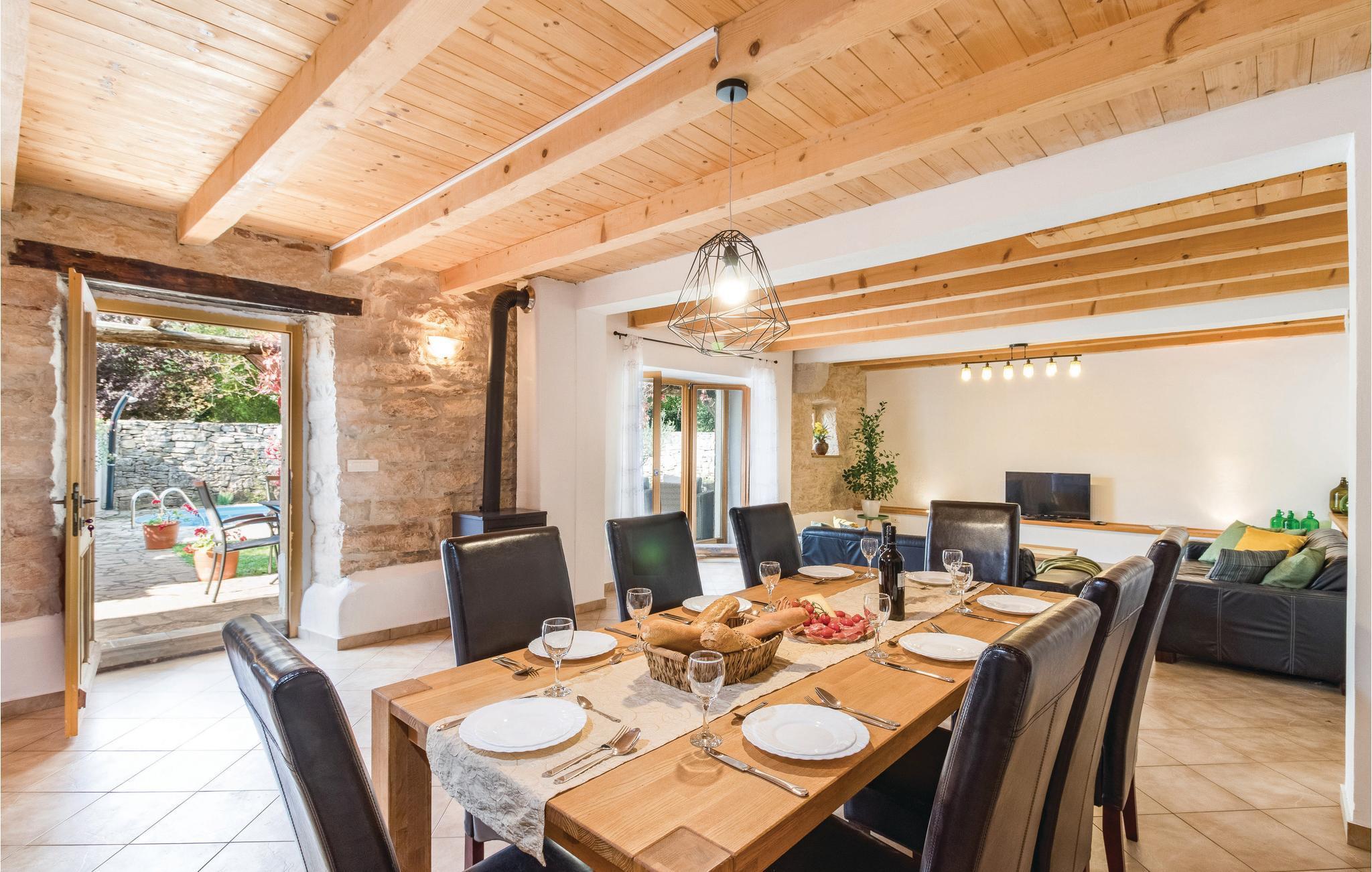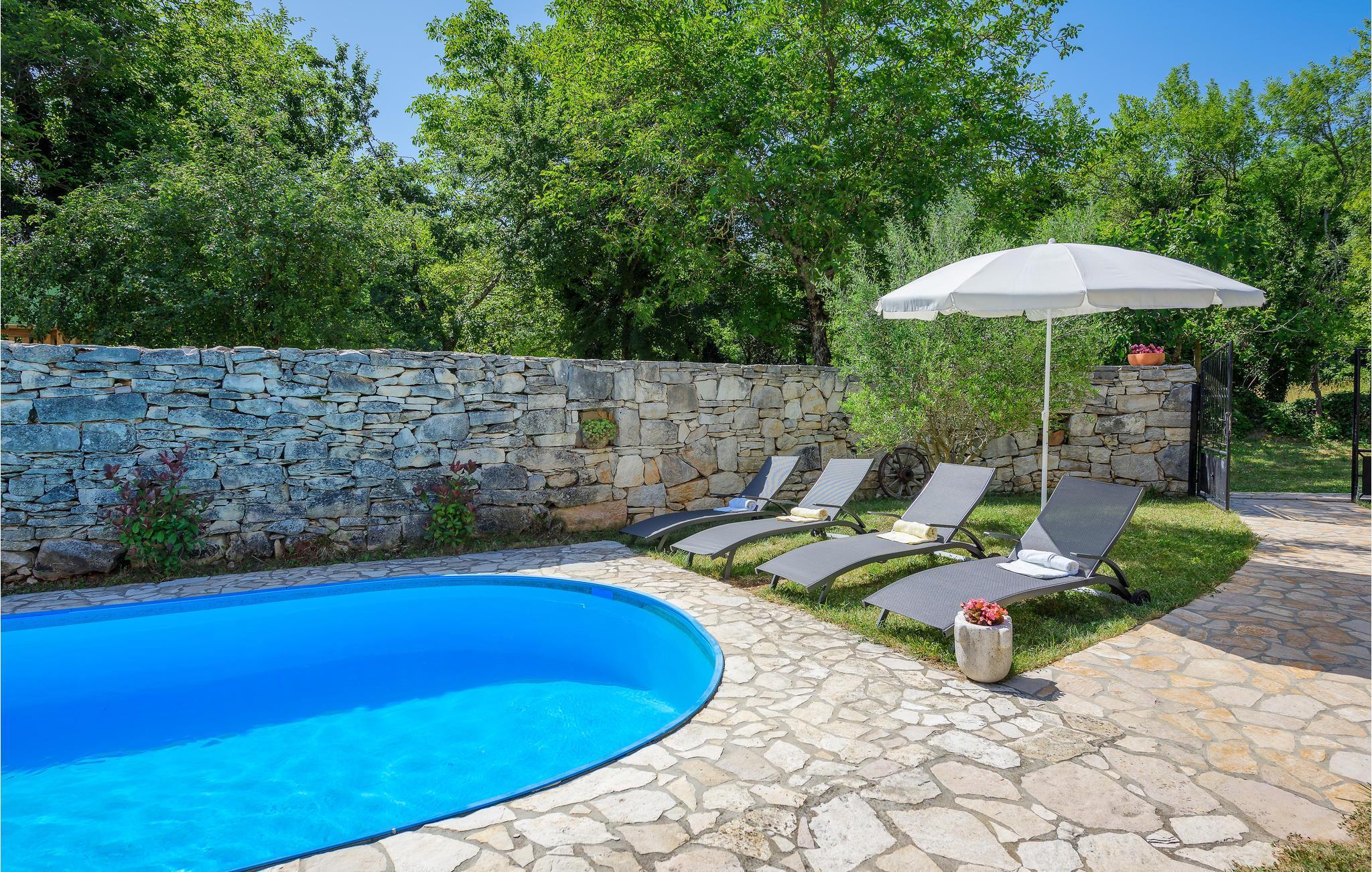 Dieses Ferienhaus mit Swimming-Pool wurde ursprünglich Ende des 19. Jahrhunderts erbaut, es ist komplett hergerichtet und dem modernen Lebensstandard angepasst. Es liegt in einem kleinen, ruhigen Ort mitten in Istrien und in der Nähe der größeren Ortschaft Zminj. Im Hof liegen die überdachte Terrasse, ein Außengrill und der Swimming-Pool, der Ihnen Erfrischung in den heißen Sommertagen bietet. Der Komfort und die Ausstattung dieses Ferienobjektes bieten Ihnen einen Urlaub den Sie verdienen. Besichtigen Sie die Sehenswürdigkeiten in den größeren Städten Istriens.