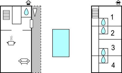 Badezimmer (nr. 1) - WC. Warmes und kaltes Wasser. Dusche