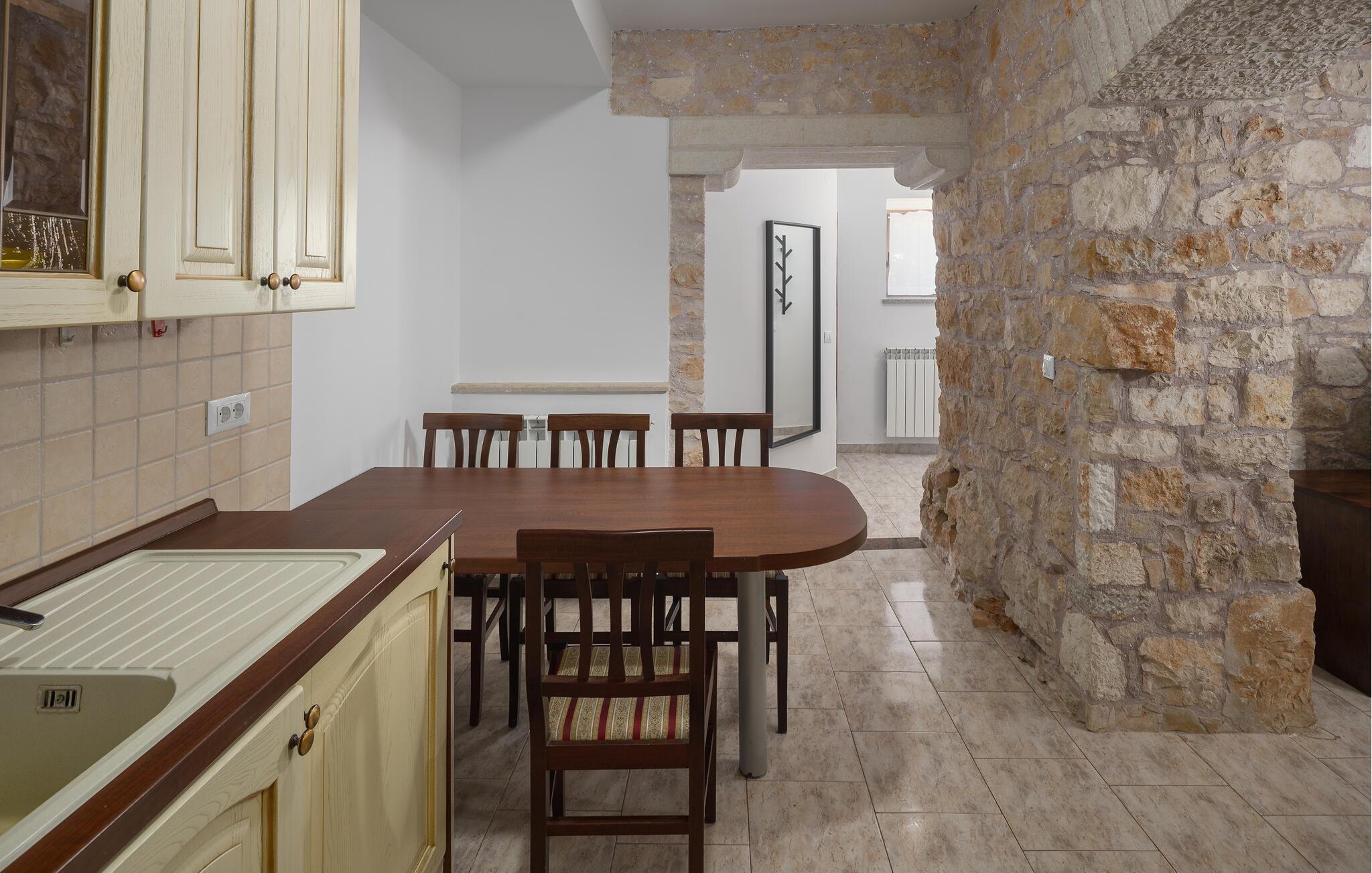 Im kleinen ruhigen Ort Puzari in Zentralistrien befindet sich dieses Doppelhaus. Es wurde 2010 renoviert und rustikal eingerichtet. Der Wohnbereich mit der Küche liegt im Erdgeschoss und über die steile Spiraltreppe gelangen SIe in die obere Etage, wo sich die Schlafräume befinden. Das gemeinsame Grundstück wird mit dem Hauseigentümer geteilt, aber der Pool hinter dem Haus steht Ihnen zur Alleinnutzung zur Verfügung. Besuchen Sie auch die kleine mittelalterliche Stadt Zminj, die auf einer Anhöhe, umgeben von einer zum größten Teil erhaltenen Wehrmauer, liegt.