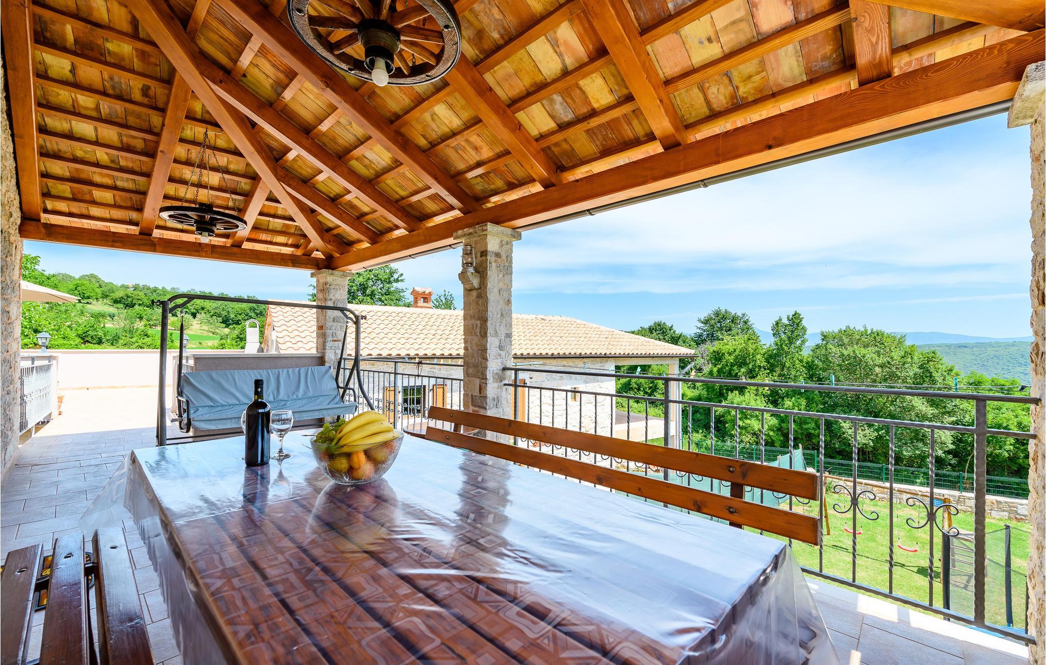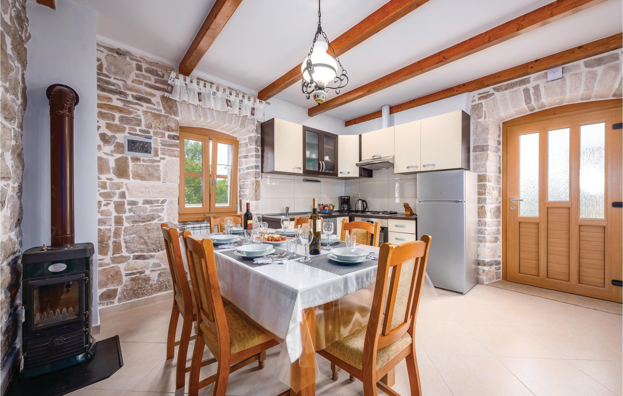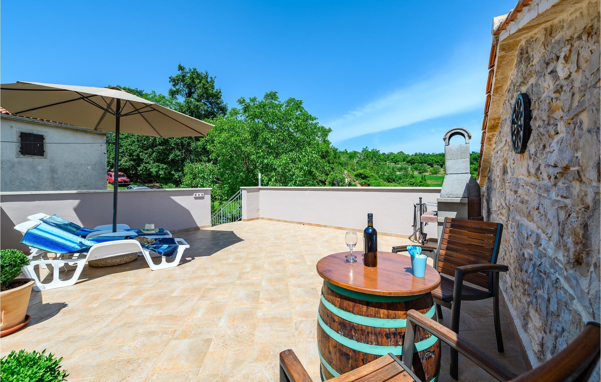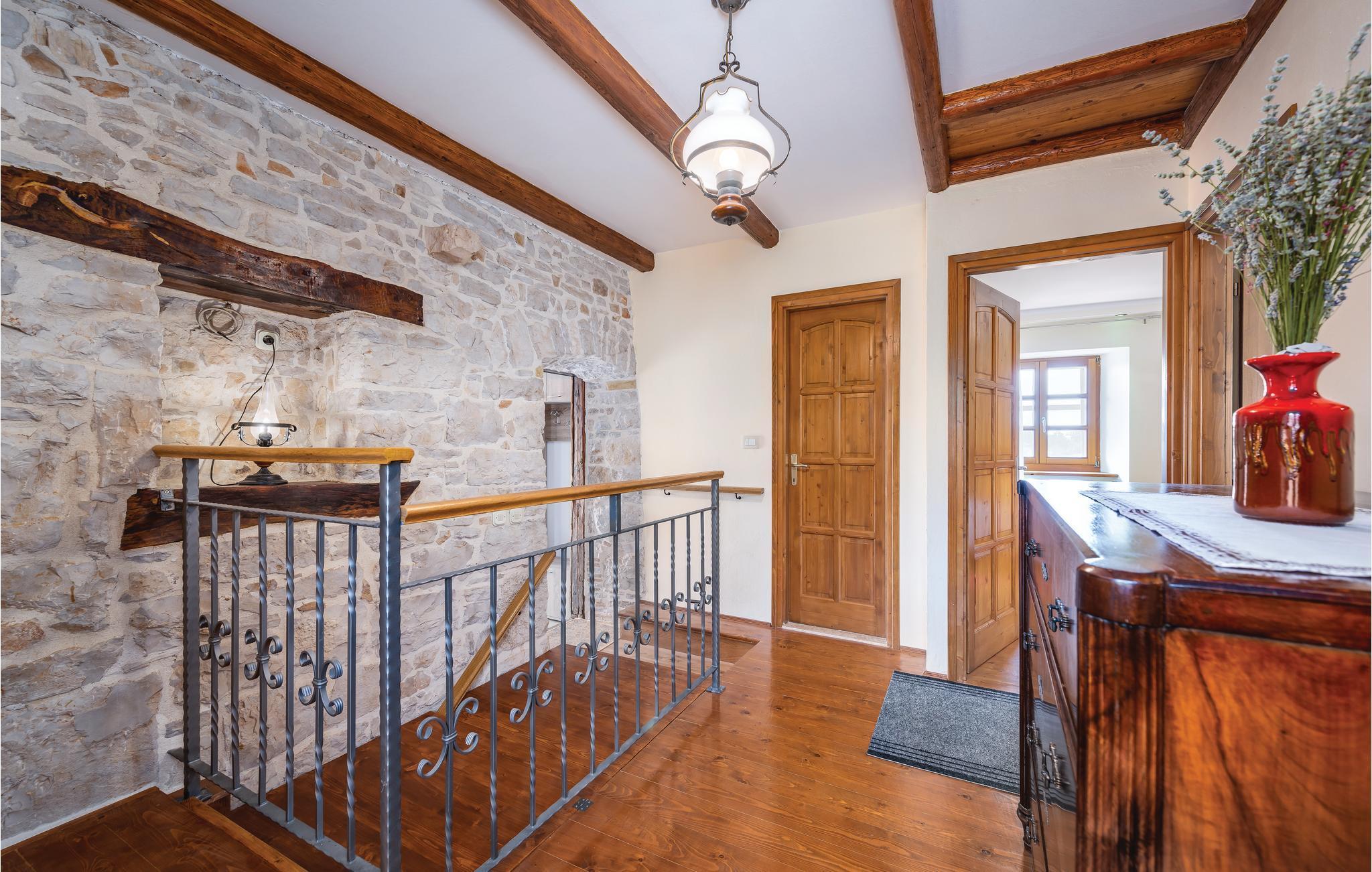 In einem kleinen Dorf zentral in Istrien befindet sich dieses schöne Ferienhaus. Die Wohneinheit erstreckt sich über die erste Etage, mit funktionaler Küche und Wohnzimmer, zwei Schlafzimmern und zwei Bädern. Es ist ein altes, traditionelles istrisches Haus mit moderner Note. Der besondere Charme wird durch zwei großzügige Terrassen gegeben, die durch eine kleine Brücke verbunden sind, von der Sie einen schönen Blick auf die unberührte Natur genießen können. Erfrischen Sie sich von der Sommerhitze im schönen Pool und entspannen Sie bei einem Glas guten istrischen Weins, während die kleinsten Gäste im Garten spielen. In der Nähe gibt es einen Adrenalinpark und eine Reitanlage. Erkunden Sie das wunderschöne Istrien, entdecken Sie kleine malerische Orte und probieren Sie lokale Spezialitäten in charmanten Restaurants.