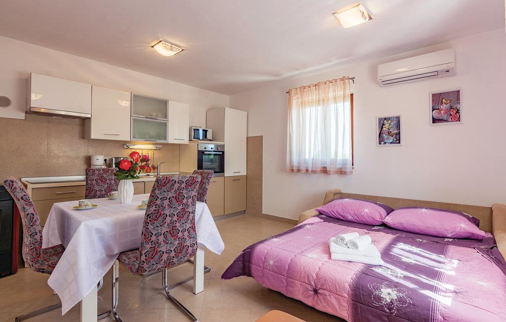 Am Ortsende von Žminj liegt dieses kleine, sympathische Ferienhaus mit Pool, von herrlicher Natur umgeben und bietet einen wunderbaren Rahmen für einen unvergesslichen Urlaub. Das Haus ist ideal für einen Pärchenurlaub oder für eine kleine Familie. Erleben Sie einen erholsamen Aufenthalt mit genügend Komfort. Das Interieur ist nett und es gibt einen Wohnbereich mit Küche sowie ein Schlafzimmer und ein Bad. Eine willkommene Erfrischung bietet Ihnen der Pool mit seinen Hydromassagedüsen, die für zusätzliche Entspannung sorgen. Vom bekannten Ferienort Rovinj trennen Sie etwa 20 Fahrminuten im Auto.