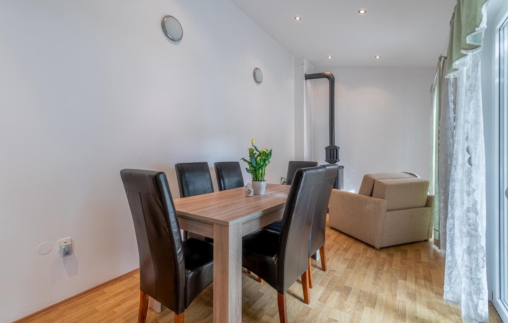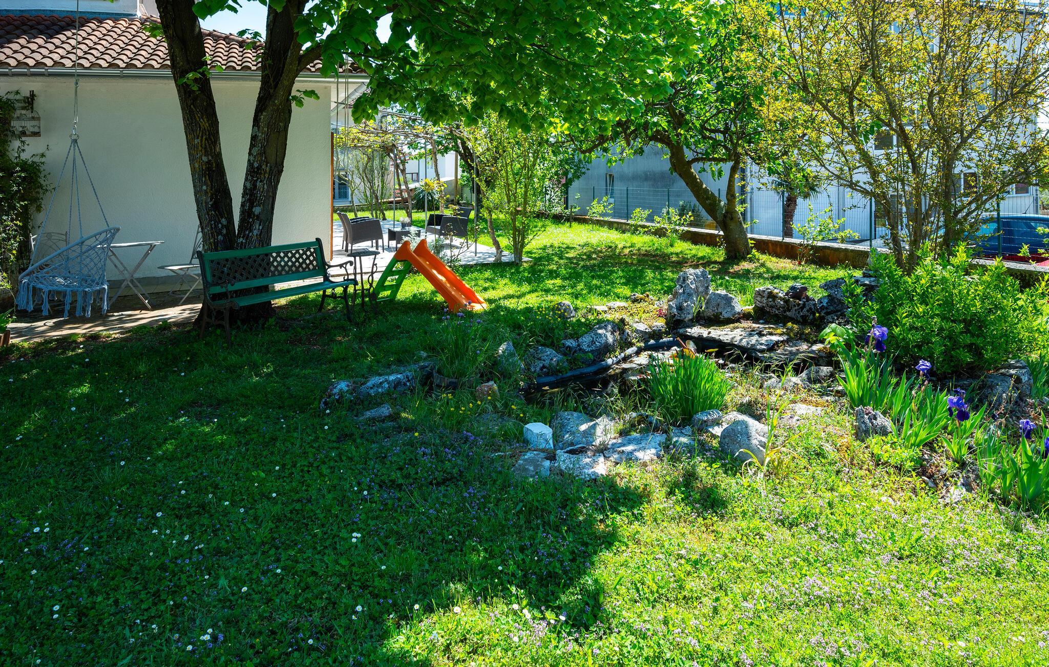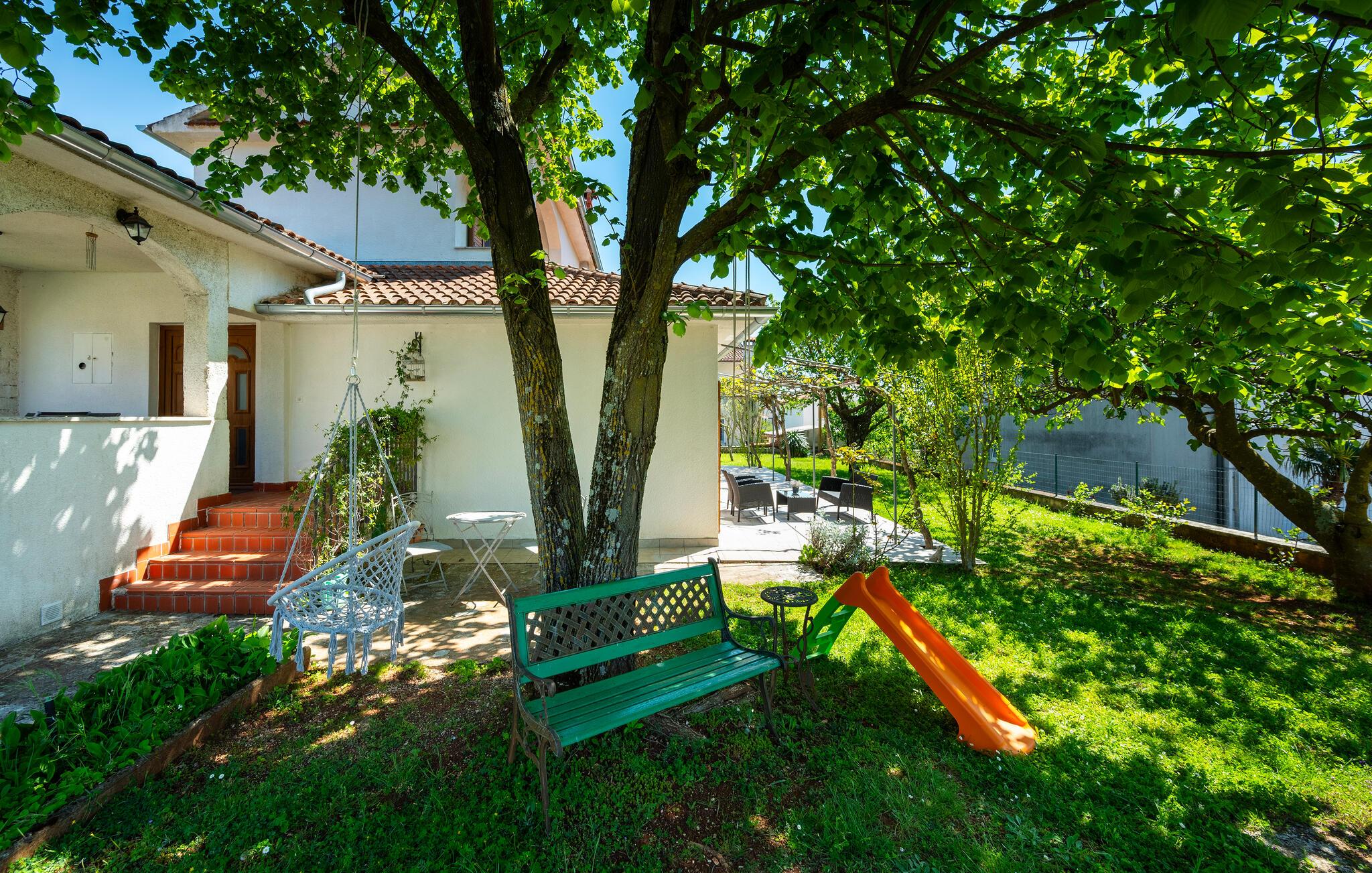 Ihr Ferienhaus in Zminj bietet Ihnen einen idyllischen Garten, der zum Entspannen einlädt. Hier sorgen die schönen Bäume dafür, dass Sie zu jeder Tageszeit ein schattiges Örtchen zum Verweilen finden. Starten Sie Ihren Tag mit einem Frühstück auf der Terrasse und bereiten Sie Ihre Mahlzeiten in der großzügigen, gut ausgestatteten Küche zu, die Sie zu leckeren kulinarischen Kreationen inspirieren wird.