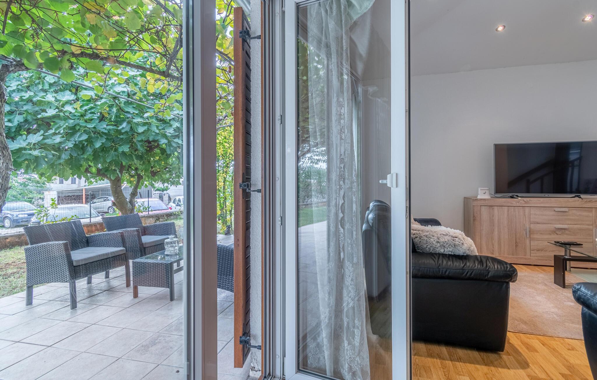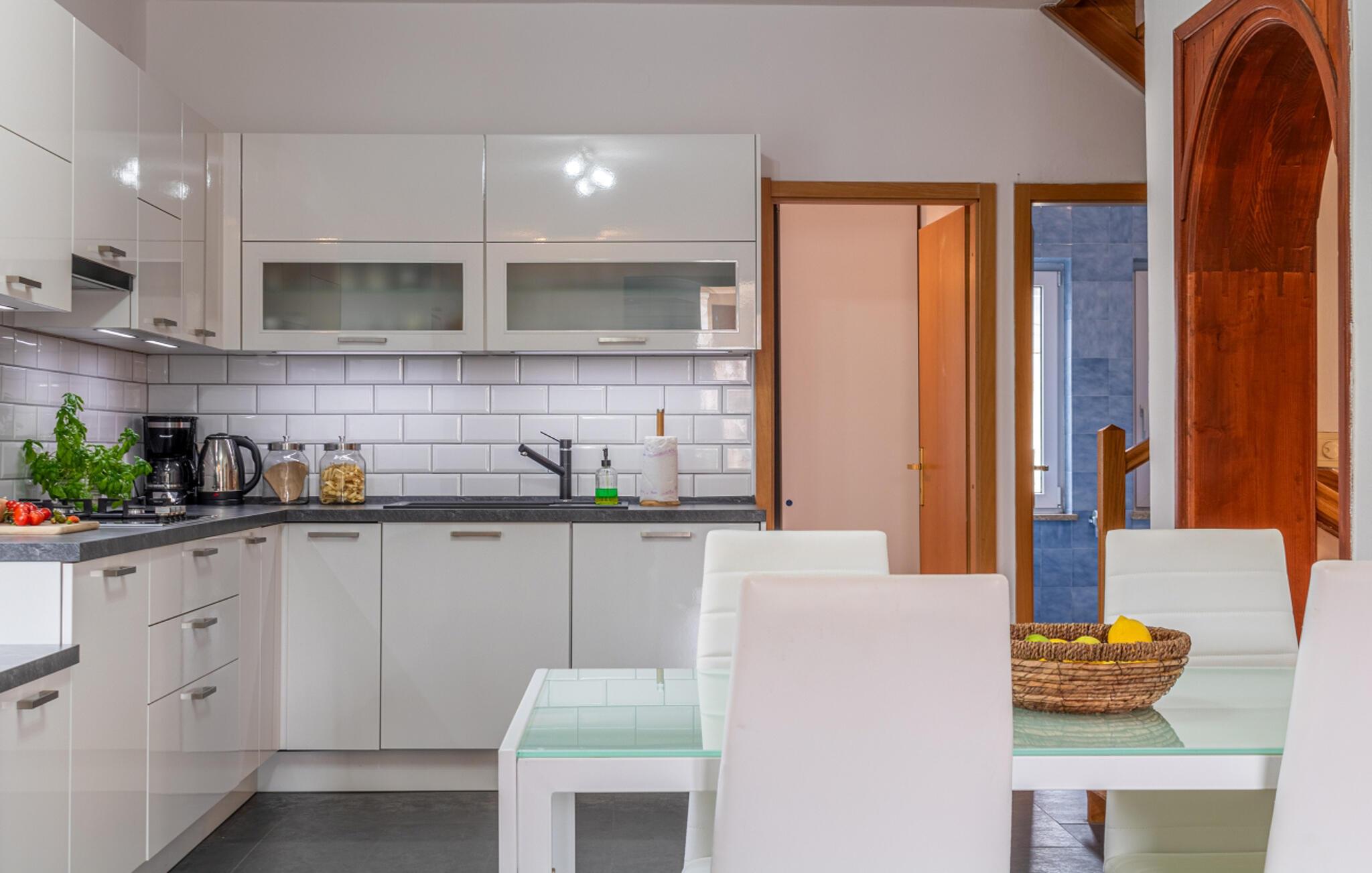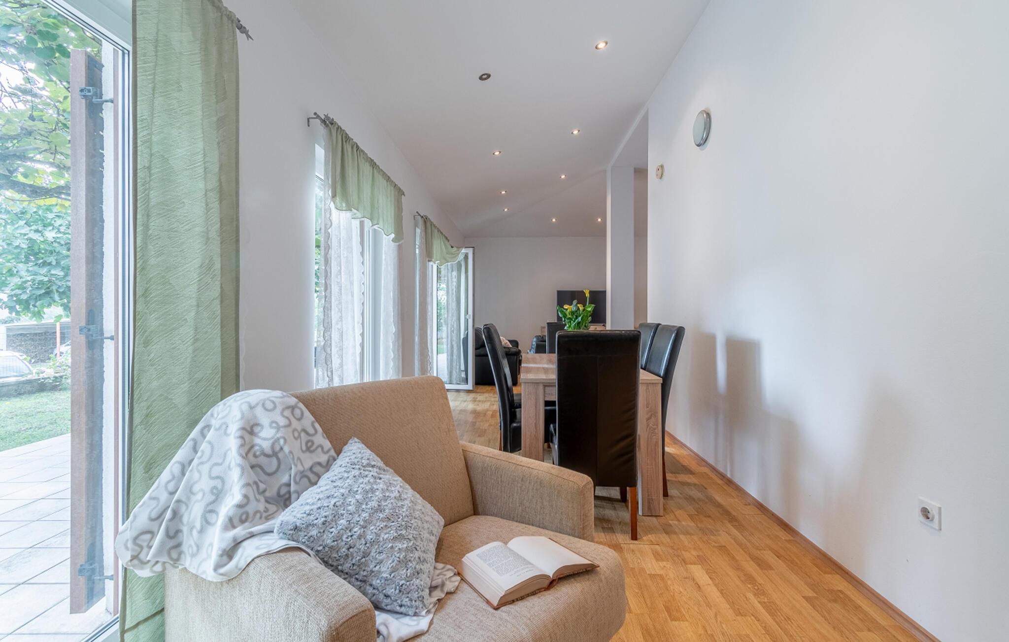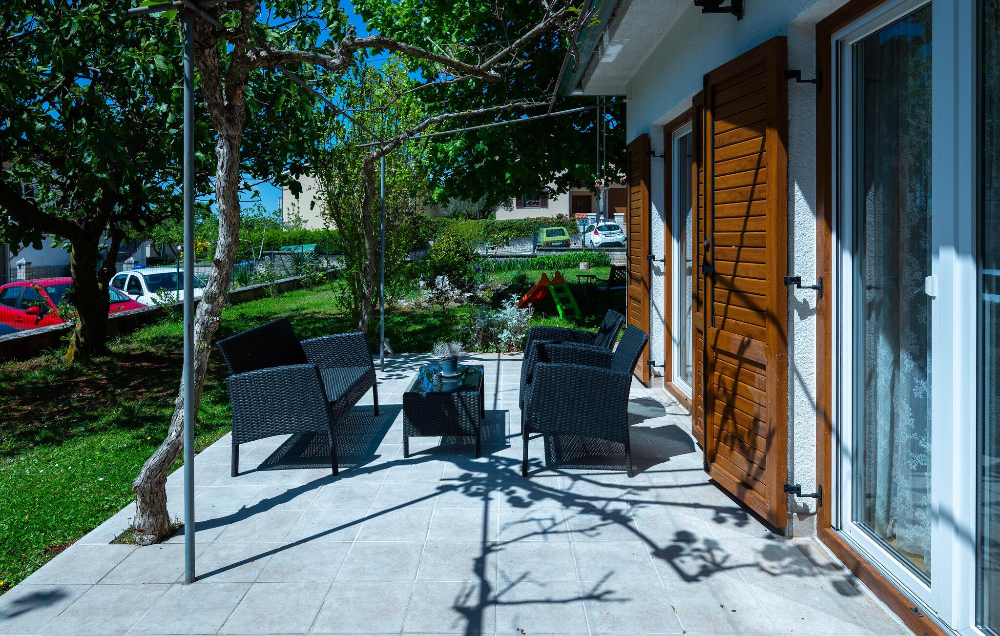 Ihr Ferienhaus in Zminj bietet Ihnen einen idyllischen Garten, der zum Entspannen einlädt. Hier sorgen die schönen Bäume dafür, dass Sie zu jeder Tageszeit ein schattiges Örtchen zum Verweilen finden. Starten Sie Ihren Tag mit einem Frühstück auf der Terrasse und bereiten Sie Ihre Mahlzeiten in der großzügigen, gut ausgestatteten Küche zu, die Sie zu leckeren kulinarischen Kreationen inspirieren wird.