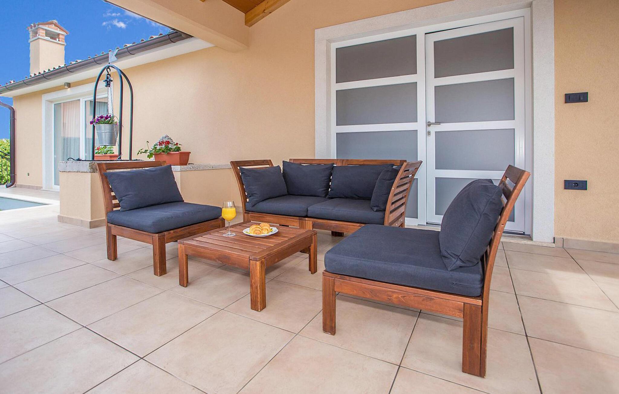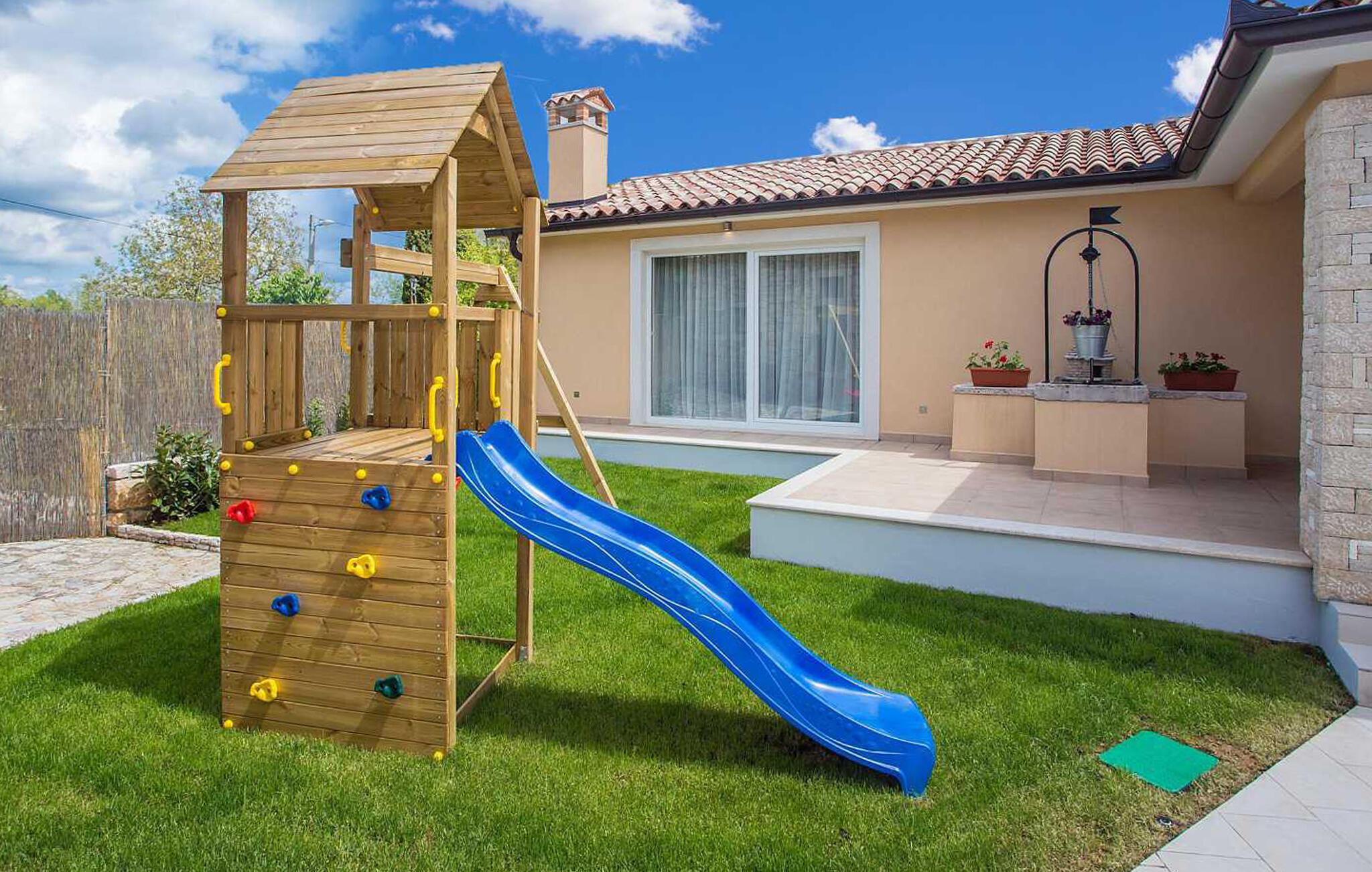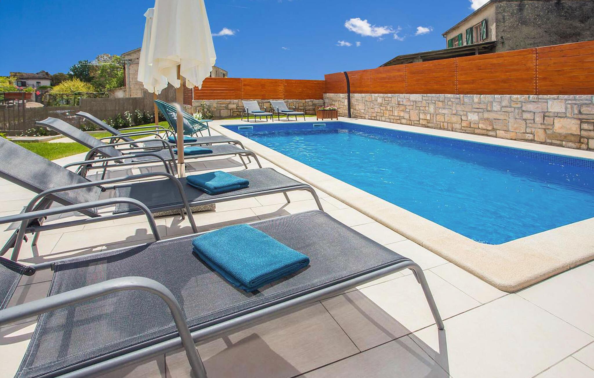Die wunderschöne Villa Mathilda befindet sich nahe Zminj. Diese Villa, die von Wäldern, Olivenfeldern und unberührten Natur umgeben ist, eignet sich ideal für 6 Erwachsene und 2 Kinder. Im gepflegten Garten lädt Sie der Pool zu einer Erfrischung an den heißen Sommertagen ein. Rund um den Pool befinden sich Liegen und ein Sonnenschirm. Ein Essbereich mit Grill steht Ihnen zur Verfügung auf der überdachten Terrasse - perfekt für einen schönen Grillabend mit Ihren Liebsten! Zum Entspannen können Sie den Jacuzzi und eine Sauna nutzen. Fitnessgeräte, Tischfußball und Darts sind ebenfalls vorhanden. Die Kinder können Sich auf einen Spielplatz im Garten freuen. Im Erdgeschoß finden Sie das geräumige und elegante Wohnzimmer, die komplett ausgestattete Küche mit Essbereich und eines der Badezimmer. Im Untergeschoss befinden sich 3 klimatisierte Schlafzimmer, die jeweils mit einem eigenen Fernseher ausgestattet sind und über ein eigenes Badezimmer verfügen. Wenn Sie einen erholsamen Urlaub verbringen möchten, dann ist die Villa Mathilda der ideale Ort dafür.Wenn alle Straßen in Europa nach Rom führen, führen alle Straßen Istriens nach Zminj, dem Zentrum von Istrien und der alten Schnittstelle. Das Ferienhaus befindet sich direkt außerhalb von Zminj in idealer Lage, um die Region zu erkunden. Im Ort finden Sie alle Annehmlichkeiten, Geschäfte, Restaurants usw. Die malerischen, mittelalterlichen Hügelstädtchen, traditionelle Dörfer, wo Zeit stillgestanden ist, sowie Landschaften der einzigartigen Schönheit sind ideal für Aussichtsfahrten, Radtouren und Wandern. Hervorragende traditionelle Küche und erstklassige Weine für welche diese Region weltbekannt ist, fügen die letzten Zutaten zu einem unvergesslichen Urlaub hinzu. Wo auch immer Sie gelangen, werden Ihnen die Einheimischen einen wunderbaren, herzlichen Empfang in diese faszinierende Region bieten. Die Küste mit ihren großen Touristenzentren ist nur eine kurze Autofahrt entfernt, ebenso der Flughafen von Pula. Istrien verfügt über eine gute Anbindung und ein hervorragendes, nicht überfülltes Straßensystem.
