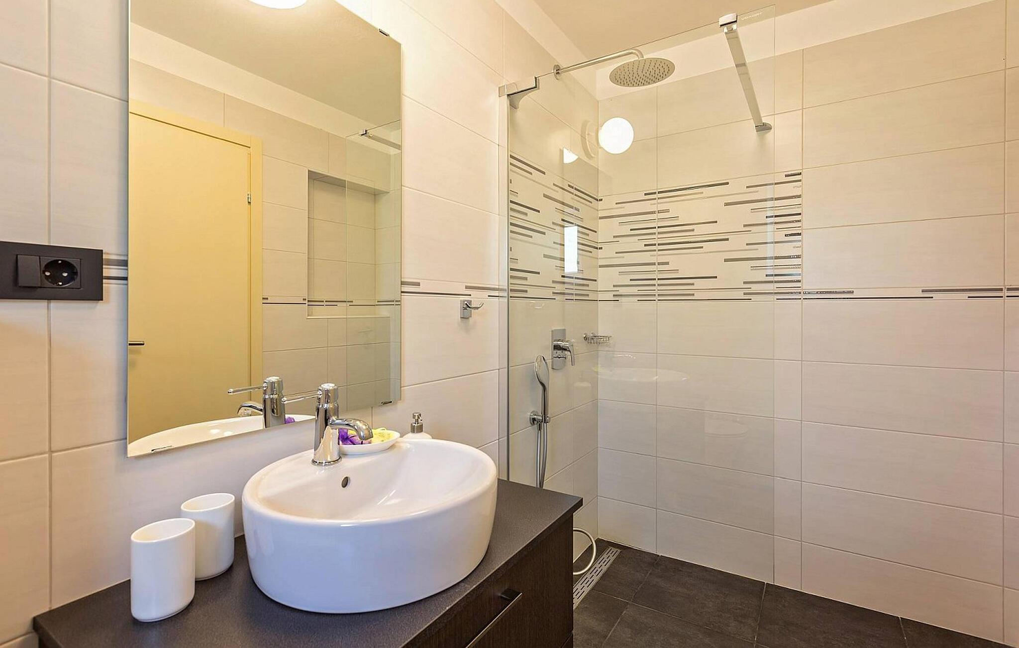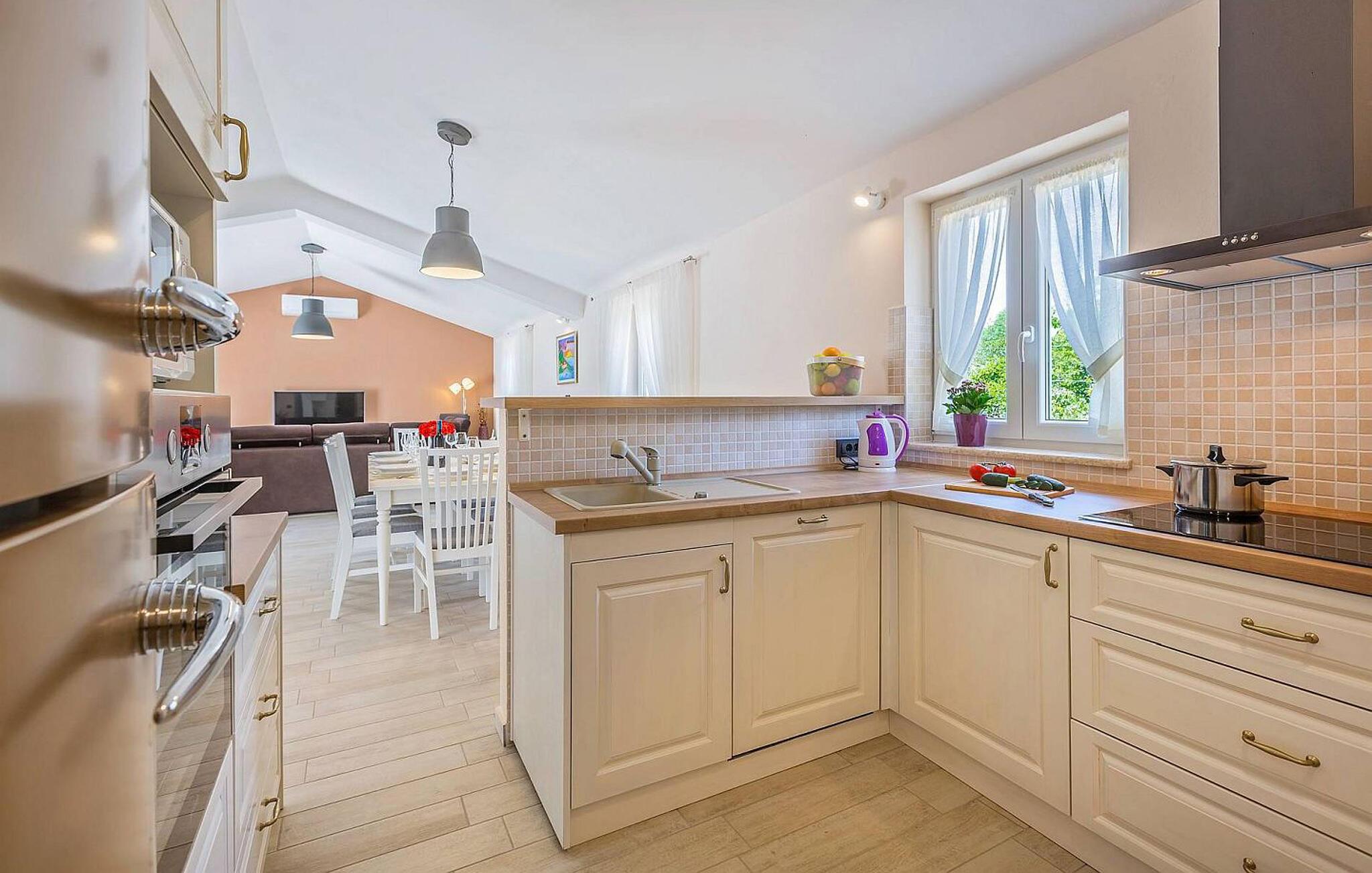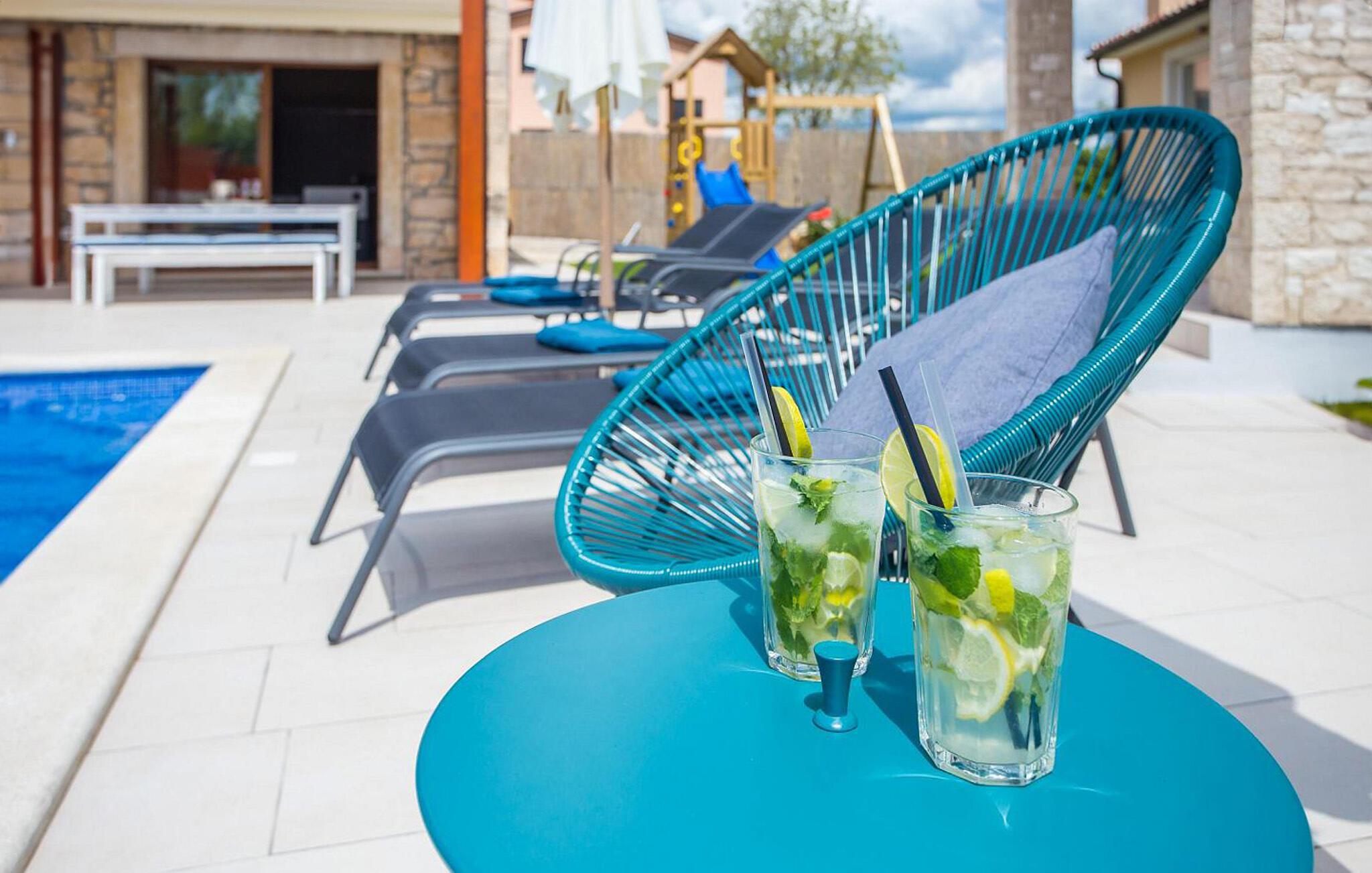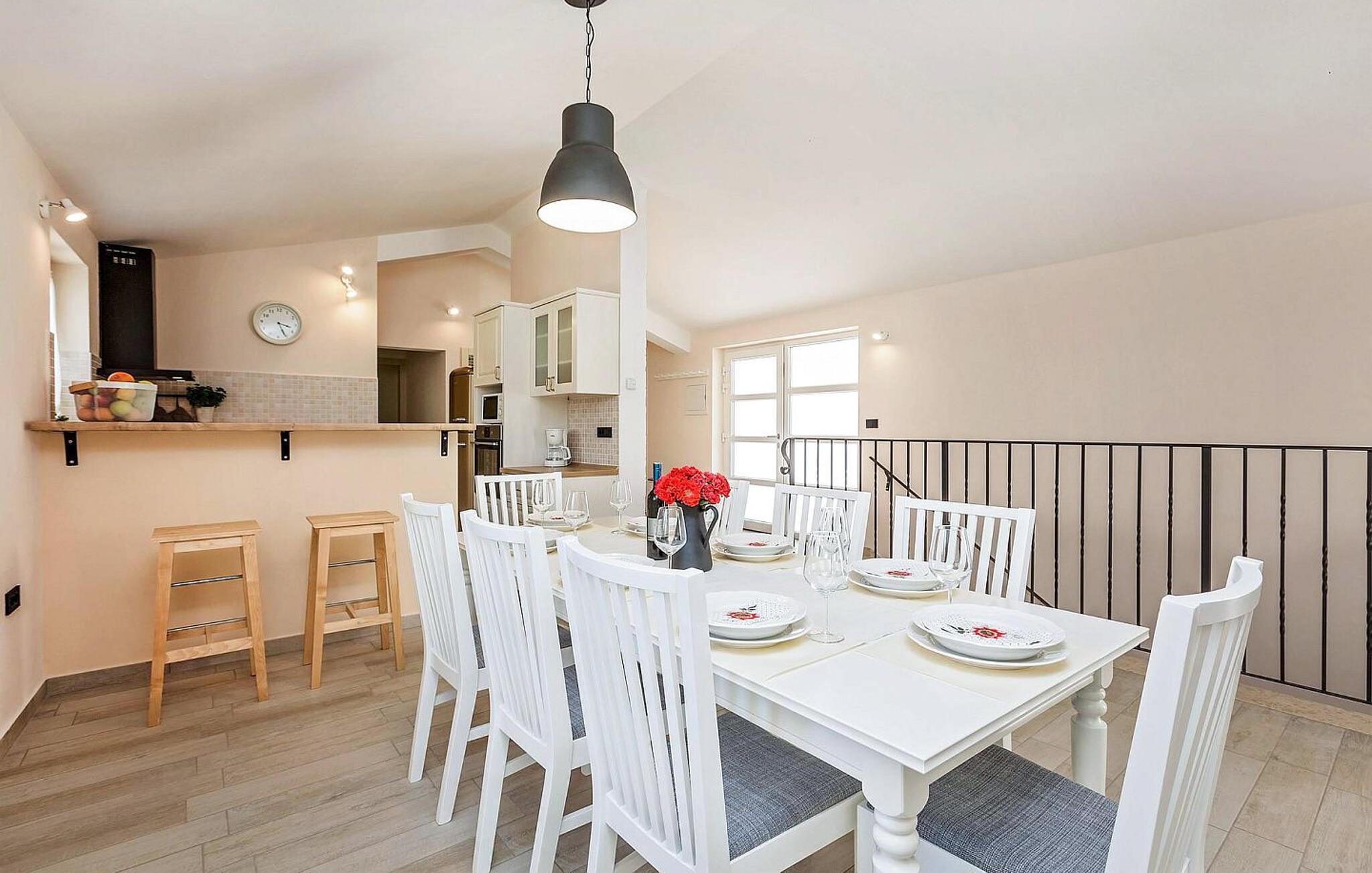 Die wunderschöne Villa Mathilda befindet sich nahe Zminj. Diese Villa, die von Wäldern, Olivenfeldern und unberührten Natur umgeben ist, eignet sich ideal für 6 Erwachsene und 2 Kinder. Im gepflegten Garten lädt Sie der Pool zu einer Erfrischung an den heißen Sommertagen ein. Rund um den Pool befinden sich Liegen und ein Sonnenschirm. Ein Essbereich mit Grill steht Ihnen zur Verfügung auf der überdachten Terrasse - perfekt für einen schönen Grillabend mit Ihren Liebsten! Zum Entspannen können Sie den Jacuzzi und eine Sauna nutzen. Fitnessgeräte, Tischfußball und Darts sind ebenfalls vorhanden. Die Kinder können Sich auf einen Spielplatz im Garten freuen. Im Erdgeschoß finden Sie das geräumige und elegante Wohnzimmer, die komplett ausgestattete Küche mit Essbereich und eines der Badezimmer. Im Untergeschoss befinden sich 3 klimatisierte Schlafzimmer, die jeweils mit einem eigenen Fernseher ausgestattet sind und über ein eigenes Badezimmer verfügen. Wenn Sie einen erholsamen Urlaub verbringen möchten, dann ist die Villa Mathilda der ideale Ort dafür.Wenn alle Straßen in Europa nach Rom führen, führen alle Straßen Istriens nach Zminj, dem Zentrum von Istrien und der alten Schnittstelle. Das Ferienhaus befindet sich direkt außerhalb von Zminj in idealer Lage, um die Region zu erkunden. Im Ort finden Sie alle Annehmlichkeiten, Geschäfte, Restaurants usw. Die malerischen, mittelalterlichen Hügelstädtchen, traditionelle Dörfer, wo Zeit stillgestanden ist, sowie Landschaften der einzigartigen Schönheit sind ideal für Aussichtsfahrten, Radtouren und Wandern. Hervorragende traditionelle Küche und erstklassige Weine für welche diese Region weltbekannt ist, fügen die letzten Zutaten zu einem unvergesslichen Urlaub hinzu. Wo auch immer Sie gelangen, werden Ihnen die Einheimischen einen wunderbaren, herzlichen Empfang in diese faszinierende Region bieten. Die Küste mit ihren großen Touristenzentren ist nur eine kurze Autofahrt entfernt, ebenso der Flughafen von Pula. Istrien verfügt über eine gute Anbindung und ein hervorragendes, nicht überfülltes Straßensystem.