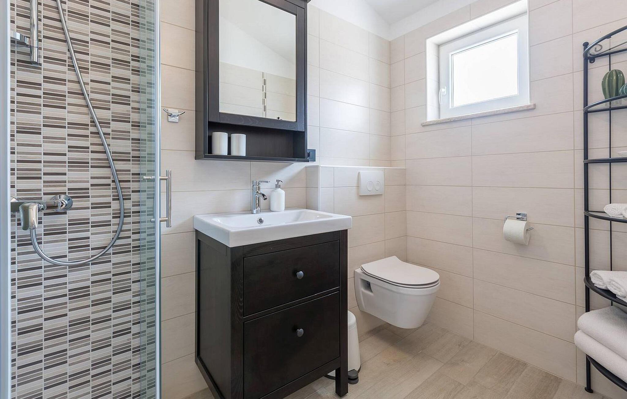 - WC mit warmem und kaltem Wasser, Dusche
