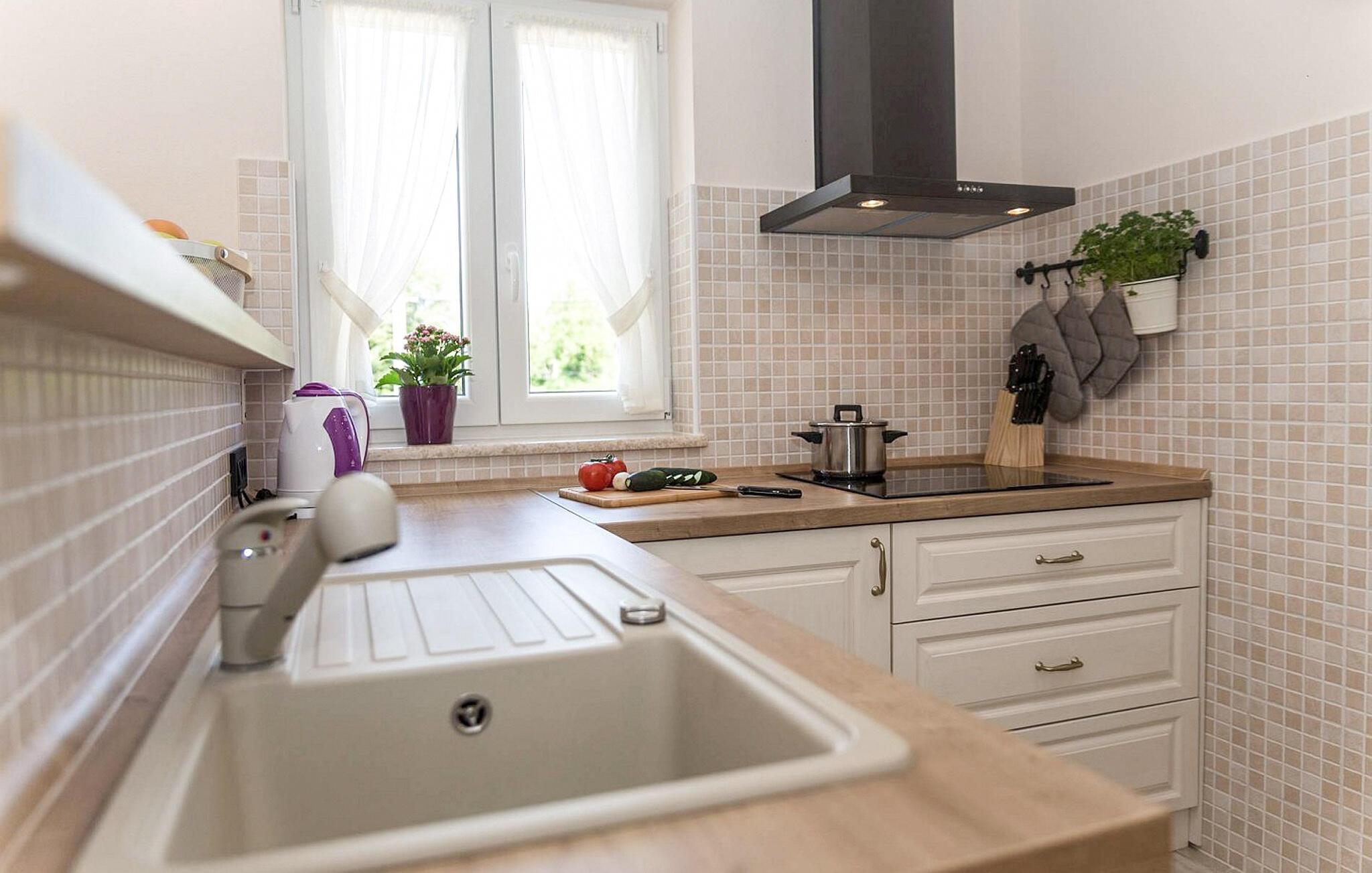 The kitchen has hot and cold water