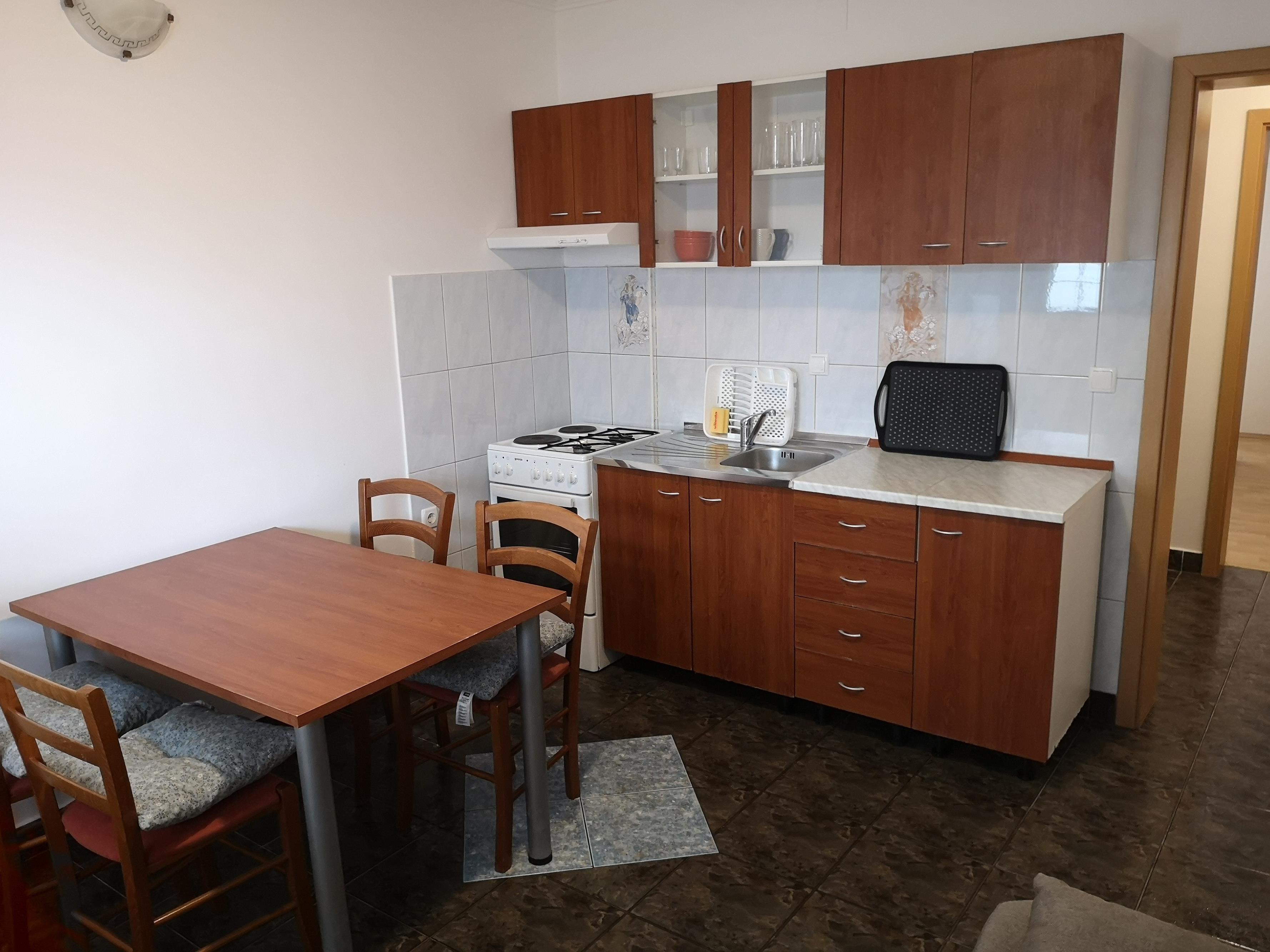 Apartment can accommodate 4 guests. Beds are situated in 1 sleeping rooms, but also in the dining room, within 24m2. Guests can use a private terrace to enjoy the warm summer evenings. Food can be prepared using barbecue which is shared with other guests too.