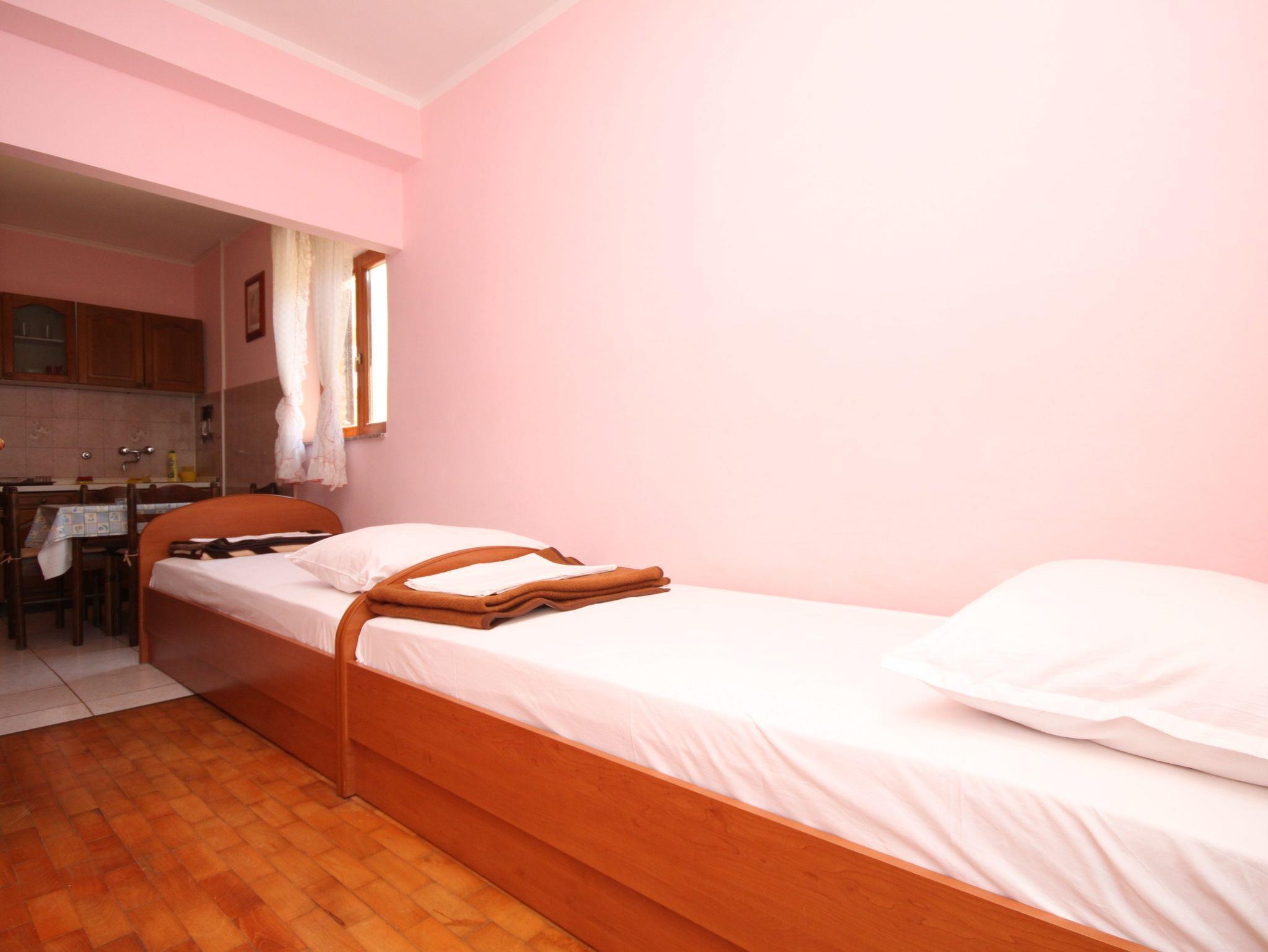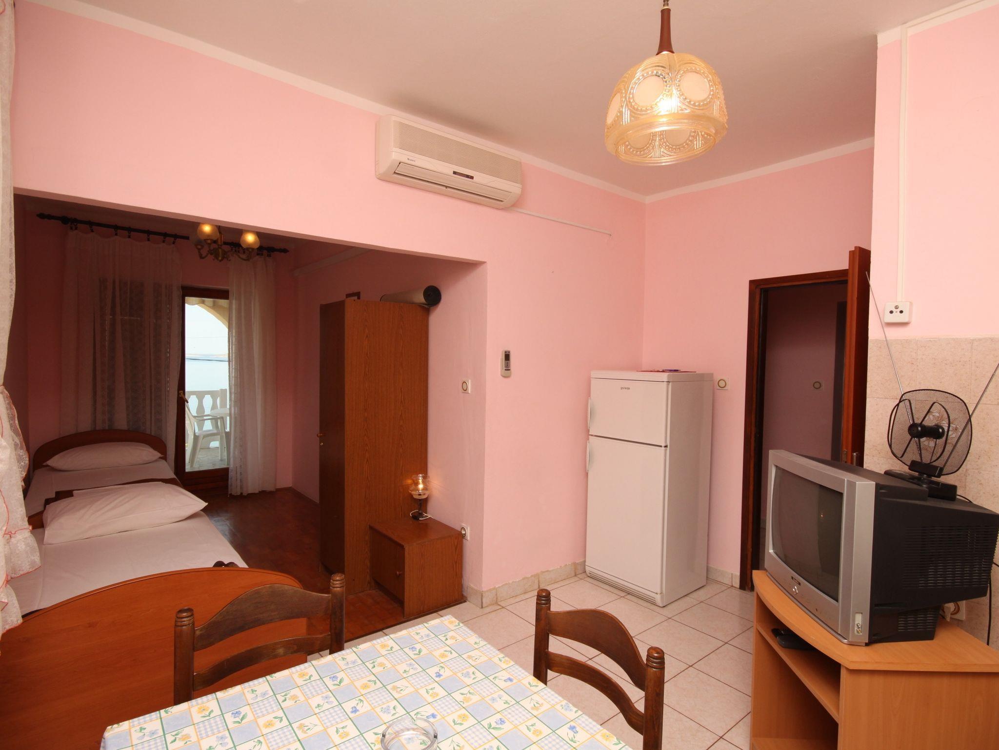 Ferienwohnung bietet Platz für 4 Gäste. Die Betten sind in Schlafzimmern, die es 1 gibt, und in Wohnzimmer, innerhalb einer Gesamtfläche von 32m2, angeordnet. Die Gäste haben eine eigene Terrasse zur Verfügung, auf der sie in warmen Sommernächten genießen können. Das Apartment bietet Meerblick. Es ist erlaubt, Speisen auf dem Gemeinschafts-Grill vorzubereiten. IM PREIS INBEGRIFFEN: Kurtaxe, Endreinigung, Klimatisierung, Parkplatz, Internet, Bootsanlegeplatz. VERBINDLICHE ZUSÄTZLICHE KOSTEN: Aufzahlung für Kurzaufenthalte (prozentualer Zuschlag pro Nächtigungsanzahl: 30% - 1, 20% - 2, 10% - 3). Die Verfügbarkeit zusätzlicher Dienstleistungen in Ihrem reservierten Termin und die Preise derselben (falls nicht aufgeführt) müssen im Voraus überprüft werden. Zusätzliche Dienstleistungen die in der Zahlungsaufforderung nicht aufgeführt sind werden direkt beim Vermieter bezahlt, angenommen der Gast nutzt auch diese. Ermäßigung auf den Grundpreis: Gratistag 14=13 (bei einem Aufenthalt von 14 Tagen oder mehr erhalten Sie einen Gratistag für den Aufenthalt bis 31.12.26).