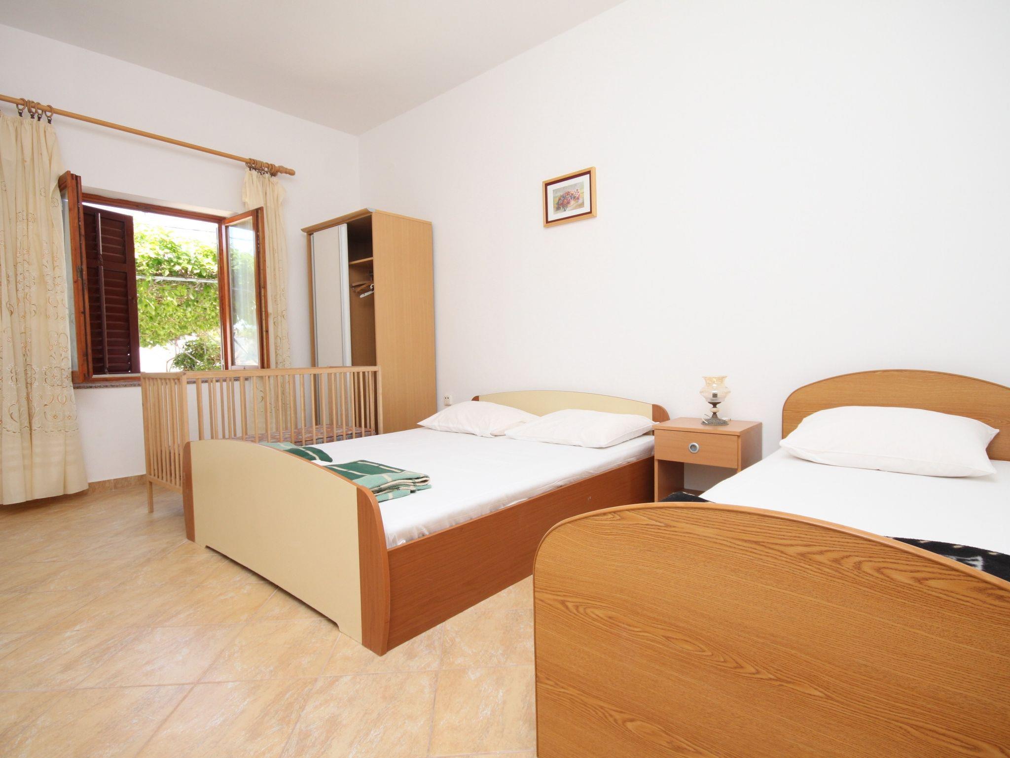 Ferienwohnung bietet Platz für 6 Gäste. Die Betten sind in Schlafzimmern, die es 2 gibt, innerhalb einer Gesamtfläche von 50m2, angeordnet. Die Gäste haben eine eigene Terrasse zur Verfügung, auf der sie in warmen Sommernächten genießen können. Es ist erlaubt, Speisen auf dem Gemeinschafts-Grill vorzubereiten. IM PREIS INBEGRIFFEN: Kurtaxe, Endreinigung, Klimatisierung, Parkplatz, Internet, Bootsanlegeplatz. VERBINDLICHE ZUSÄTZLICHE KOSTEN: Aufzahlung für Kurzaufenthalte (prozentualer Zuschlag pro Nächtigungsanzahl: 30% - 1, 20% - 2, 10% - 3). Die Verfügbarkeit zusätzlicher Dienstleistungen in Ihrem reservierten Termin und die Preise derselben (falls nicht aufgeführt) müssen im Voraus überprüft werden. Zusätzliche Dienstleistungen die in der Zahlungsaufforderung nicht aufgeführt sind werden direkt beim Vermieter bezahlt, angenommen der Gast nutzt auch diese. Ermäßigung auf den Grundpreis: Gratistag 14=13 (bei einem Aufenthalt von 14 Tagen oder mehr erhalten Sie einen Gratistag für den Aufenthalt bis 31.12.26).