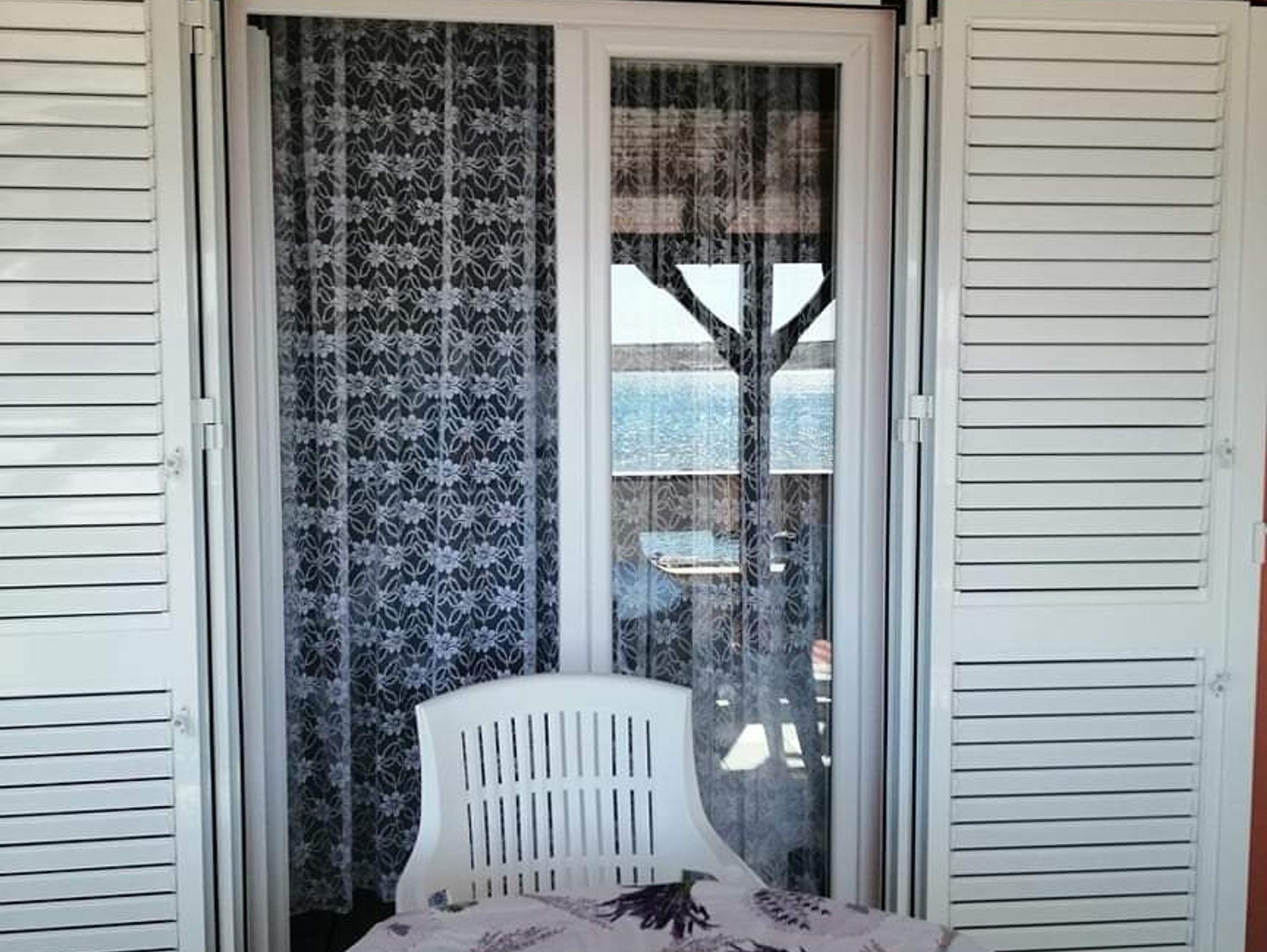 Ferienwohnung bietet Platz für 6 Gäste. Die Betten sind in Schlafzimmern, die es 2 gibt, und in Wohnzimmer, innerhalb einer Gesamtfläche von 35m2, angeordnet. Die Gäste haben eine eigene Terrasse zur Verfügung, auf der sie in warmen Sommernächten genießen können. Das Apartment bietet Meerblick. Es ist erlaubt, Speisen auf dem Gemeinschafts-Grill vorzubereiten. In der Unterkunftseinheit besteht die Möglichkeit des Mitbringens von Haustieren gegen Aufpreis. IM PREIS INBEGRIFFEN: Kurtaxe, Endreinigung, Klimatisierung, Parkplatz, Internet, Wäschewaschen, Bootsanlegeplatz, Bügeleisen, Bügelbrett, Föhn. VERBINDLICHE ZUSÄTZLICHE KOSTEN: Aufzahlung für Kurzaufenthalte (prozentualer Zuschlag pro Nächtigungsanzahl: 30% - 1, 20% - 2, 10% - 3). UNVERBINDLICHE ZUSÄTZLICHE KOSTEN: Haustiere (5,00 € pro Nacht), Zusatzbett (7,00 € pro Nacht). Die Verfügbarkeit zusätzlicher Dienstleistungen in Ihrem reservierten Termin und die Preise derselben (falls nicht aufgeführt) müssen im Voraus überprüft werden. Zusätzliche Dienstleistungen die in der Zahlungsaufforderung nicht aufgeführt sind werden direkt beim Vermieter bezahlt, angenommen der Gast nutzt auch diese.
