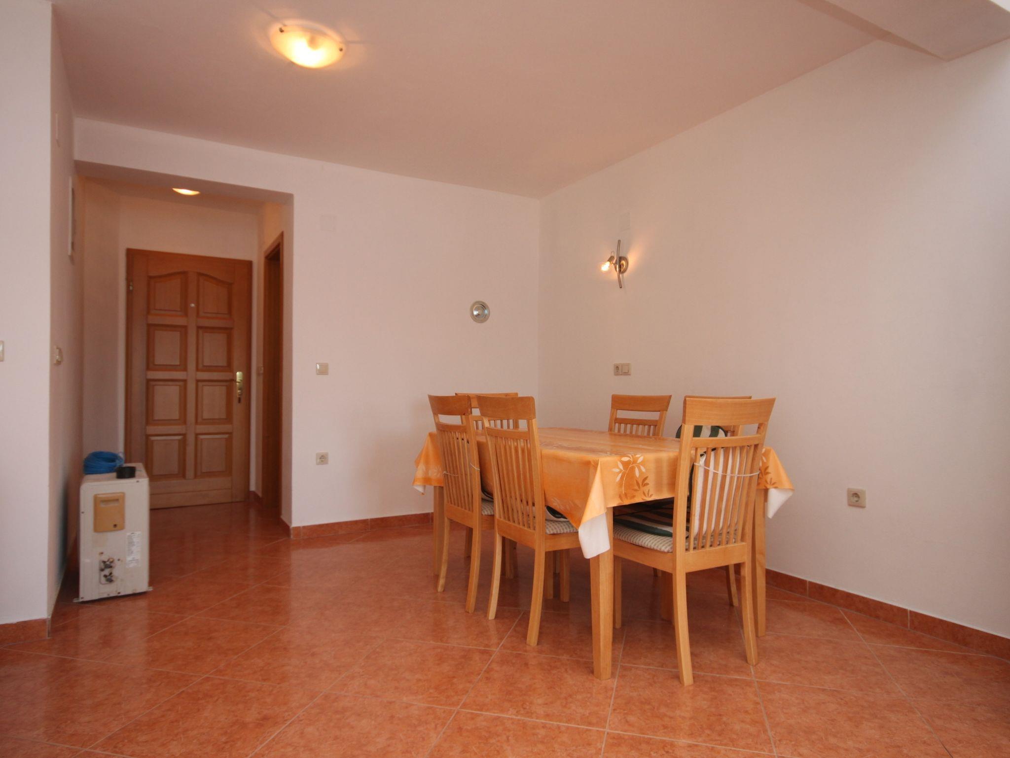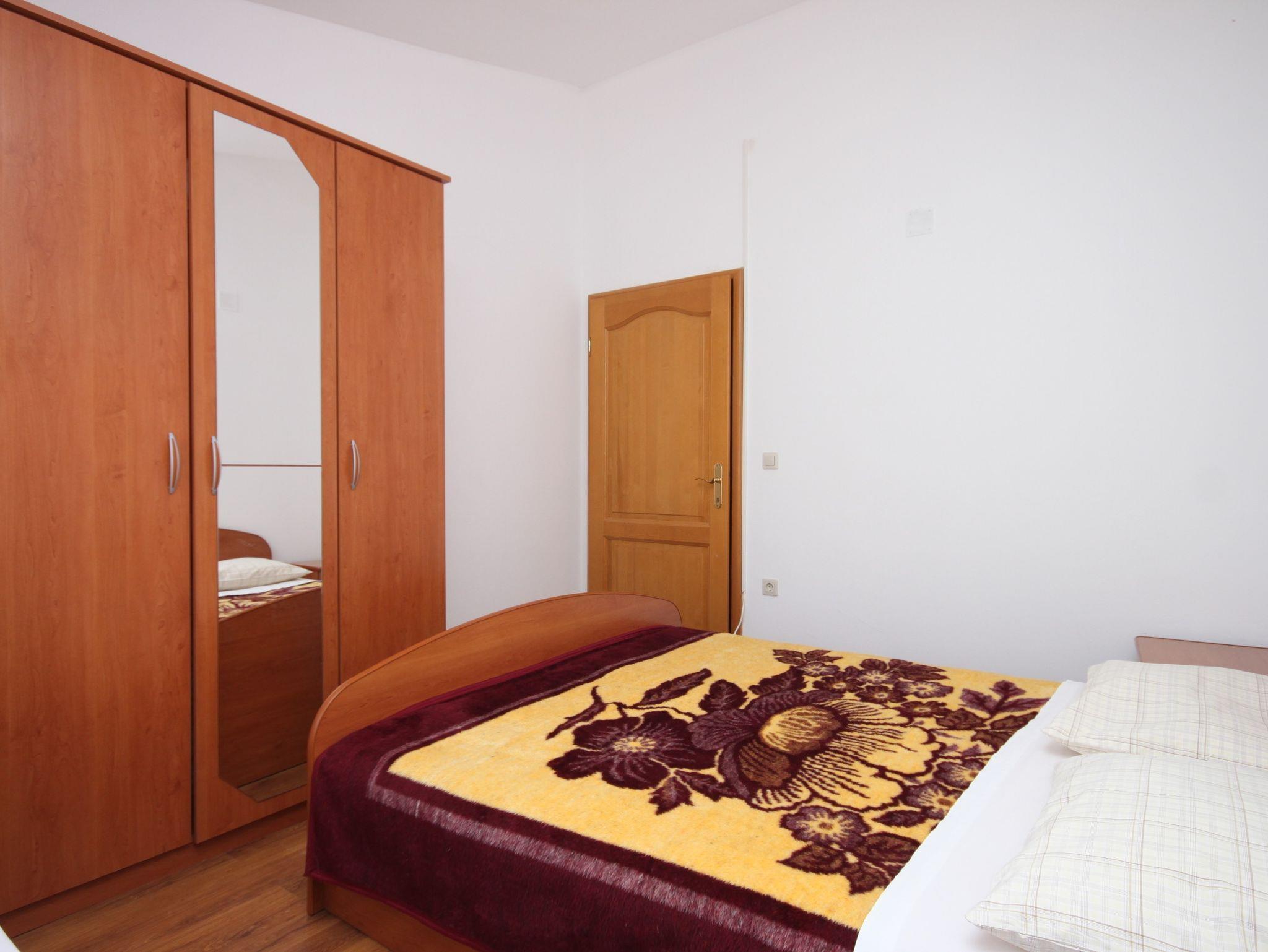 Ferienwohnung bietet Platz für 4 Gäste. Die Betten sind in Schlafzimmern, die es 1 gibt, und in Wohnzimmer, innerhalb einer Gesamtfläche von 43m2, angeordnet. Die Gäste haben eine eigene Terrasse zur Verfügung, auf der sie in warmen Sommernächten genießen können. Das Apartment bietet Meerblick. Es ist erlaubt, Speisen auf dem Gemeinschafts-Grill vorzubereiten. In der Unterkunftseinheit besteht die Möglichkeit des Mitbringens von Haustieren gegen Aufpreis. IM PREIS INBEGRIFFEN: Kurtaxe, Endreinigung, Parkplatz, Bootsanlegeplatz, Kinderbett, Bügeleisen, Bügelbrett. VERBINDLICHE ZUSÄTZLICHE KOSTEN: Aufzahlung für Kurzaufenthalte (prozentualer Zuschlag pro Nächtigungsanzahl: 30% - 1, 20% - 2, 10% - 3). UNVERBINDLICHE ZUSÄTZLICHE KOSTEN: Klimatisierung (5,00 € pro Nacht), Haustiere (5,00 € pro Nacht), Zusatzbett (10,00 € pro Nacht). Die Verfügbarkeit zusätzlicher Dienstleistungen in Ihrem reservierten Termin und die Preise derselben (falls nicht aufgeführt) müssen im Voraus überprüft werden. Zusätzliche Dienstleistungen die in der Zahlungsaufforderung nicht aufgeführt sind werden direkt beim Vermieter bezahlt, angenommen der Gast nutzt auch diese.