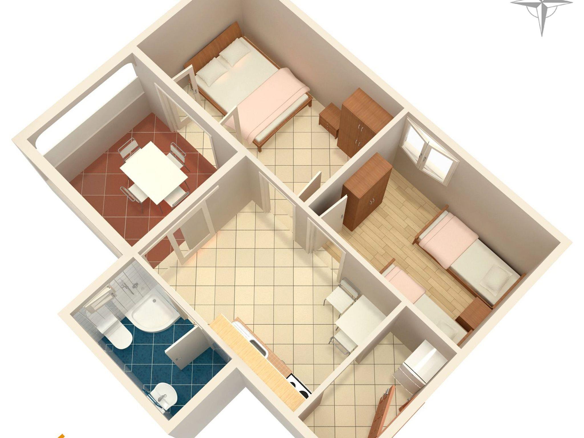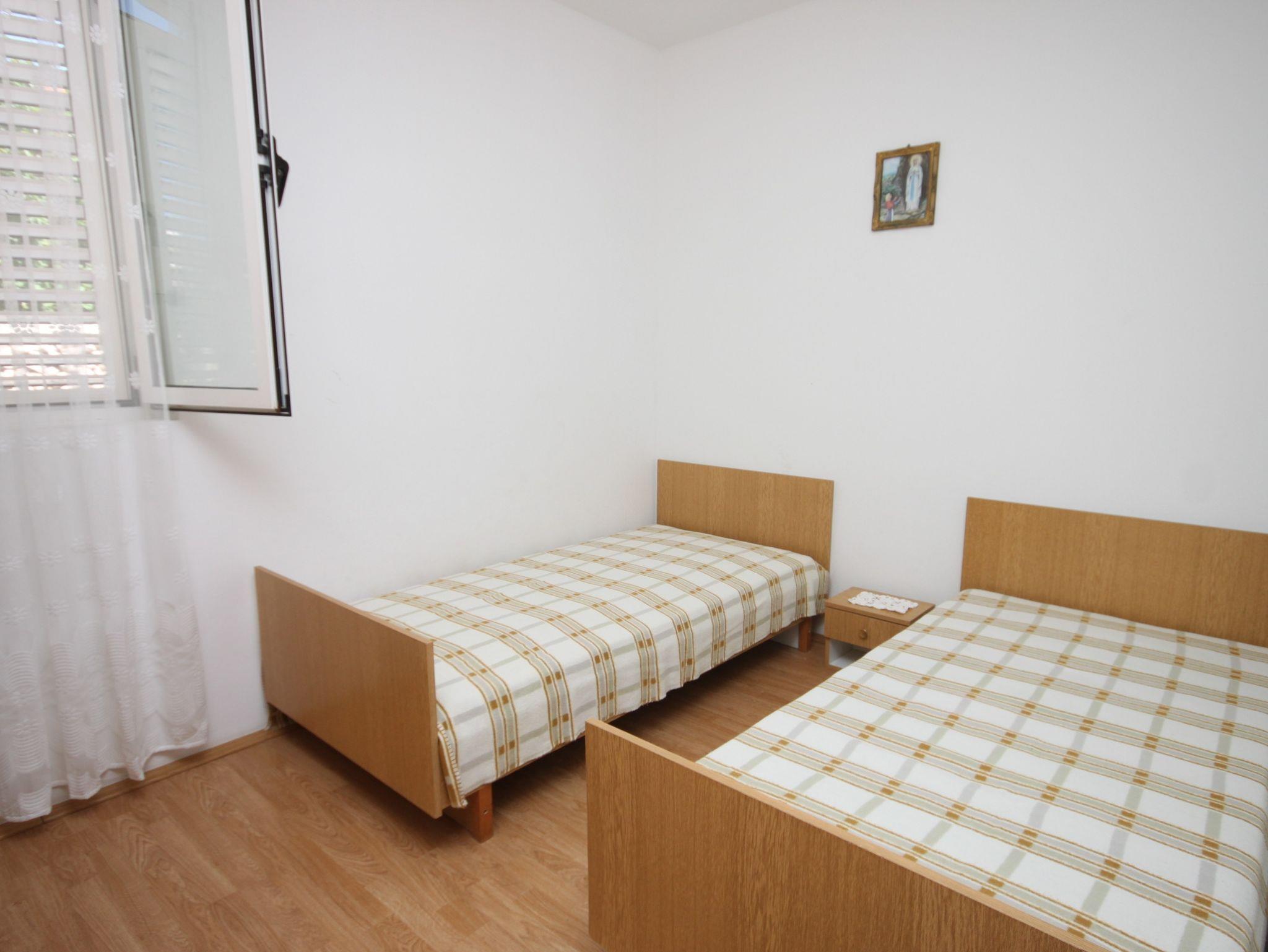 Ferienwohnung bietet Platz für 4 Gäste. Die Betten sind in Schlafzimmern, die es 2 gibt, innerhalb einer Gesamtfläche von 35m2, angeordnet. Die Gäste haben eine eigene Terrasse zur Verfügung, auf der sie in warmen Sommernächten genießen können. Es ist erlaubt, Speisen auf dem Gemeinschafts-Grill vorzubereiten. In der Unterkunftseinheit besteht die Möglichkeit des Mitbringens von Haustieren gegen Aufpreis. IM PREIS INBEGRIFFEN: Kurtaxe, Endreinigung, Klimatisierung, Parkplatz, Internet, Wäschewaschen, Bootsanlegeplatz, Bügeleisen, Bügelbrett, Föhn. VERBINDLICHE ZUSÄTZLICHE KOSTEN: Aufzahlung für Kurzaufenthalte (prozentualer Zuschlag pro Nächtigungsanzahl: 30% - 1, 20% - 2, 10% - 3). UNVERBINDLICHE ZUSÄTZLICHE KOSTEN: Haustiere (5,00 € pro Nacht), Zusatzbett (7,00 € pro Nacht). Die Verfügbarkeit zusätzlicher Dienstleistungen in Ihrem reservierten Termin und die Preise derselben (falls nicht aufgeführt) müssen im Voraus überprüft werden. Zusätzliche Dienstleistungen die in der Zahlungsaufforderung nicht aufgeführt sind werden direkt beim Vermieter bezahlt, angenommen der Gast nutzt auch diese.