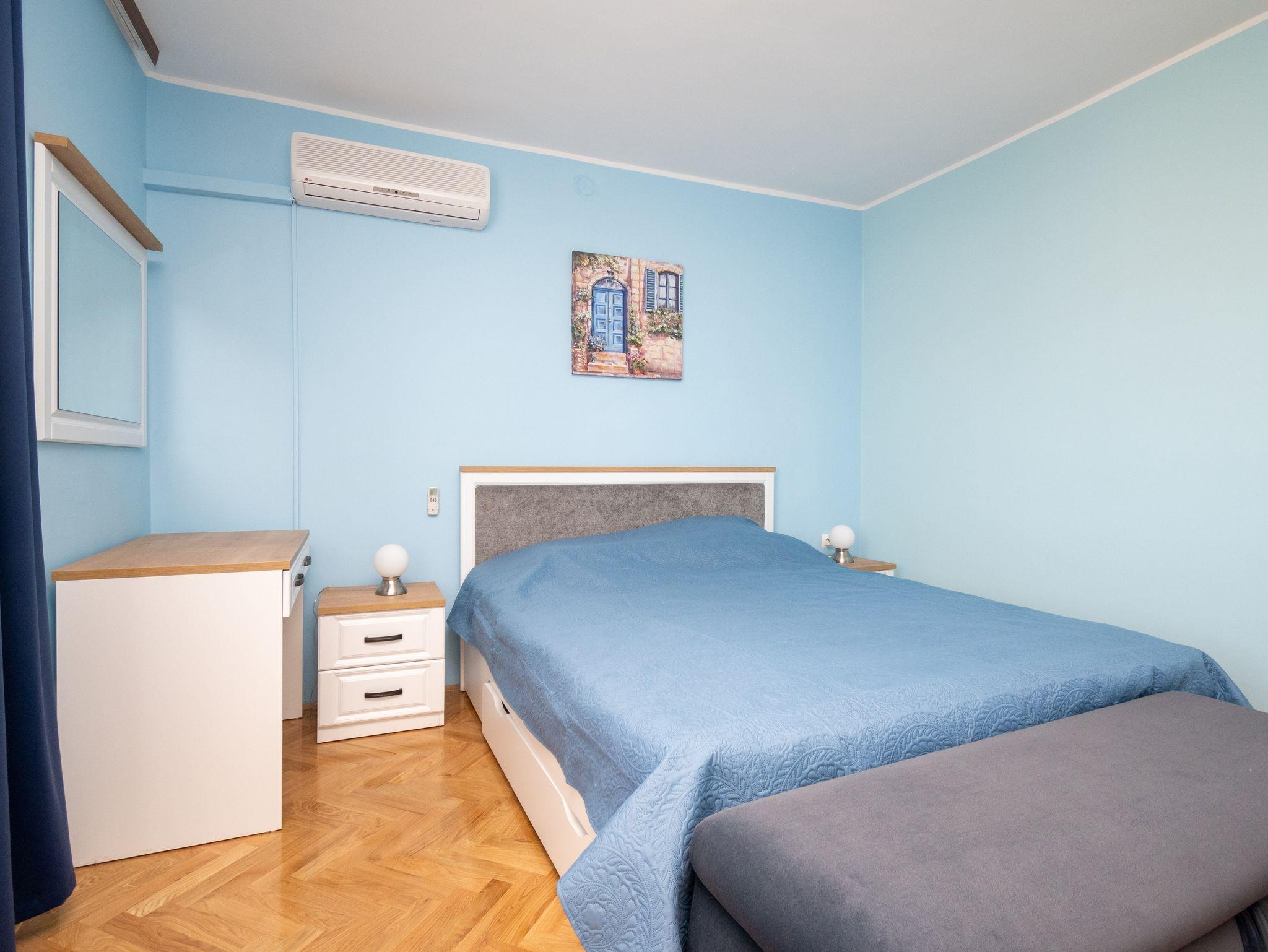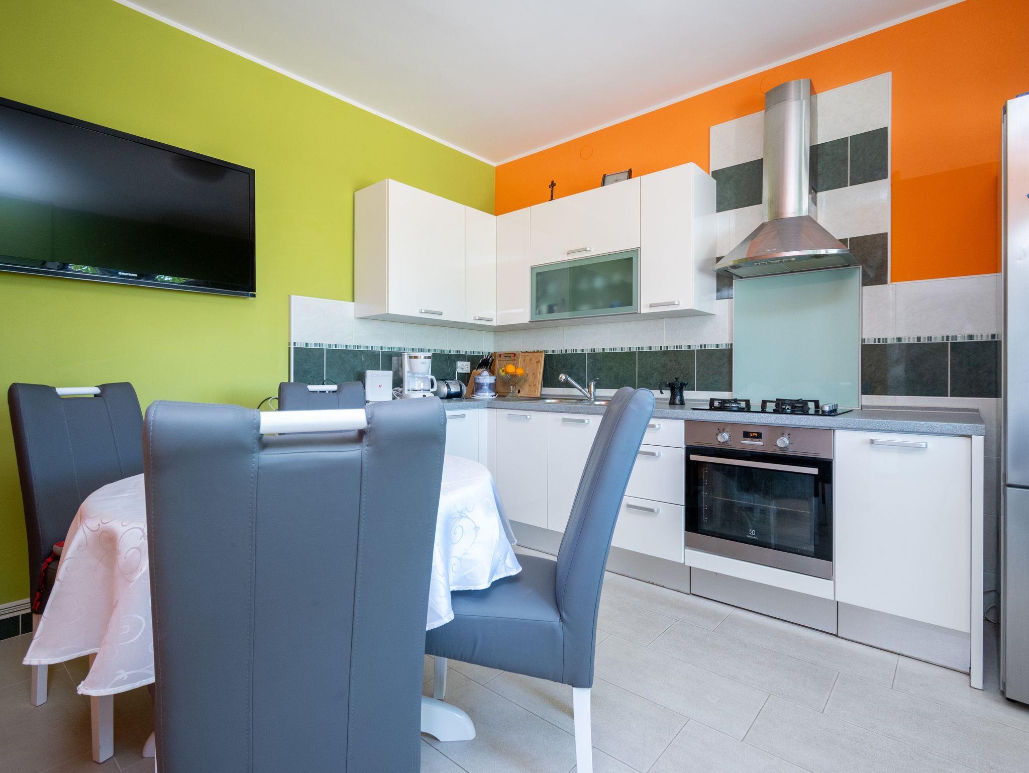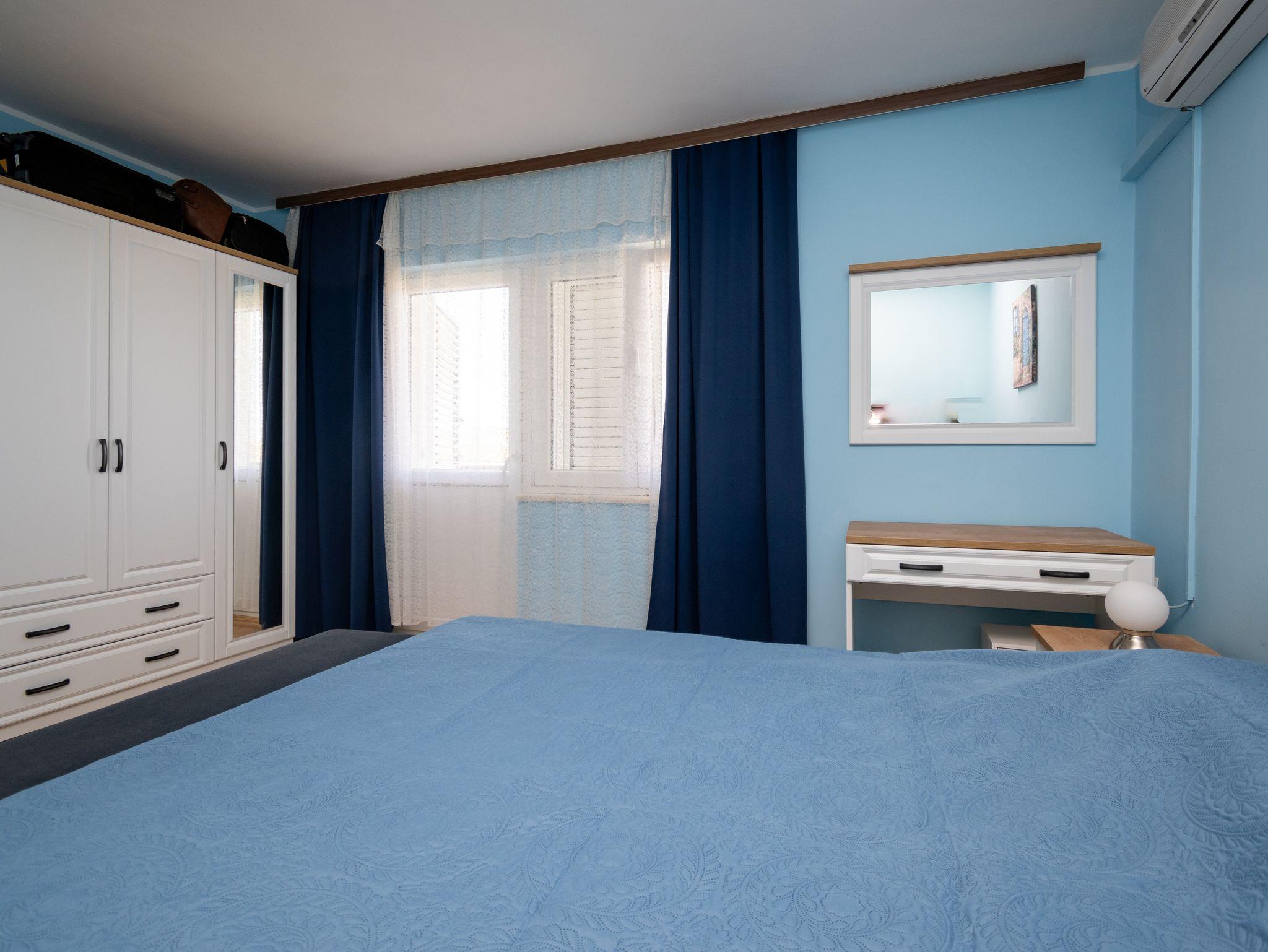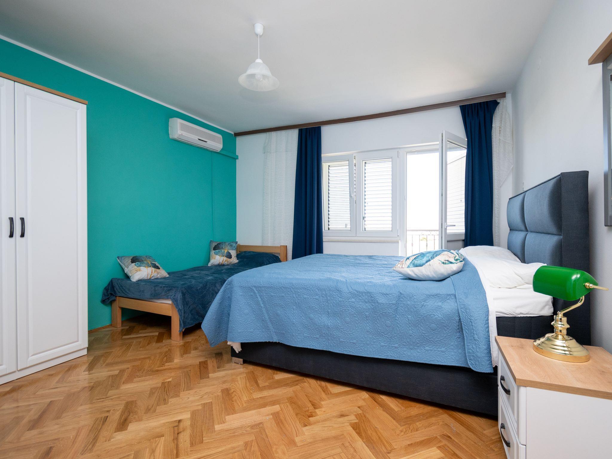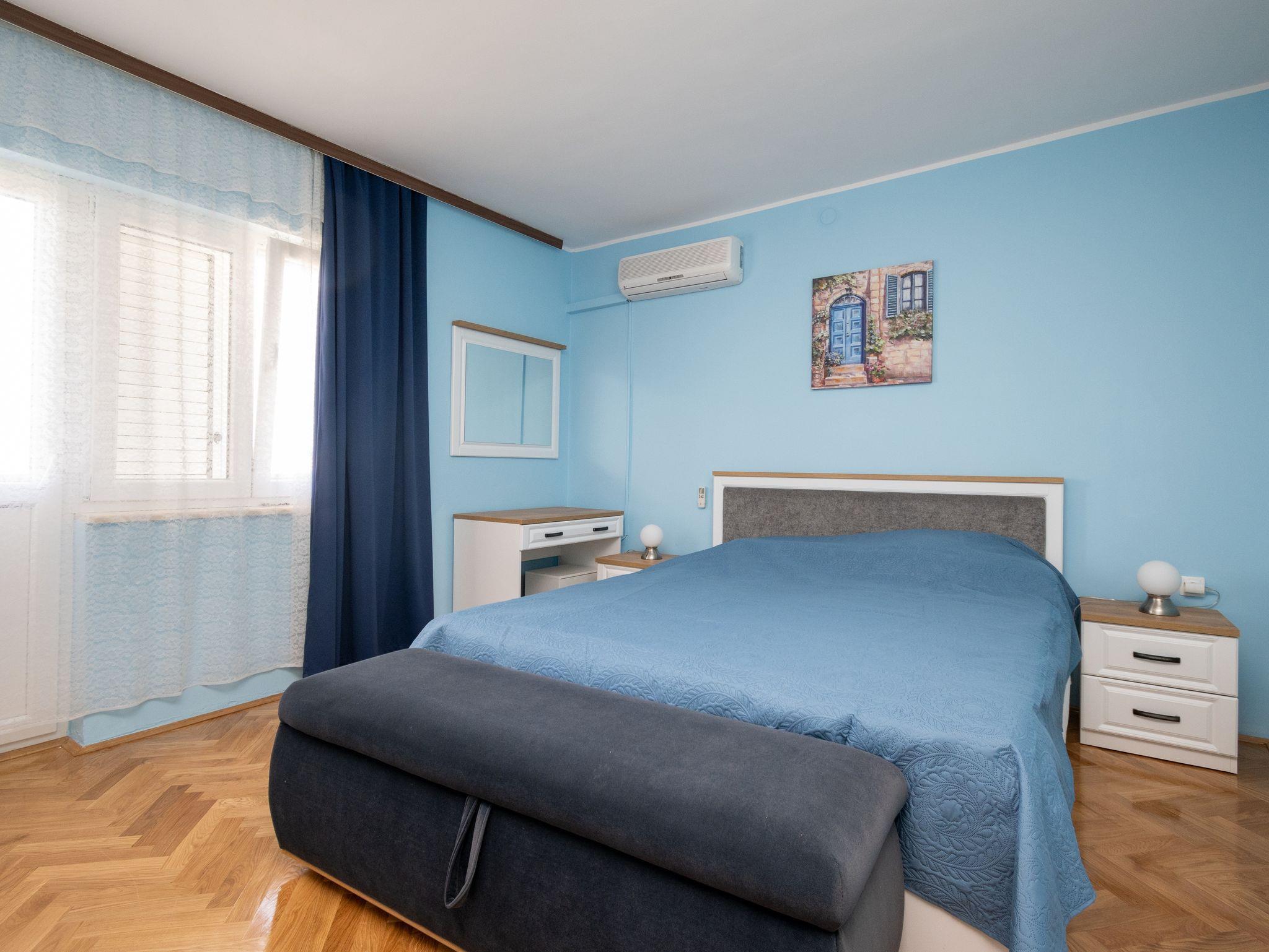 Haus bietet Platz für 6 Gäste. Die Betten sind in Schlafzimmern, die es 3 gibt, innerhalb einer Gesamtfläche von 69m2, angeordnet. Die Gäste haben eine eigene Terrasse zur Verfügung, auf der sie in warmen Sommernächten genießen können. Das Haus bietet Meerblick. Es ist erlaubt, Speisen auf dem Gemeinschafts-Grill vorzubereiten. IM PREIS INBEGRIFFEN: Kurtaxe, Endreinigung, Klimatisierung, Parkplatz, Internet, Bügeleisen, Bügelbrett, Föhn, tragbarer Grill. Die Verfügbarkeit zusätzlicher Dienstleistungen in Ihrem reservierten Termin und die Preise derselben (falls nicht aufgeführt) müssen im Voraus überprüft werden. Zusätzliche Dienstleistungen die in der Zahlungsaufforderung nicht aufgeführt sind werden direkt beim Vermieter bezahlt, angenommen der Gast nutzt auch diese.