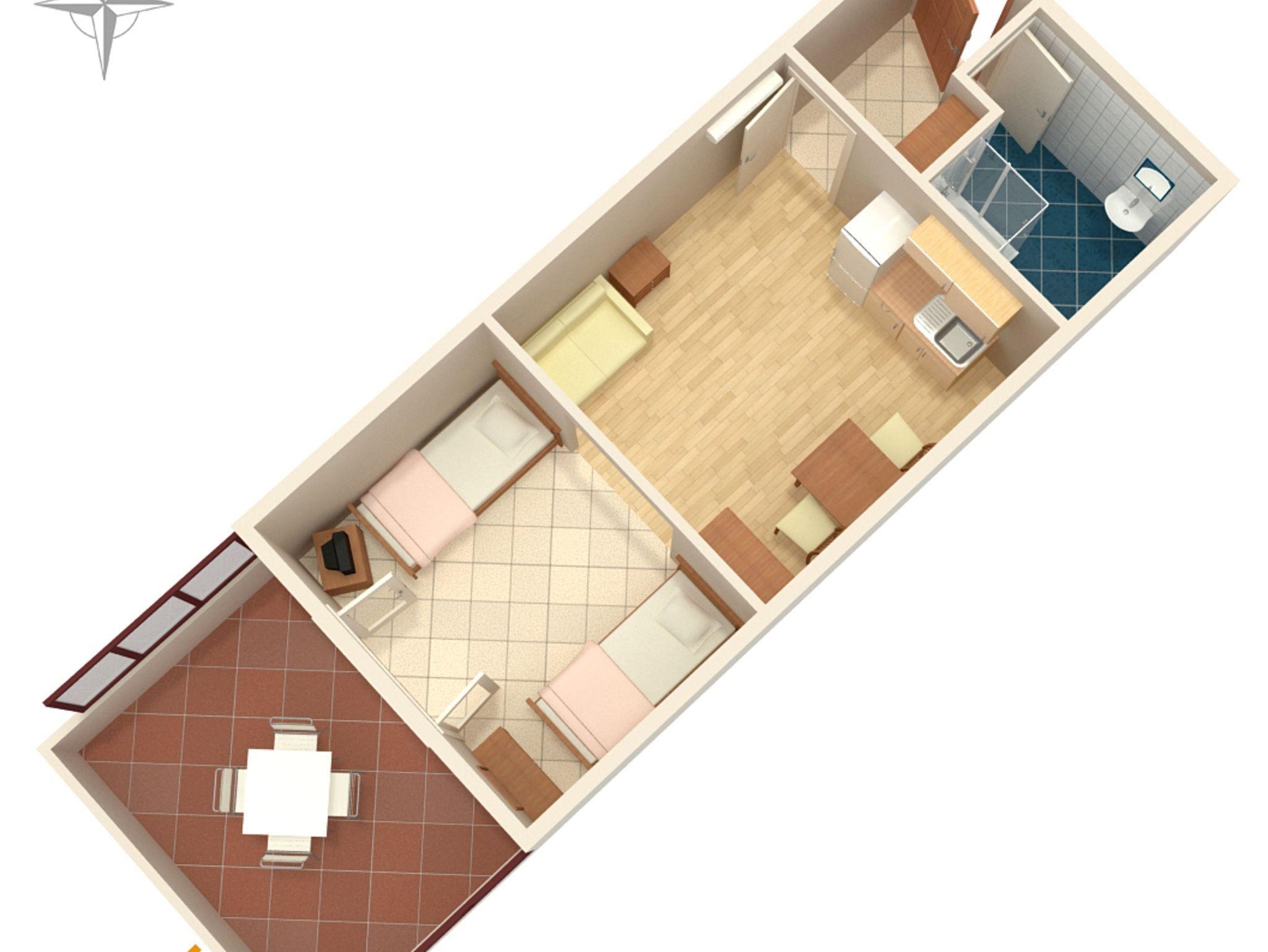 Studio bietet Platz für 4 Gäste. Die Betten sind in Schlafzimmern, die es 1 gibt, und in Esszimmer, innerhalb einer Gesamtfläche von 32m2, angeordnet. Die Gäste haben eine eigene Terrasse zur Verfügung, auf der sie in warmen Sommernächten genießen können. Das Studio-Apartment bietet Meerblick. Es ist erlaubt, Speisen auf dem Gemeinschafts-Grill vorzubereiten. In der Unterkunftseinheit besteht die Möglichkeit des Mitbringens von Haustieren gegen Aufpreis. IM PREIS INBEGRIFFEN: Kurtaxe, Endreinigung, Klimatisierung, Parkplatz, Internet, Wäschewaschen, Bootsanlegeplatz, Bügeleisen, Bügelbrett, Föhn. VERBINDLICHE ZUSÄTZLICHE KOSTEN: Aufzahlung für Kurzaufenthalte (prozentualer Zuschlag pro Nächtigungsanzahl: 30% - 1, 20% - 2, 10% - 3). UNVERBINDLICHE ZUSÄTZLICHE KOSTEN: Haustiere (5,00 € pro Nacht), Zusatzbett (7,00 € pro Nacht). Die Verfügbarkeit zusätzlicher Dienstleistungen in Ihrem reservierten Termin und die Preise derselben (falls nicht aufgeführt) müssen im Voraus überprüft werden. Zusätzliche Dienstleistungen die in der Zahlungsaufforderung nicht aufgeführt sind werden direkt beim Vermieter bezahlt, angenommen der Gast nutzt auch diese.