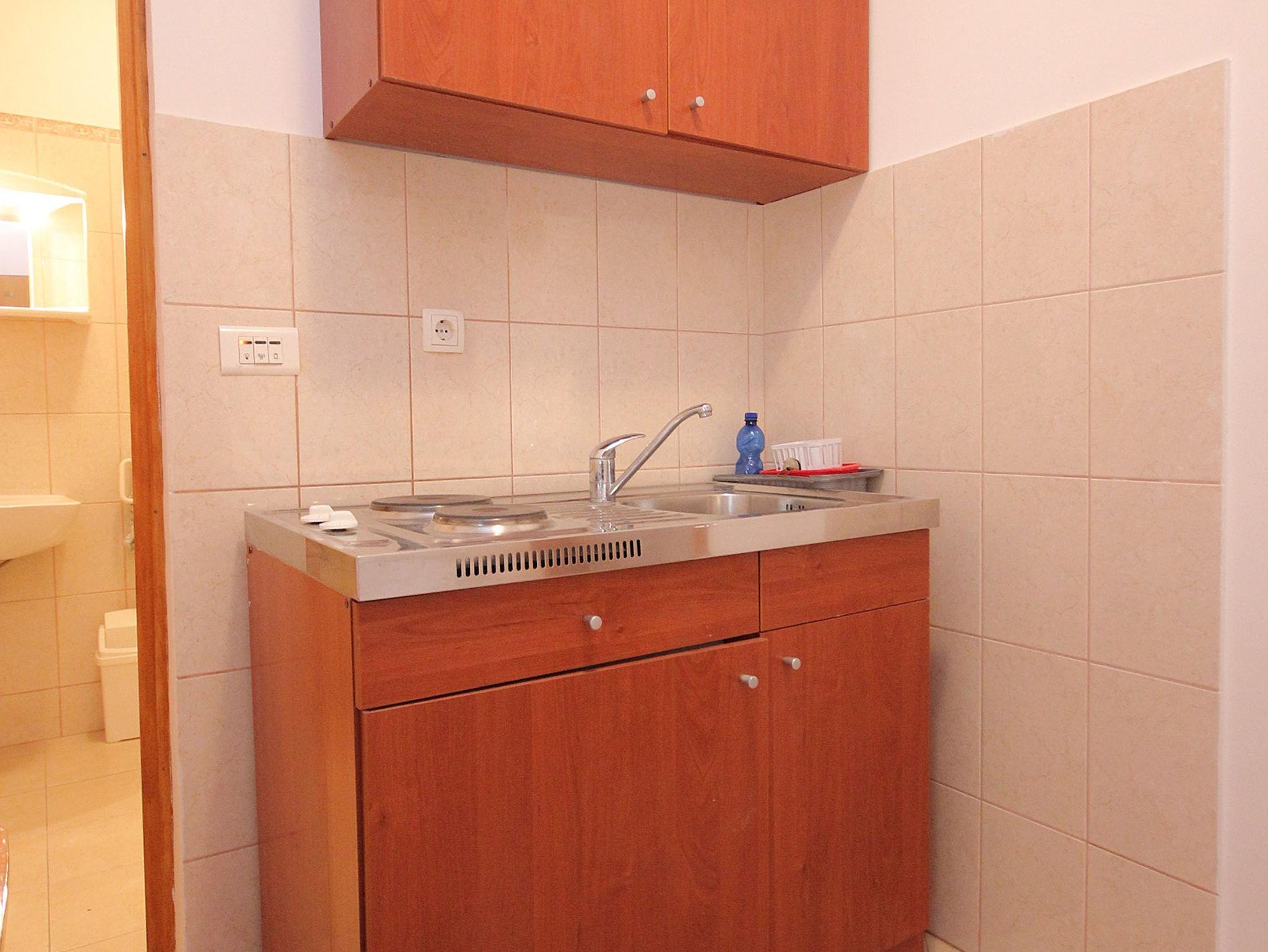 Studio bietet Platz für 2 Gäste. Die Betten sind in Schlafzimmern, die es 1 gibt, innerhalb einer Gesamtfläche von 28m2, angeordnet. Die Gäste haben eine eigene Terrasse zur Verfügung, auf der sie in warmen Sommernächten genießen können. Das Studio-Apartment bietet Meerblick. Es ist erlaubt, Speisen auf dem Gemeinschafts-Grill vorzubereiten. Während ihres Aufenthalts können Gäste das gemeinsam zur Nutzung stehende Schwimmbad benutzen. In der Unterkunftseinheit besteht die Möglichkeit des Mitbringens von Haustieren, und die Dienstleistung ist im Preis der Unterkunft enthalten. In der gebuchten Unterkunftseinheit zahlt man am Ort ein Depositum ( der Preis ist an der Internetseite angeführt ). IM PREIS INBEGRIFFEN: Kurtaxe, Endreinigung, Klimatisierung, Pool, Parkplatz, Internet, Wäschewaschen, Haustiere, Fahrrad, Kinderbett, Bügeleisen, Bügelbrett, Föhn. VERBINDLICHE ZUSÄTZLICHE KOSTEN: Kaution (200,00 € Einmalzahlung), Aufzahlung für Kurzaufenthalte (prozentualer Zuschlag pro Nächtigungsanzahl: 30% - 1, 20% - 2, 10% - 3). Die Verfügbarkeit zusätzlicher Dienstleistungen in Ihrem reservierten Termin und die Preise derselben (falls nicht aufgeführt) müssen im Voraus überprüft werden. Zusätzliche Dienstleistungen die in der Zahlungsaufforderung nicht aufgeführt sind werden direkt beim Vermieter bezahlt, angenommen der Gast nutzt auch diese. Ermäßigung auf den Grundpreis: Gratistag 21=19 (bei einem Aufenthalt von 21 Tagen oder mehr erhalten Sie 2 Gratistage für den Aufenthalt bis 31.12.26).