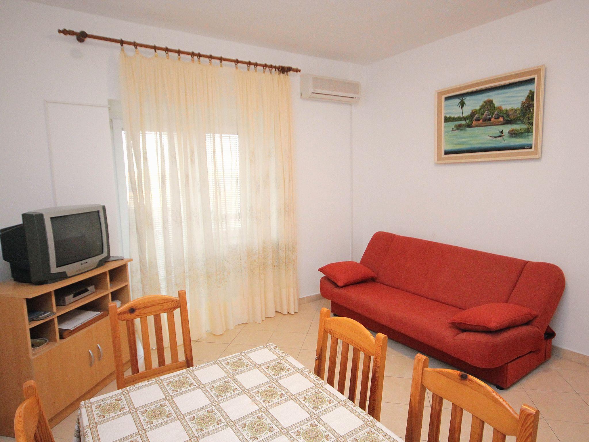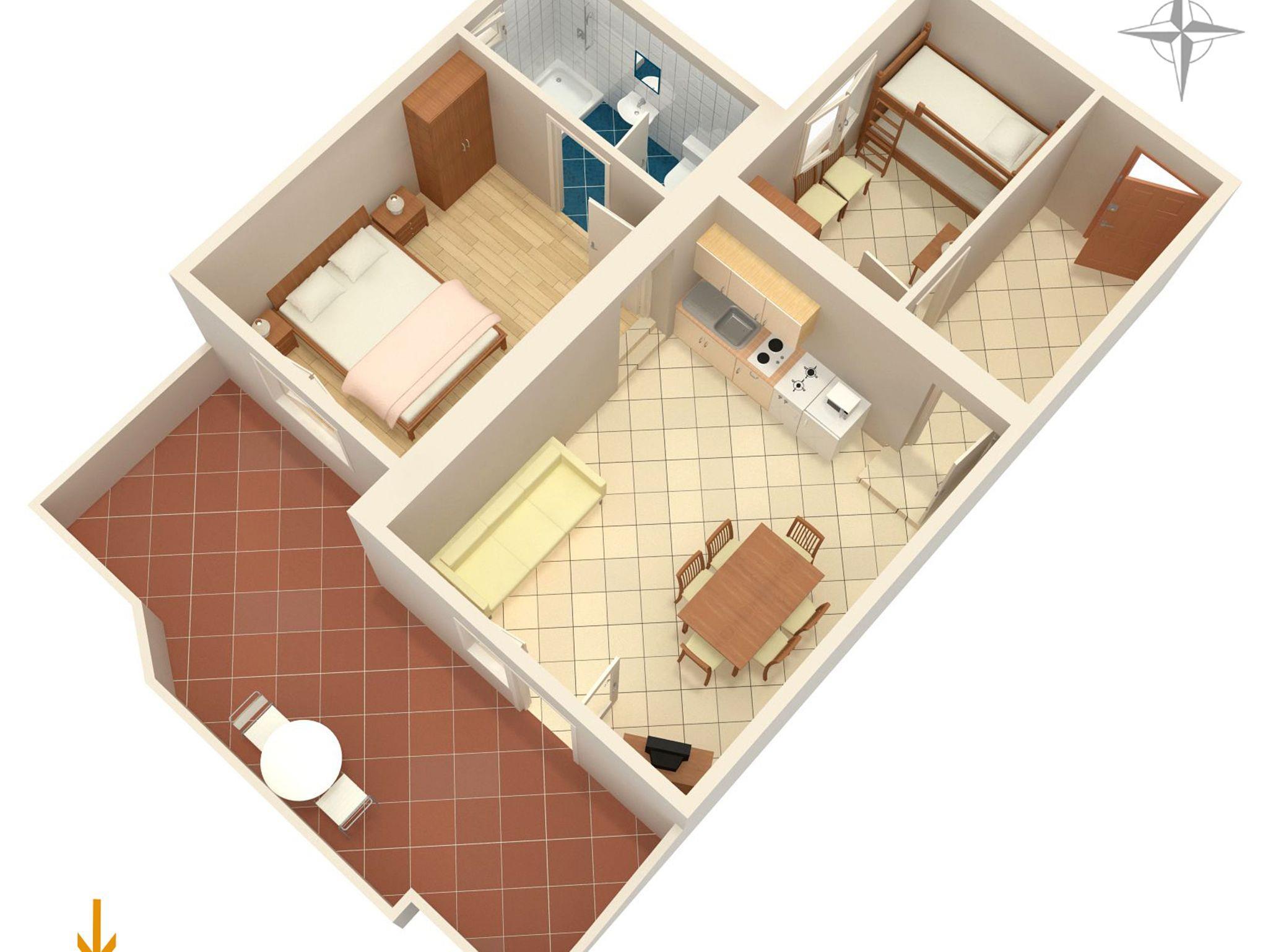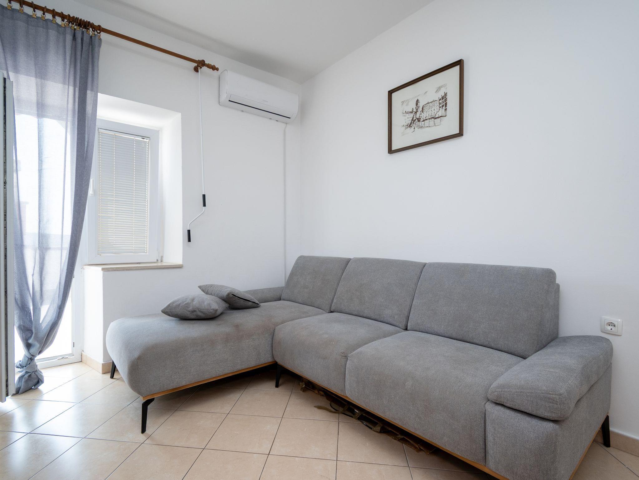 Ferienwohnung bietet Platz für 4 Gäste. Die Betten sind in Schlafzimmern, die es 2 gibt, innerhalb einer Gesamtfläche von 48m2, angeordnet. Die Gäste haben eine eigene Terrasse zur Verfügung, auf der sie in warmen Sommernächten genießen können. Das Apartment bietet Meerblick. Es ist erlaubt, Speisen auf dem Gemeinschafts-Grill vorzubereiten. Während ihres Aufenthalts können Gäste das gemeinsam zur Nutzung stehende Schwimmbad benutzen. In der Unterkunftseinheit besteht die Möglichkeit des Mitbringens von Haustieren, und die Dienstleistung ist im Preis der Unterkunft enthalten. In der gebuchten Unterkunftseinheit zahlt man am Ort ein Depositum ( der Preis ist an der Internetseite angeführt ). IM PREIS INBEGRIFFEN: Kurtaxe, Endreinigung, Klimatisierung, Pool, Parkplatz, Internet, Wäschewaschen, Haustiere, Fahrrad, Kinderbett, Bügeleisen, Bügelbrett, Föhn. VERBINDLICHE ZUSÄTZLICHE KOSTEN: Kaution (200,00 € Einmalzahlung), Aufzahlung für Kurzaufenthalte (prozentualer Zuschlag pro Nächtigungsanzahl: 30% - 1, 20% - 2, 10% - 3). Die Verfügbarkeit zusätzlicher Dienstleistungen in Ihrem reservierten Termin und die Preise derselben (falls nicht aufgeführt) müssen im Voraus überprüft werden. Zusätzliche Dienstleistungen die in der Zahlungsaufforderung nicht aufgeführt sind werden direkt beim Vermieter bezahlt, angenommen der Gast nutzt auch diese. Ermäßigung auf den Grundpreis: Gratistag 21=19 (bei einem Aufenthalt von 21 Tagen oder mehr erhalten Sie 2 Gratistage für den Aufenthalt bis 31.12.26).