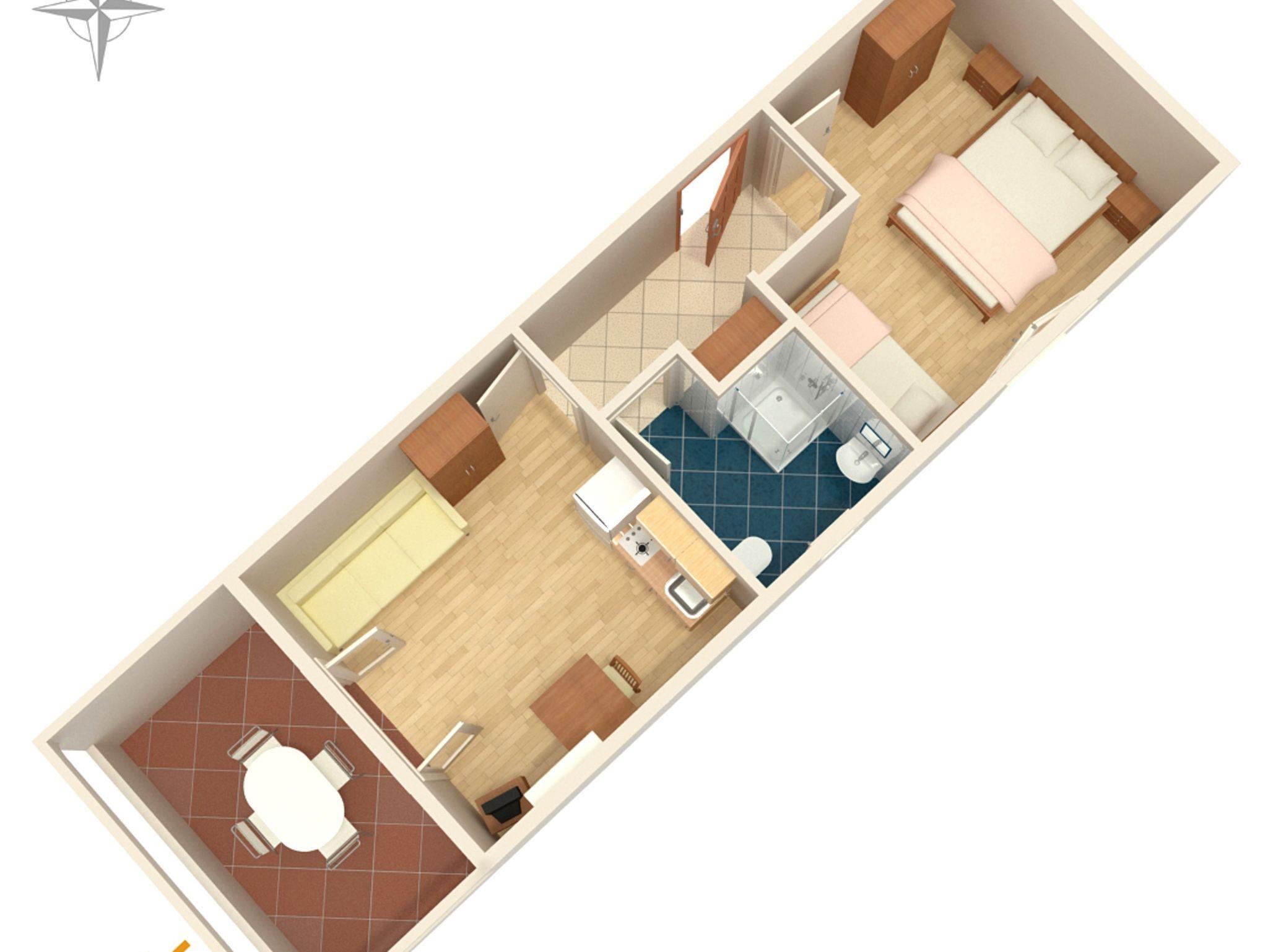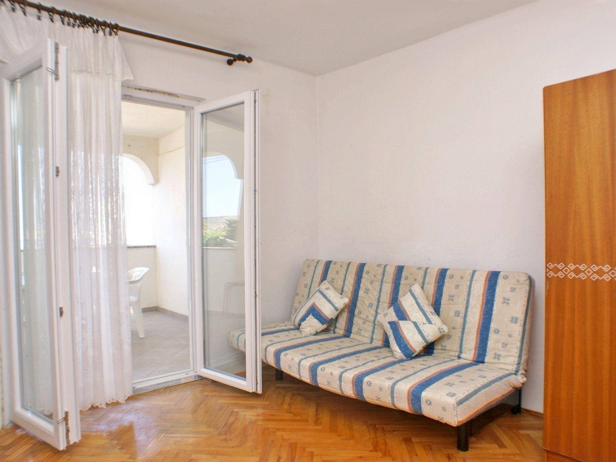 Ferienwohnung bietet Platz für 5 Gäste. Die Betten sind in Schlafzimmern, die es 1 gibt, und in Wohnzimmer, innerhalb einer Gesamtfläche von 36m2, angeordnet. Die Gäste haben eine eigene Terrasse zur Verfügung, auf der sie in warmen Sommernächten genießen können. Das Apartment bietet Meerblick. Es ist erlaubt, Speisen auf dem Gemeinschafts-Grill vorzubereiten. In der Unterkunftseinheit besteht die Möglichkeit des Mitbringens von Haustieren gegen Aufpreis. IM PREIS INBEGRIFFEN: Kurtaxe, Endreinigung, Klimatisierung, Parkplatz, Internet, Wäschewaschen, Bootsanlegeplatz, Bügeleisen, Bügelbrett, Föhn. VERBINDLICHE ZUSÄTZLICHE KOSTEN: Aufzahlung für Kurzaufenthalte (prozentualer Zuschlag pro Nächtigungsanzahl: 30% - 1, 20% - 2, 10% - 3). UNVERBINDLICHE ZUSÄTZLICHE KOSTEN: Haustiere (5,00 € pro Nacht), Zusatzbett (7,00 € pro Nacht). Die Verfügbarkeit zusätzlicher Dienstleistungen in Ihrem reservierten Termin und die Preise derselben (falls nicht aufgeführt) müssen im Voraus überprüft werden. Zusätzliche Dienstleistungen die in der Zahlungsaufforderung nicht aufgeführt sind werden direkt beim Vermieter bezahlt, angenommen der Gast nutzt auch diese.