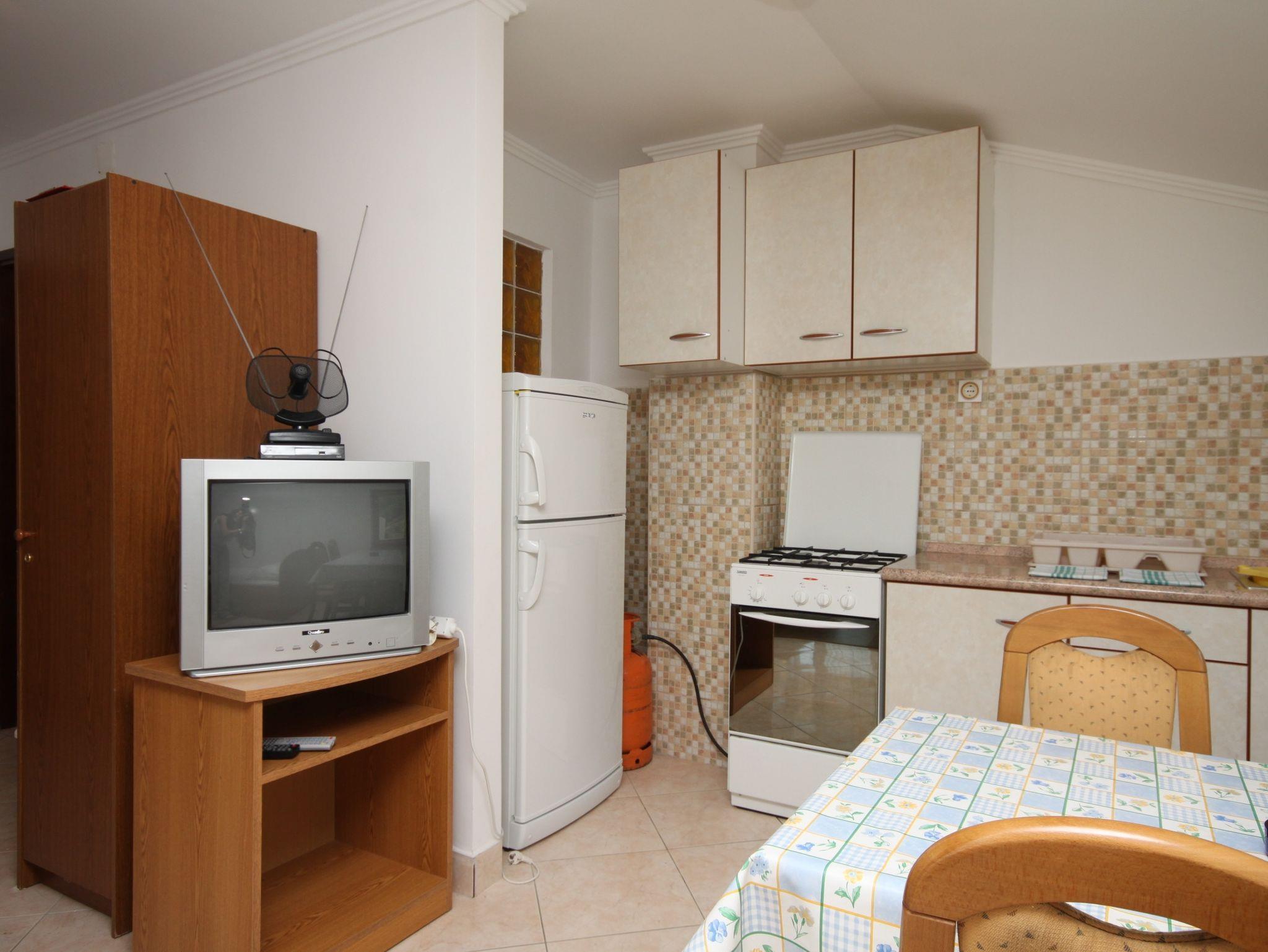 Ferienwohnung bietet Platz für 4 Gäste. Die Betten sind in Schlafzimmern, die es 1 gibt, und in Wohnzimmer, innerhalb einer Gesamtfläche von 38m2, angeordnet. Die Gäste haben eine eigene Terrasse zur Verfügung, auf der sie in warmen Sommernächten genießen können. Das Apartment bietet Meerblick. Es ist erlaubt, Speisen auf dem Gemeinschafts-Grill vorzubereiten. IM PREIS INBEGRIFFEN: Kurtaxe, Endreinigung, Klimatisierung, Parkplatz, Internet, Bootsanlegeplatz. VERBINDLICHE ZUSÄTZLICHE KOSTEN: Aufzahlung für Kurzaufenthalte (prozentualer Zuschlag pro Nächtigungsanzahl: 30% - 1, 20% - 2, 10% - 3). Die Verfügbarkeit zusätzlicher Dienstleistungen in Ihrem reservierten Termin und die Preise derselben (falls nicht aufgeführt) müssen im Voraus überprüft werden. Zusätzliche Dienstleistungen die in der Zahlungsaufforderung nicht aufgeführt sind werden direkt beim Vermieter bezahlt, angenommen der Gast nutzt auch diese. Ermäßigung auf den Grundpreis: Gratistag 14=13 (bei einem Aufenthalt von 14 Tagen oder mehr erhalten Sie einen Gratistag für den Aufenthalt bis 31.12.26).