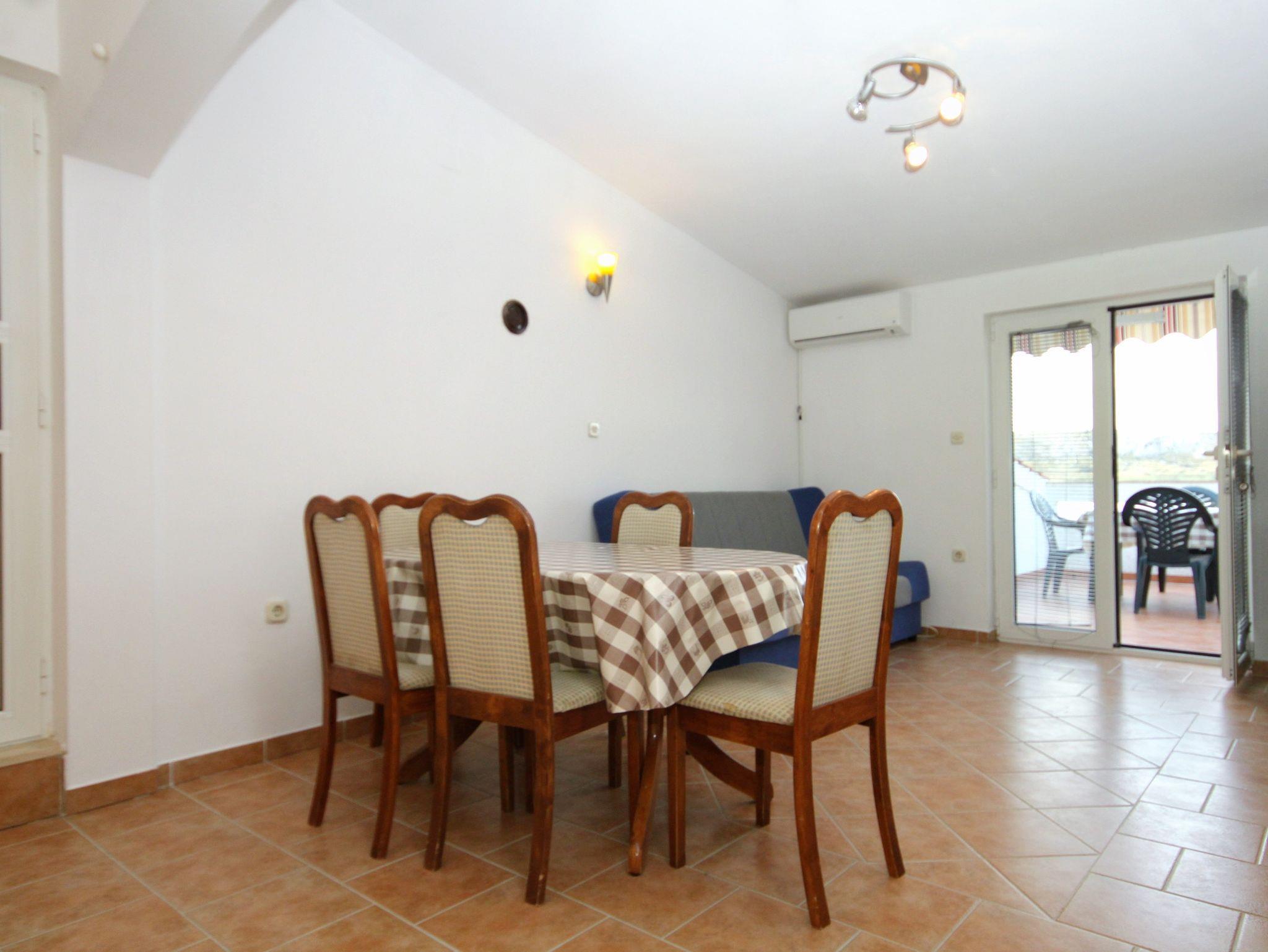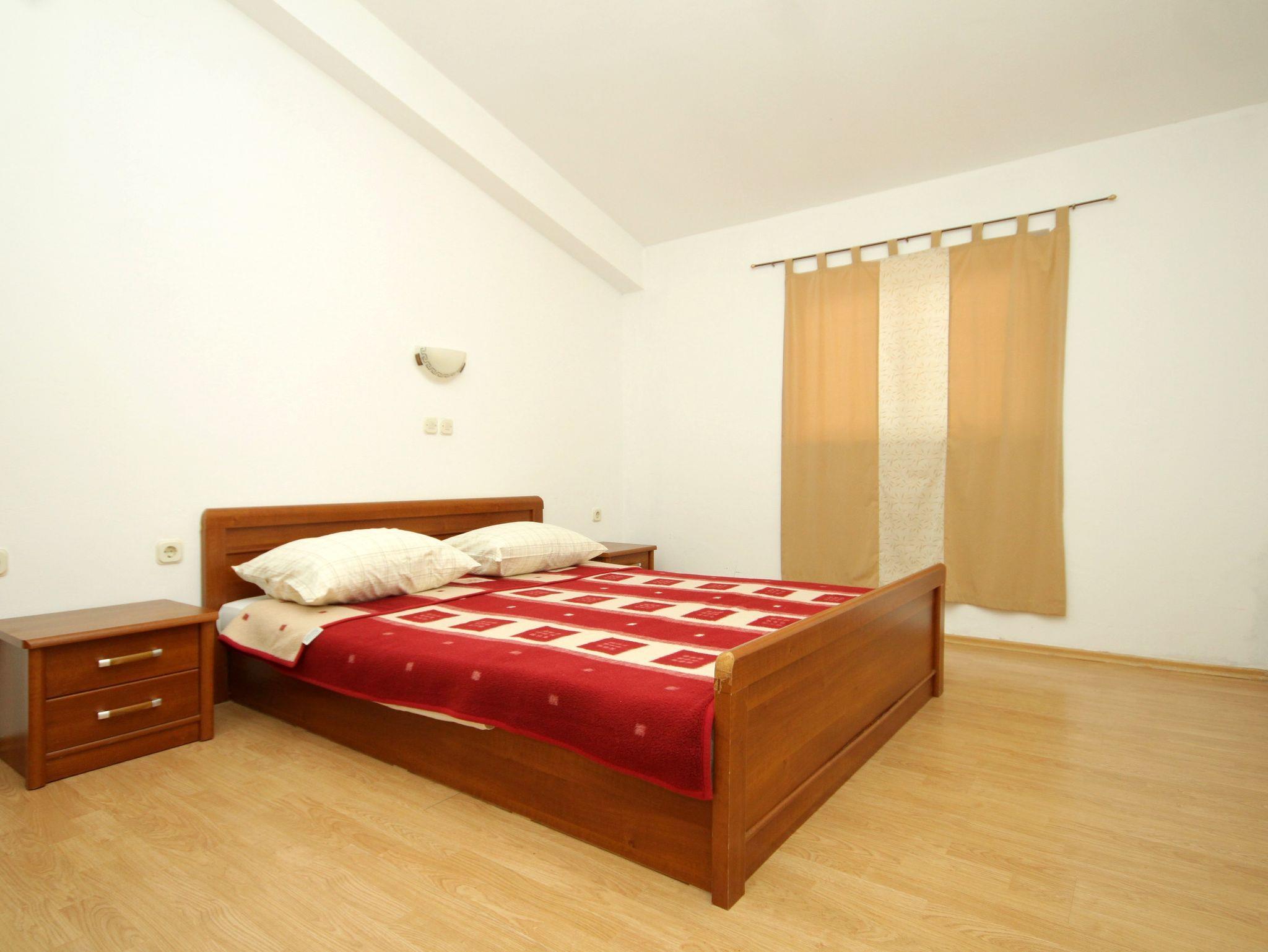 Ferienwohnung bietet Platz für 5 Gäste. Die Betten sind in Schlafzimmern, die es 2 gibt, und in Wohnzimmer, innerhalb einer Gesamtfläche von 55m2, angeordnet. Die Gäste haben eine eigene Terrasse zur Verfügung, auf der sie in warmen Sommernächten genießen können. Das Apartment bietet Meerblick. Es ist erlaubt, Speisen auf dem Gemeinschafts-Grill vorzubereiten. In der Unterkunftseinheit besteht die Möglichkeit des Mitbringens von Haustieren gegen Aufpreis. IM PREIS INBEGRIFFEN: Kurtaxe, Endreinigung, Parkplatz, Bootsanlegeplatz, Kinderbett, Bügeleisen, Bügelbrett. VERBINDLICHE ZUSÄTZLICHE KOSTEN: Aufzahlung für Kurzaufenthalte (prozentualer Zuschlag pro Nächtigungsanzahl: 30% - 1, 20% - 2, 10% - 3). UNVERBINDLICHE ZUSÄTZLICHE KOSTEN: Klimatisierung (5,00 € pro Nacht), Haustiere (5,00 € pro Nacht), Zusatzbett (10,00 € pro Nacht). Die Verfügbarkeit zusätzlicher Dienstleistungen in Ihrem reservierten Termin und die Preise derselben (falls nicht aufgeführt) müssen im Voraus überprüft werden. Zusätzliche Dienstleistungen die in der Zahlungsaufforderung nicht aufgeführt sind werden direkt beim Vermieter bezahlt, angenommen der Gast nutzt auch diese.