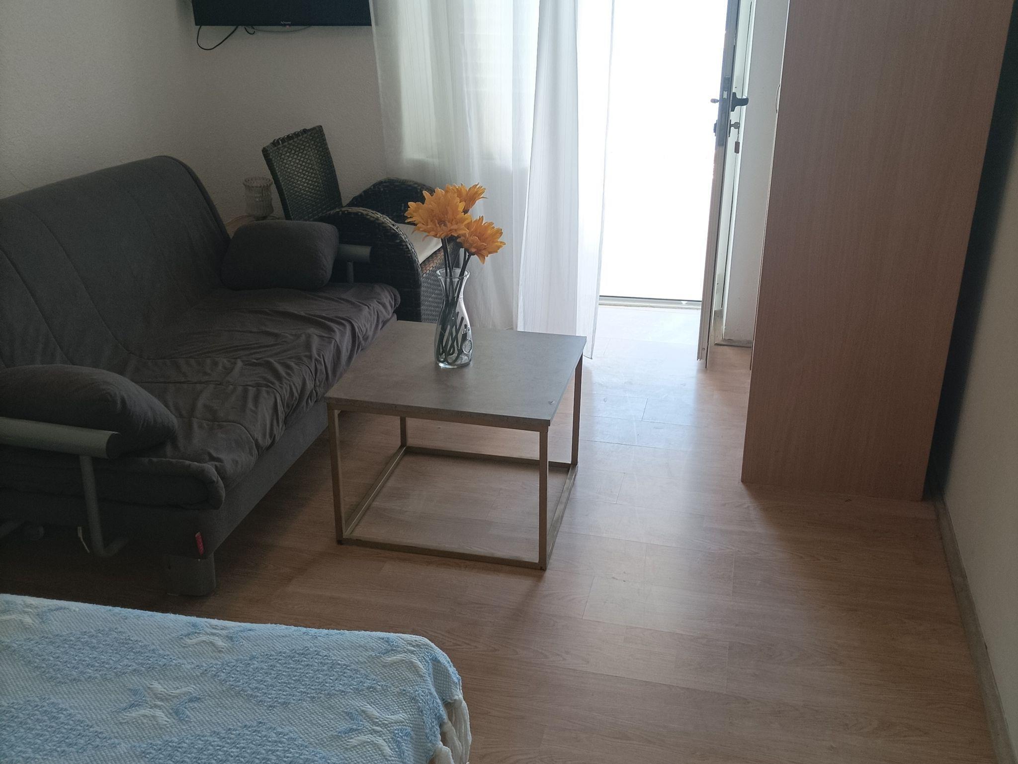 Studio bietet Platz für 2 Gäste. Die Betten sind in Schlafzimmern, die es 1 gibt, innerhalb einer Gesamtfläche von 22m2, angeordnet. Die Gäste haben eine eigene Terrasse zur Verfügung, auf der sie in warmen Sommernächten genießen können. Das Studio-Apartment bietet Meerblick. Es ist erlaubt, Speisen auf dem Gemeinschafts-Grill vorzubereiten. In der Unterkunftseinheit besteht die Möglichkeit des Mitbringens von Haustieren gegen Aufpreis. IM PREIS INBEGRIFFEN: Kurtaxe, Endreinigung, Klimatisierung, Parkplatz, Internet. VERBINDLICHE ZUSÄTZLICHE KOSTEN: Aufzahlung für Kurzaufenthalte (prozentualer Zuschlag pro Nächtigungsanzahl: 30% - 1, 20% - 2, 10% - 3). UNVERBINDLICHE ZUSÄTZLICHE KOSTEN: Wäschewaschen (10,00 € Waschen), Haustiere (5,00 € pro Nacht). Die Verfügbarkeit zusätzlicher Dienstleistungen in Ihrem reservierten Termin und die Preise derselben (falls nicht aufgeführt) müssen im Voraus überprüft werden. Zusätzliche Dienstleistungen die in der Zahlungsaufforderung nicht aufgeführt sind werden direkt beim Vermieter bezahlt, angenommen der Gast nutzt auch diese. Ermäßigung auf den Grundpreis: Gratistag 21=19 (bei einem Aufenthalt von 21 Tagen oder mehr erhalten Sie 2 Gratistage für den Aufenthalt bis 31.12.26).