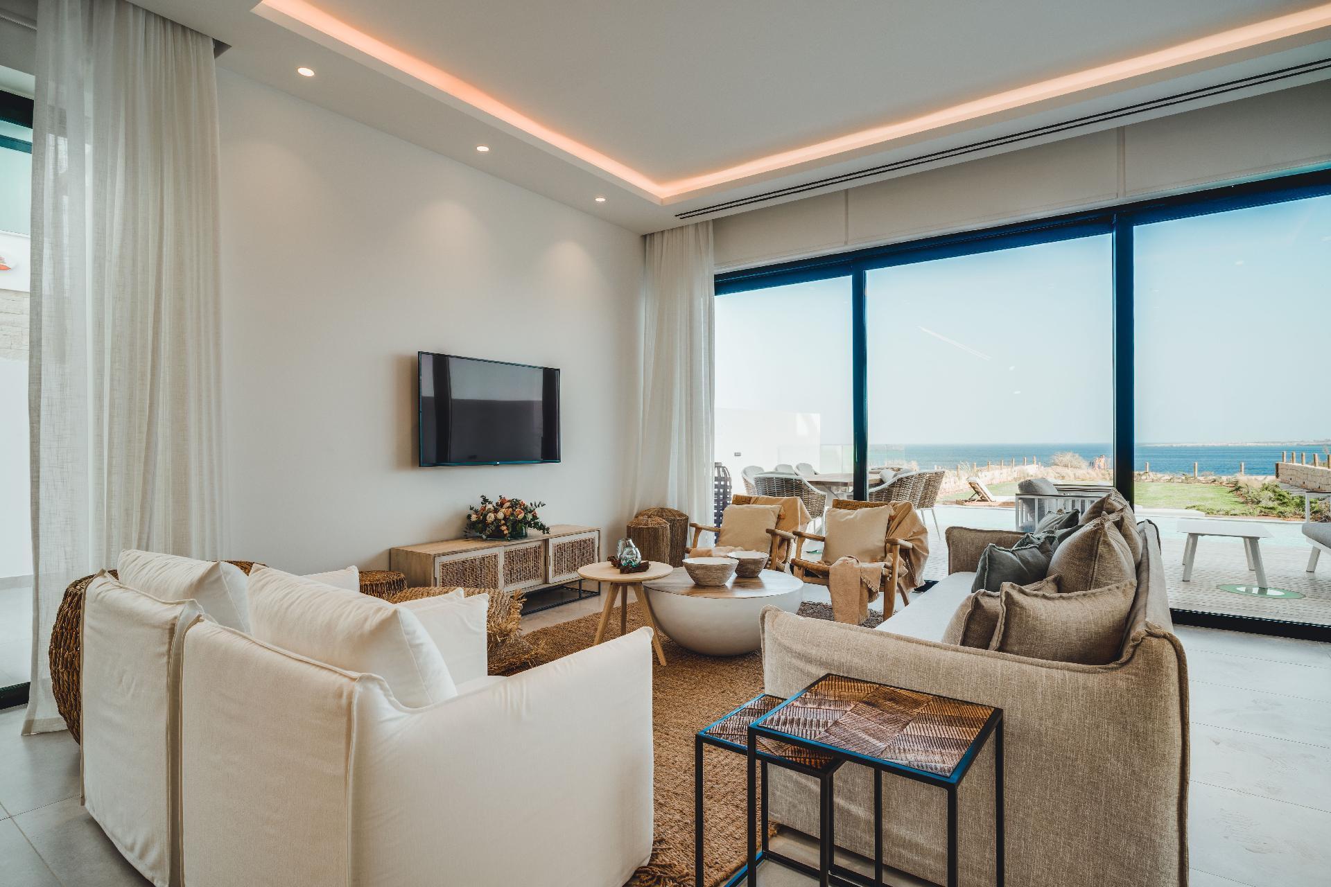 The villa is ensconced in the captivating backdrop of the Periyiali Konnos Beach Resort, nestled within the Cape Greco National Park. Guests can explore Konnos Beach, enjoy the natural splendor of the park, or indulge in the resort's Clubhouse and its 5-star amenities. From a state-of-the-art spa and gym to exceptional dining options, complete with concierge support and a dedicated mobile application for service bookings, the resort enhances the luxury experience.