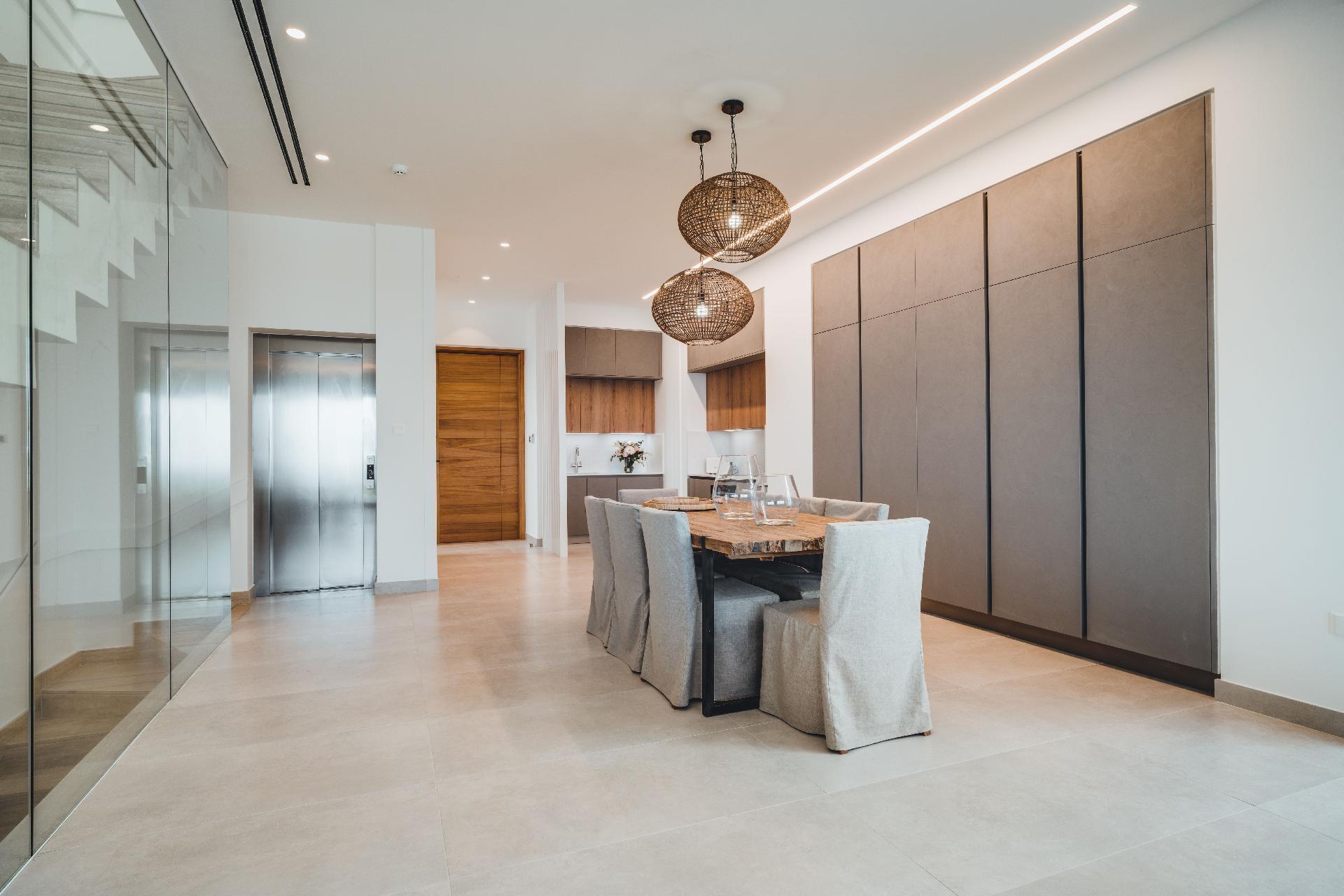 Externally, the villa impresses with a private saltwater pool, a sun terrace, and a rooftop sky garden presenting unmatched coastal horizon views. Moreover, it offers exclusive access to a pristine, tiny, and cozy beach, elevating the outdoor experience and enabling guests to immerse themselves in tranquil beauty. The innovative design features include three storeys connected by an elevator and a private underground garage with VIP tunnel access, showcasing a harmonious blend of architectural creativity and privacy.