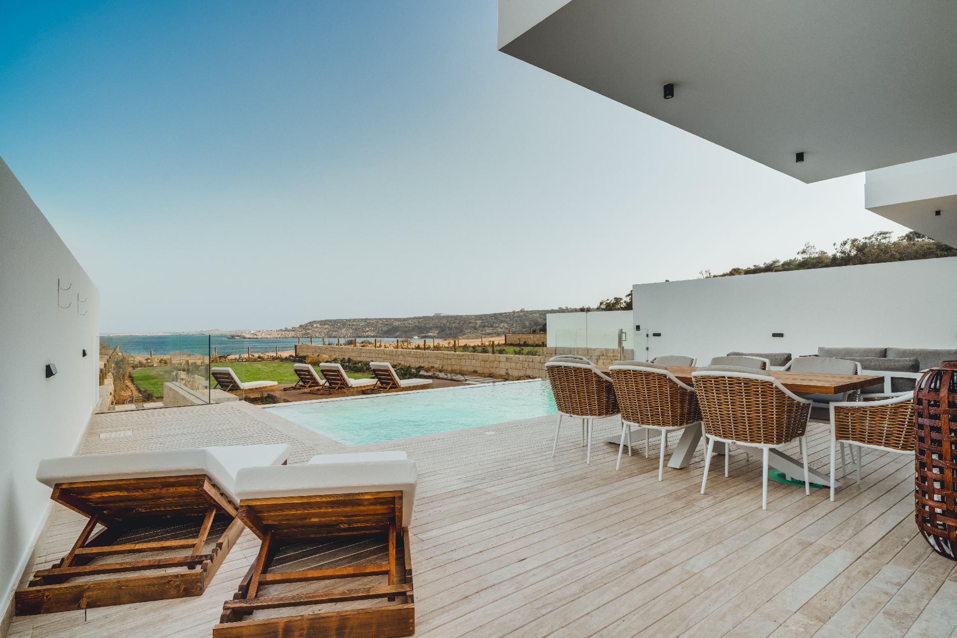 Discover the unparalleled luxury of Front Line Villa Nefeli - 2, ideally perched above the breathtaking Konnos Bay. Set within the prestigious Periyiali Konnos Beach Resort, this 5-bedroom marvel offers panoramic sea views that redefine luxury holiday living. With contemporary furniture, modern interior décor, and cutting-edge technology, this villa stands as the quintessential Mediterranean sanctuary for those seeking an exclusive experience with an opulent touch.