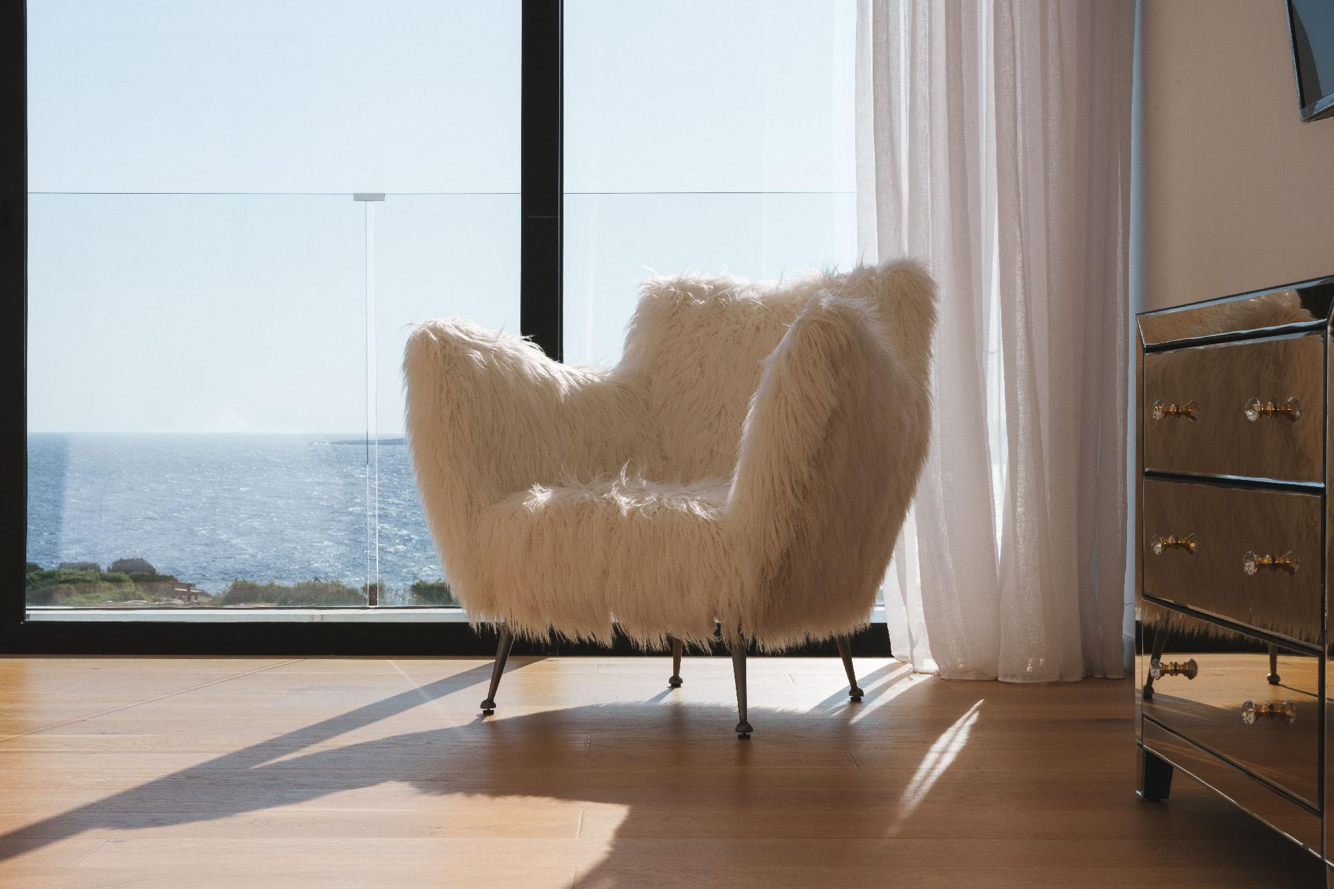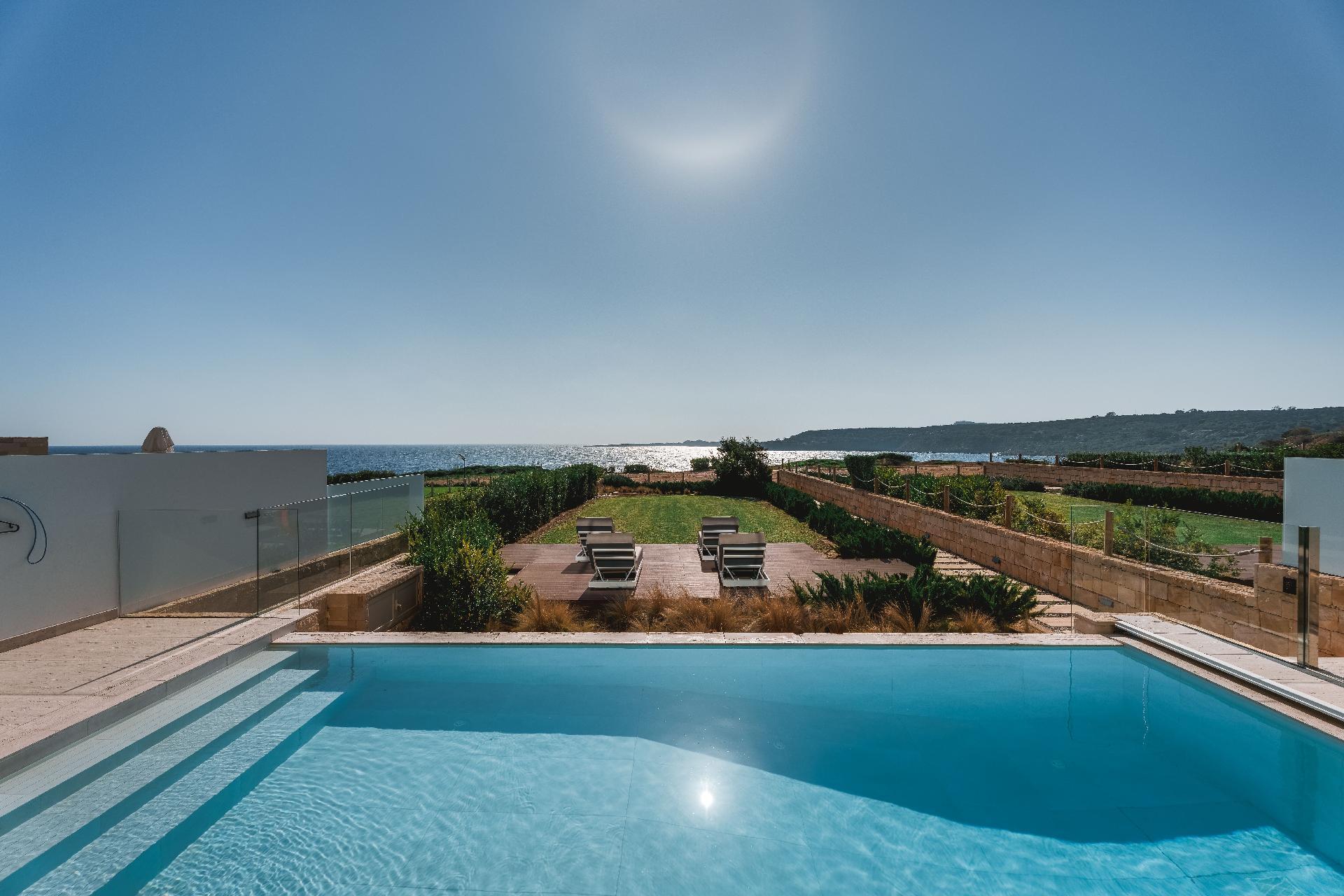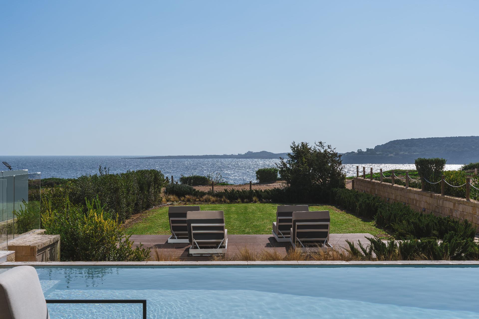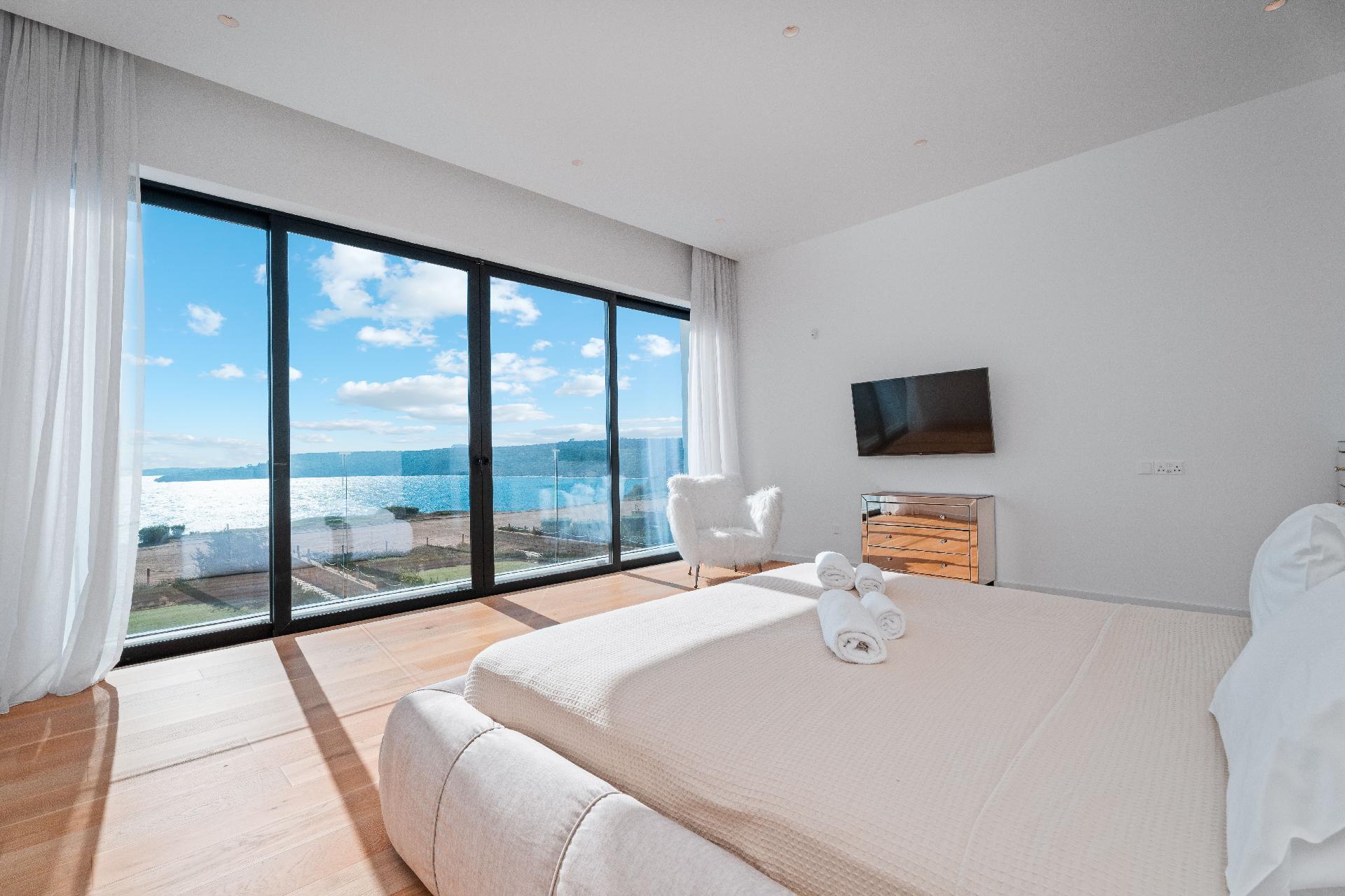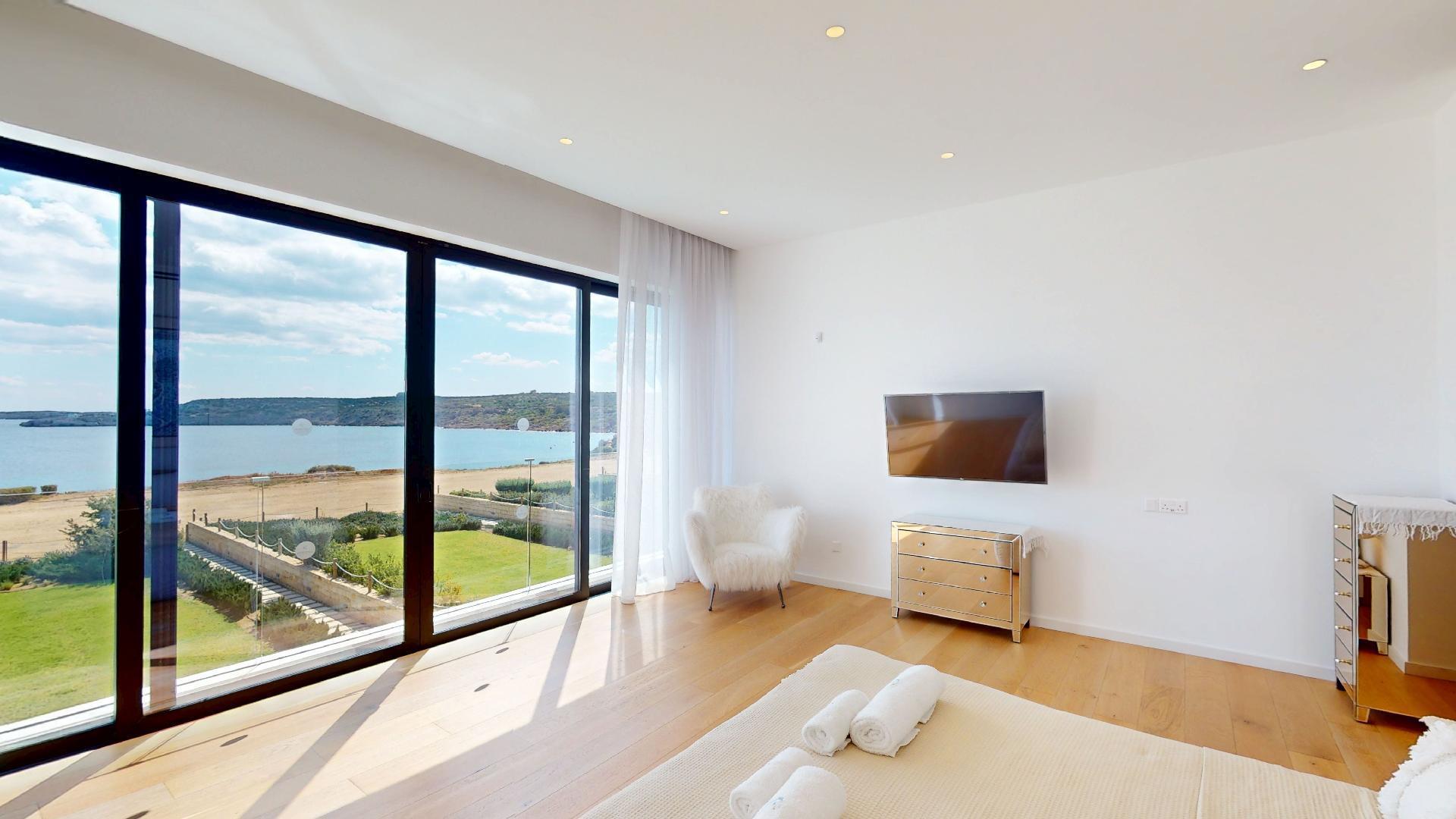 The outdoor area of the villa is nothing short of a private paradise, featuring a saltwater pool and sun terrace that invite you to bask in the sun or take a refreshing dip with a backdrop of the crystal-clear beach waters. The uninterrupted views of Konnos Bay and Cape Greco from this prime front-line location elevate outdoor living to a new level of coastal luxury.