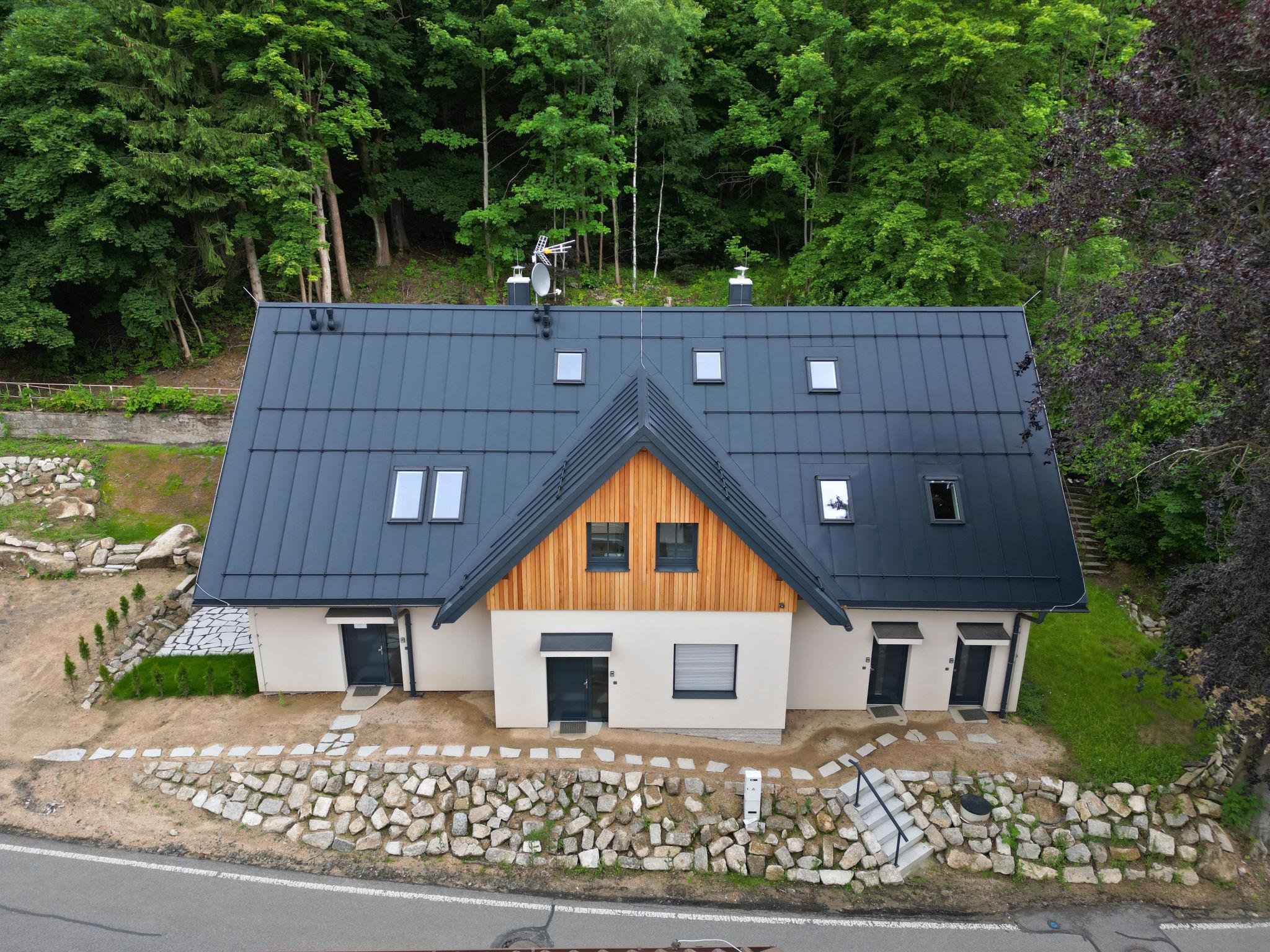 Modern, beautiful chalet, 2 storeys, built in 2024. 4 apartments in the property. 800 m from the skiing area. Private: terrace, garden furniture, barbecue, parking at the house. Shop, grocery 600 m, supermarket 8 km, shopping centre 8 km, restaurant, café 600 m, pub garden 1 km, bus stop "Bedrichov, vodárna" 800 m, railway station "Jablonec nad Nisou" 10 km, grass beach "Jablonec nad Nisou" 8 km, indoor swimming pool 10 km, bathing lake "vodní nádrž Bedrichov" 5 km. Golf course (18 hole) 18 km, tennis 1 km, riding stable 4 km, sports centre 1 km, walking paths from the house 1.5 km, cycle lane 100 m, ski lift, skisport facilities 800 m, slopes 1.5 km, ski rental 1.5 km, ski school 1.5 km, children's ski school 1.5 km, cross country ski track 2 km, children's playground 2 km. Nearby attractions: Discgolf, lanové centrum, bobová dráha 1.9 km, Rozhledna Královka 3 km, Prírodní rezervace Klikvová louka 2 km, Zoo, iQLANDIA, aquacen. Babylon Liberec 10 km, Rozhledna Bramberk 10 km, Jizerka 25 km, Hejnice, Lázne Libverda 35 km. Well-known ski regions can easily be reached: Bedrichov 2km, Severák 2800 m, Josefuv Dul 8 km, Tanvaldský Špicák 13 km, Ješted 20 km, Harrachov 30 km. Hiking paths: Naucná stezka Modré putování, Mravencí, Cerná Nisa, Jizerskohorské buciny (UNESCO) 34 km. Please note: suitable for families, suitable for seniors.
