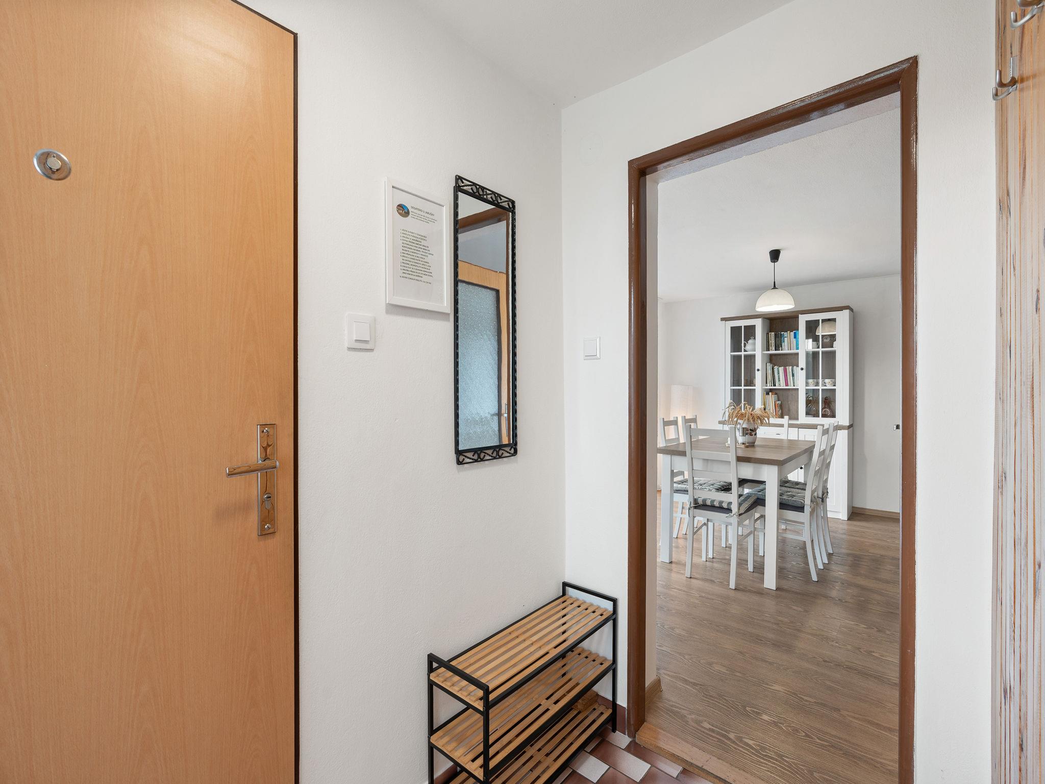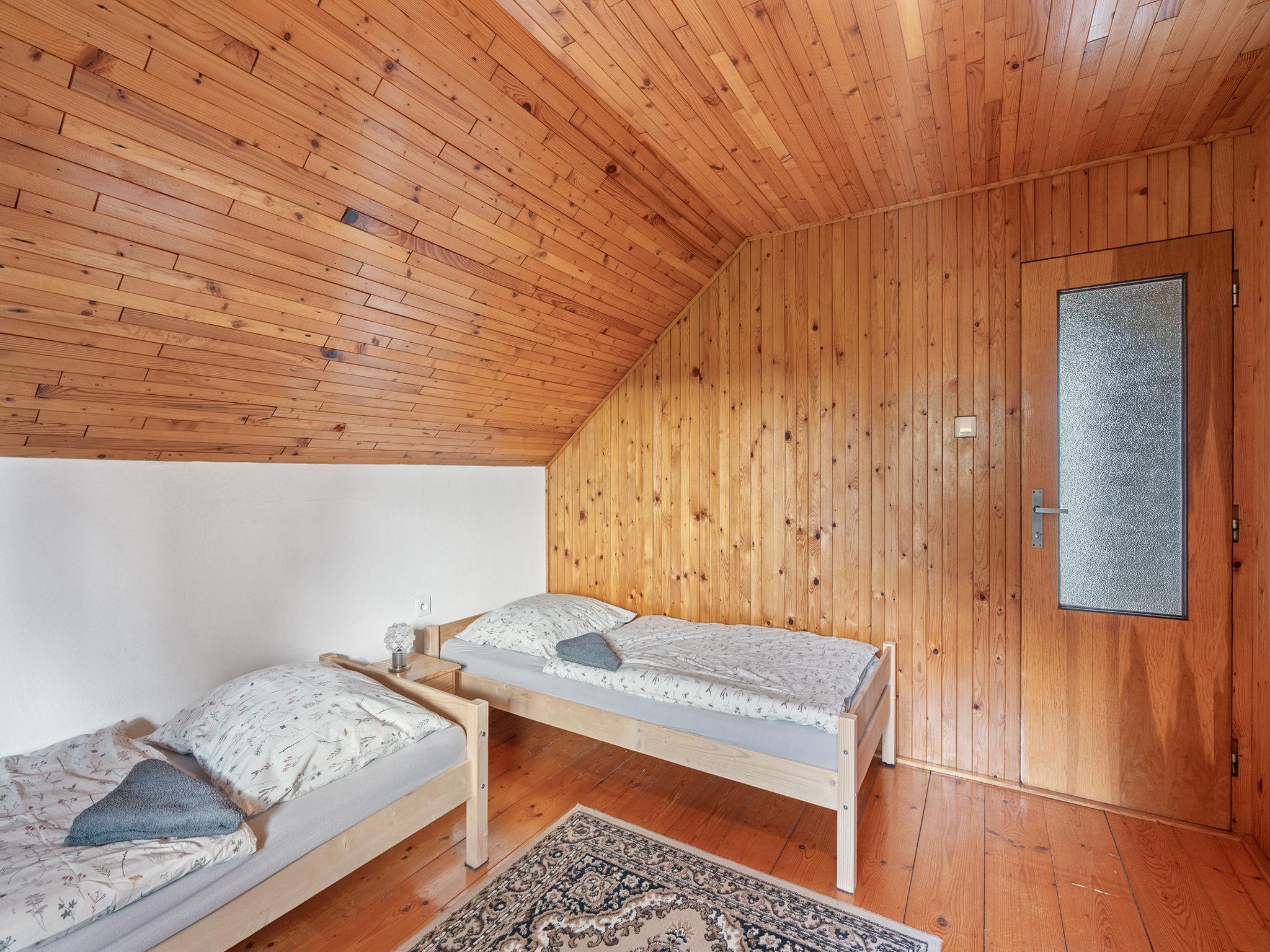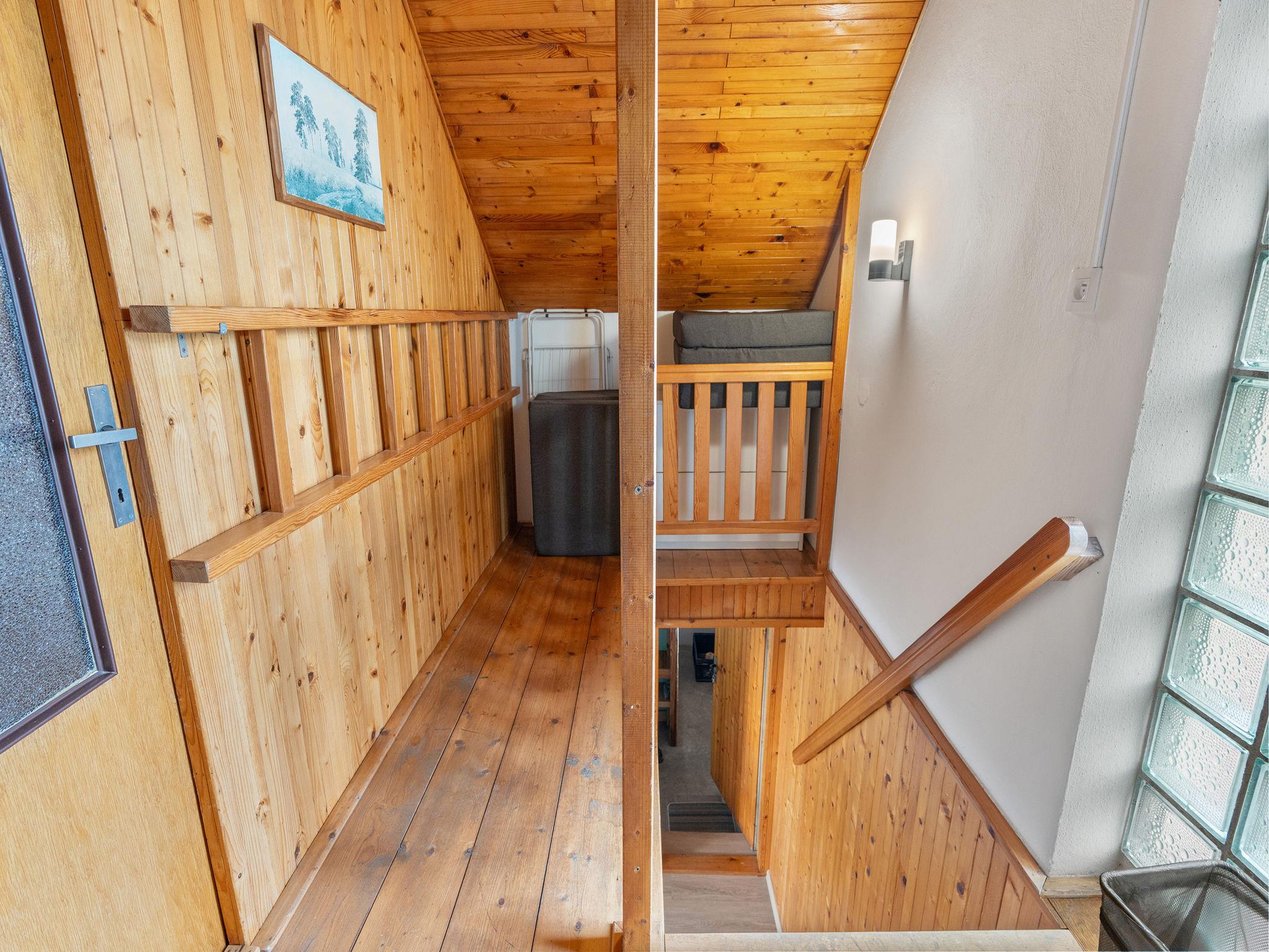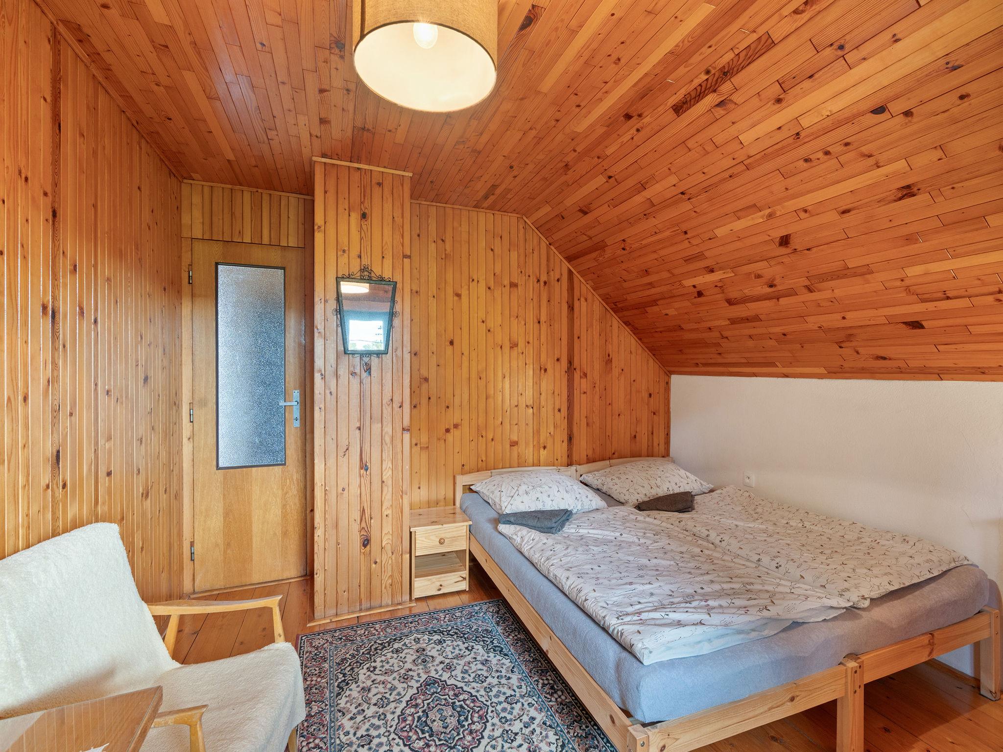 4-room cottage on 2 levels. Living room with Scandinavian wood stove. Open walk-through room with 2 folding beds. Kitchen (4 ceramic glass hob hotplates, toaster, kettle, microwave, freezer) with dining table. Bathroom, sep. WC. Boiler (50 litres). Upper floor: (steep stair), 1 room with 1 double bed. Exit to the balcony. 1 room with 2 beds. Exit to the balcony. 1 room with 1 double bed (120 cm). Electric heating, wood heating. Balcony. Terrace furniture, barbecue. Facilities: washing machine, hair dryer. Internet (WiFi, free). Please note: suitable for families. Non-smoking house. Maximum 3 pets/ dogs allowed. Two folding mattresses can be moved to other room.