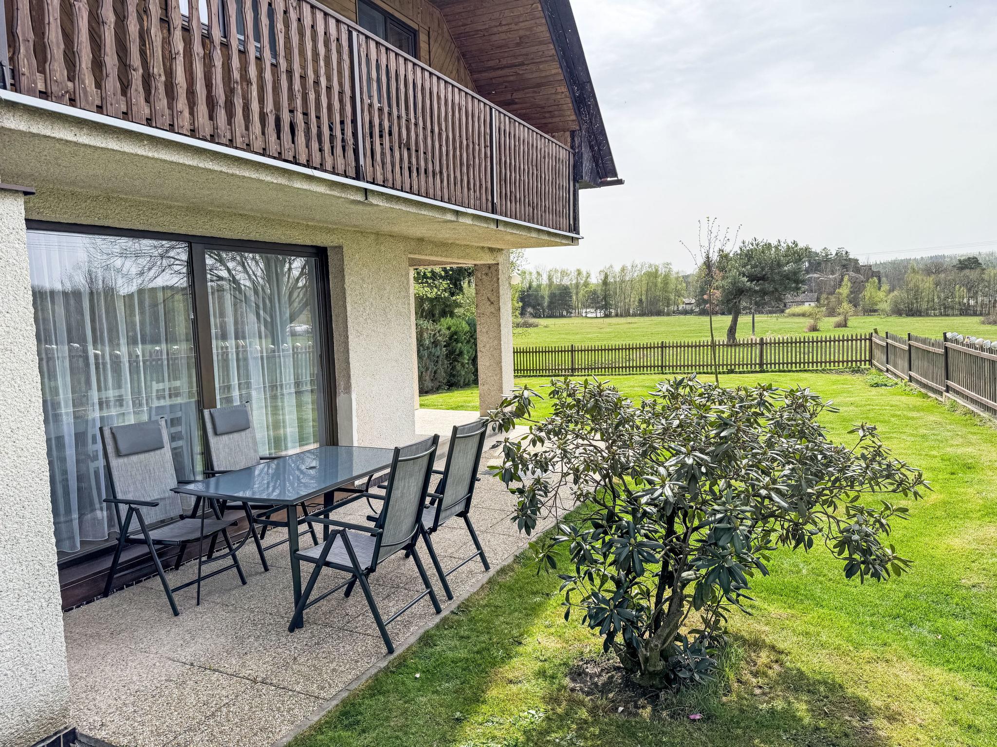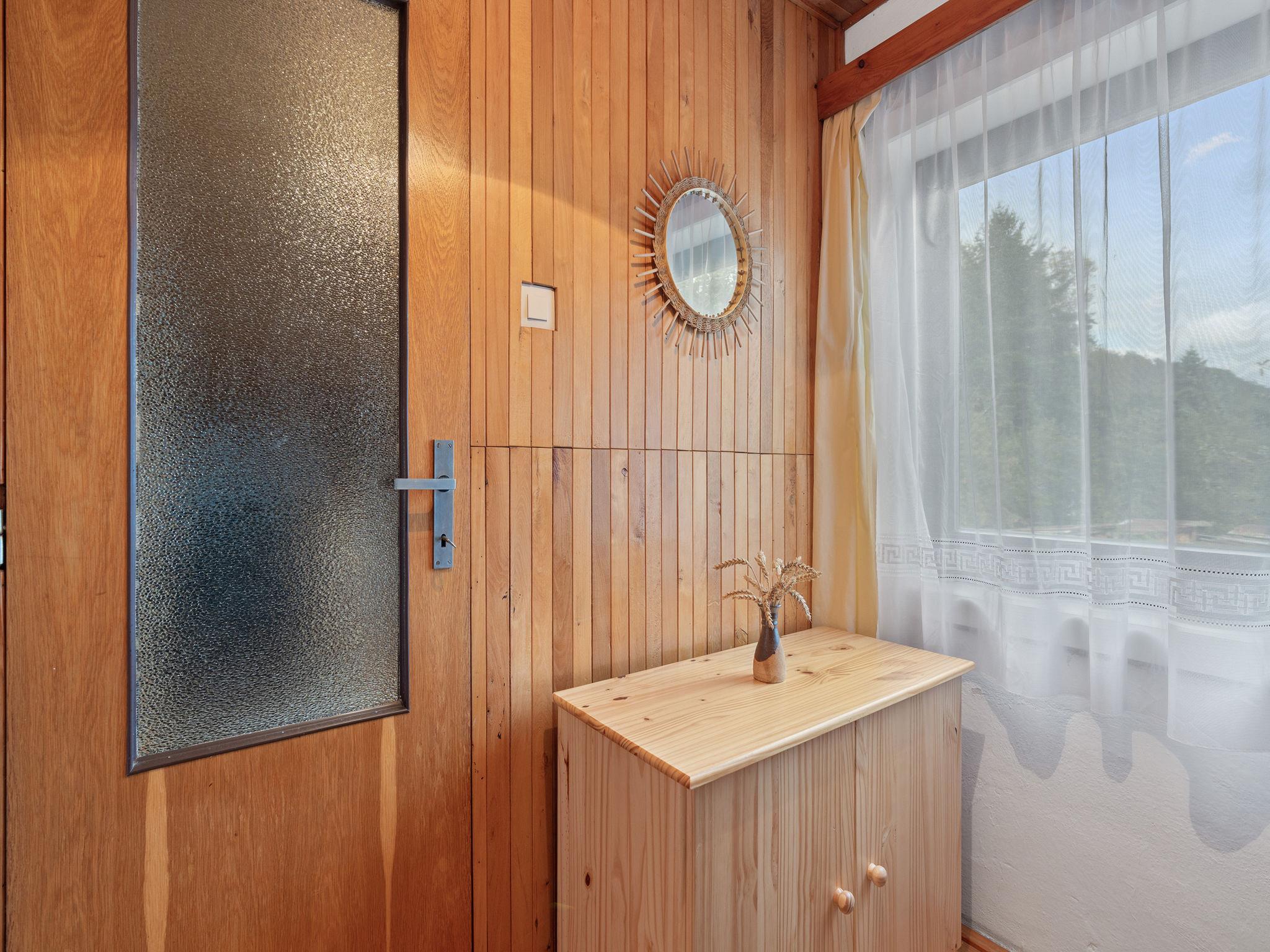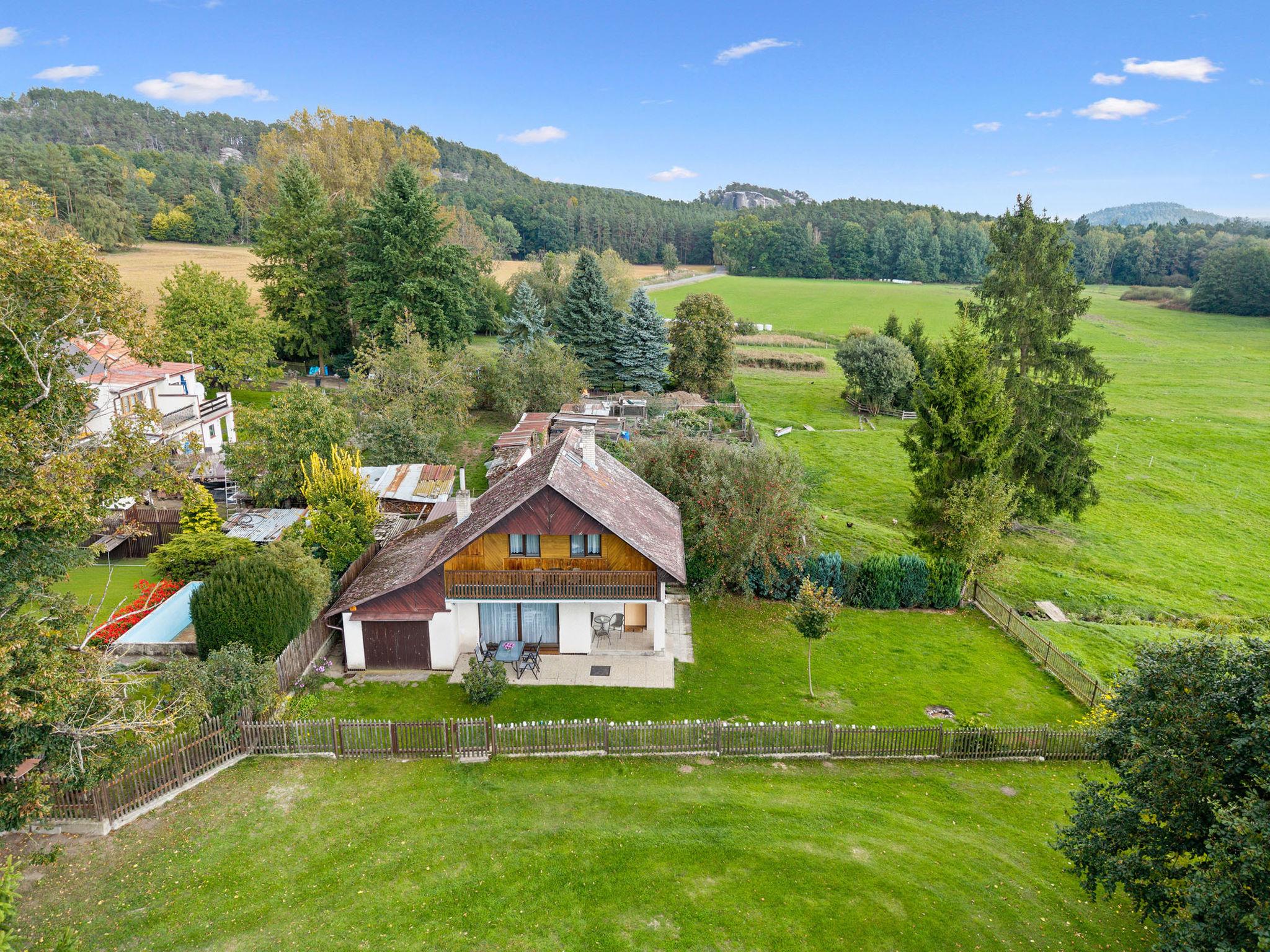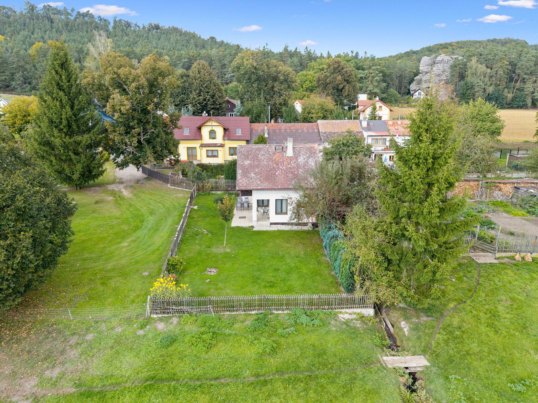 In a picturesque corner of the Bohemian Paradise protected area, with a location 400 m from the Komárov pond and the Príhrazské skály nature reserve. Cosy cottage "Jaruška", 2 storeys, detached, surrounded by meadows. In the resort Zakopaná, 2 km from the centre of Branžež, in a quiet, sunny position, 200 m from the edge of the forest, 400 m from the lake, in the countryside. Private: property 270 m2 (fenced). Garden furniture, barbecue, fireplace. In the house: storage room for bicycles. Parking (for 5 cars) at the house. Shop 5 km, shopping centre 10 km, restaurant 400 m, bus stop "Zakopaná" 30 m, railway station "Brezina" 6.5 km, outdoor swimming pool 5 km, public bathing area 400 m. Nearby attractions: Drábské svetnicky 4 km, Hrad Kost 5 km, Valecov, Zámek Humprecht 10 km, Hrad Trosky, Valdštejn, Zámek Sychrov H 20 km, Hrubá Skála, Skalní mesto 20 km, Prachovské skály 20 km, Malá Skála - Pantheon 25 km. Well-known lakes can easily be reached: Komárovský rybník 400 m. Also only 400 m from the main tourist route "Golden Path of Bohemian Paradise.".
