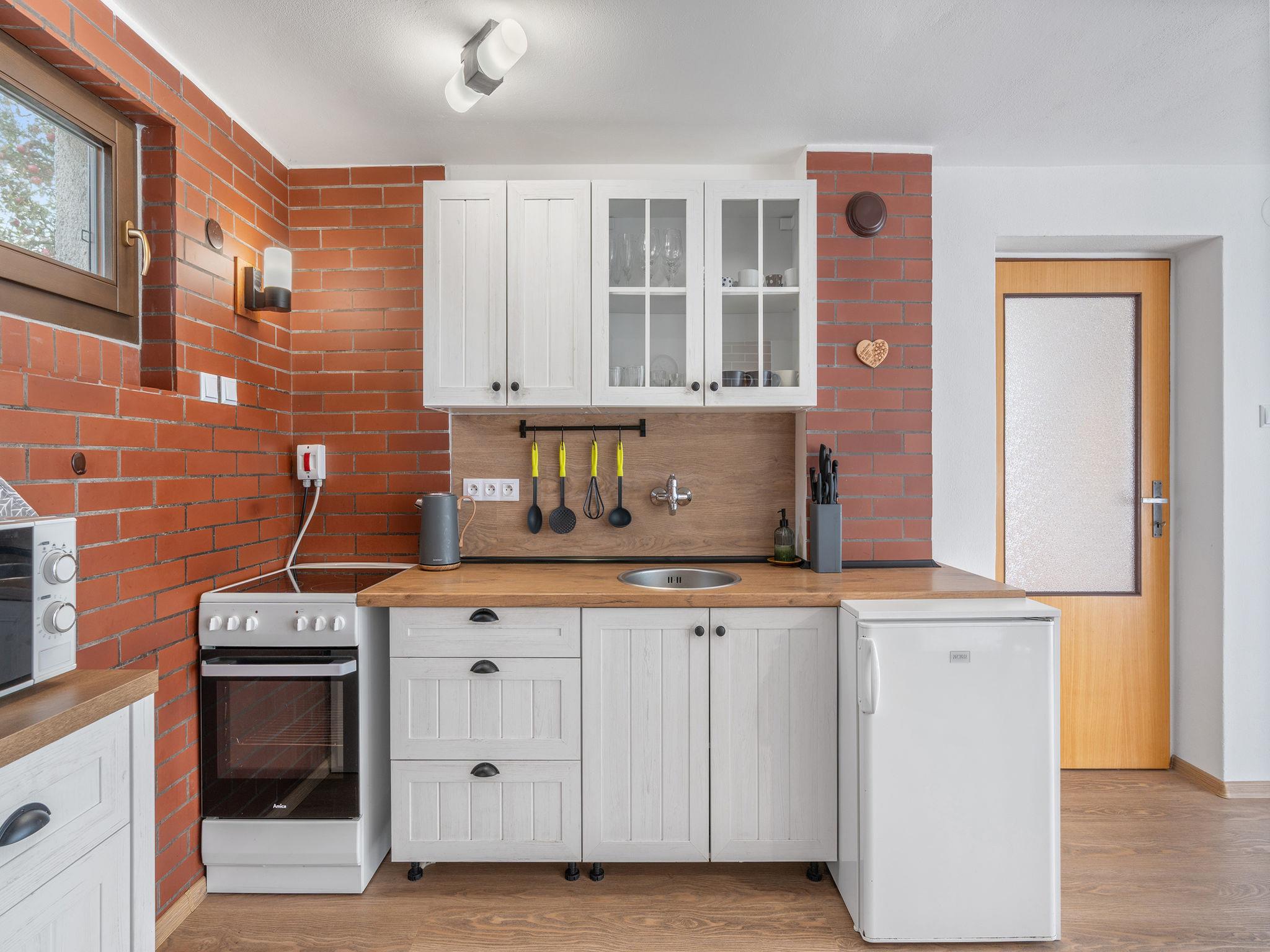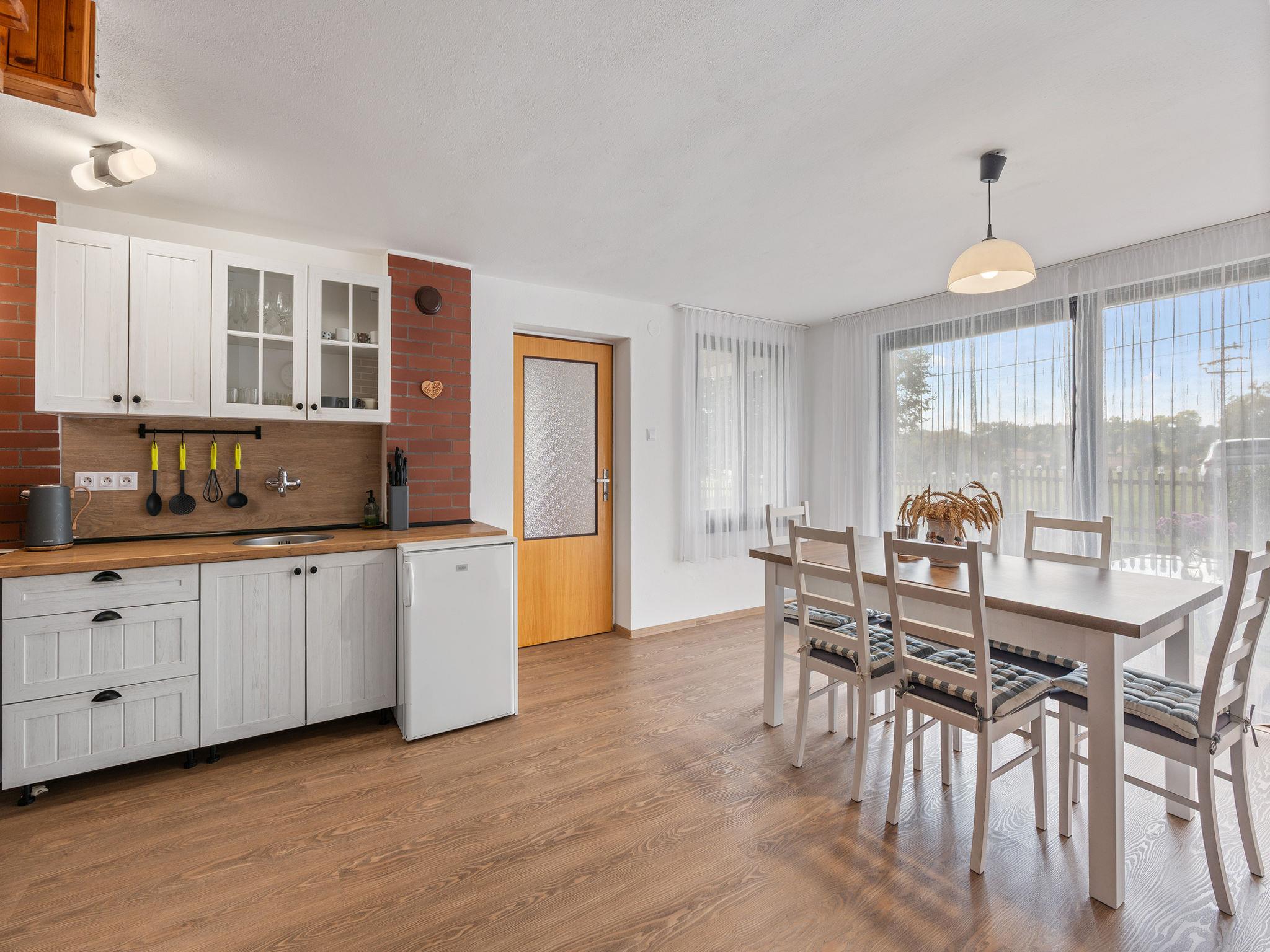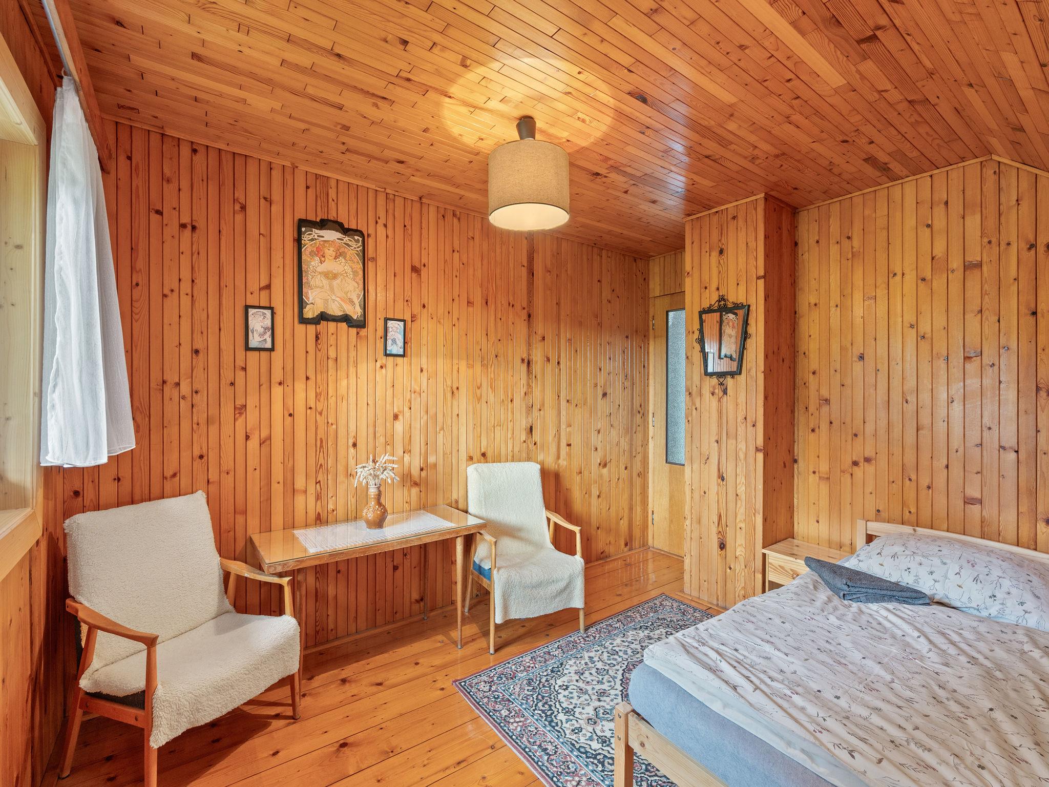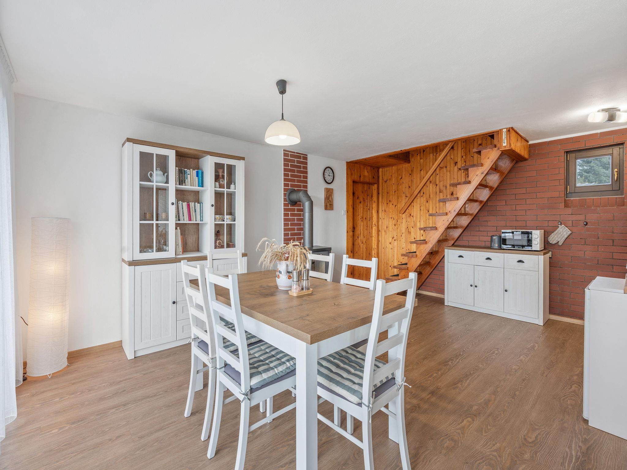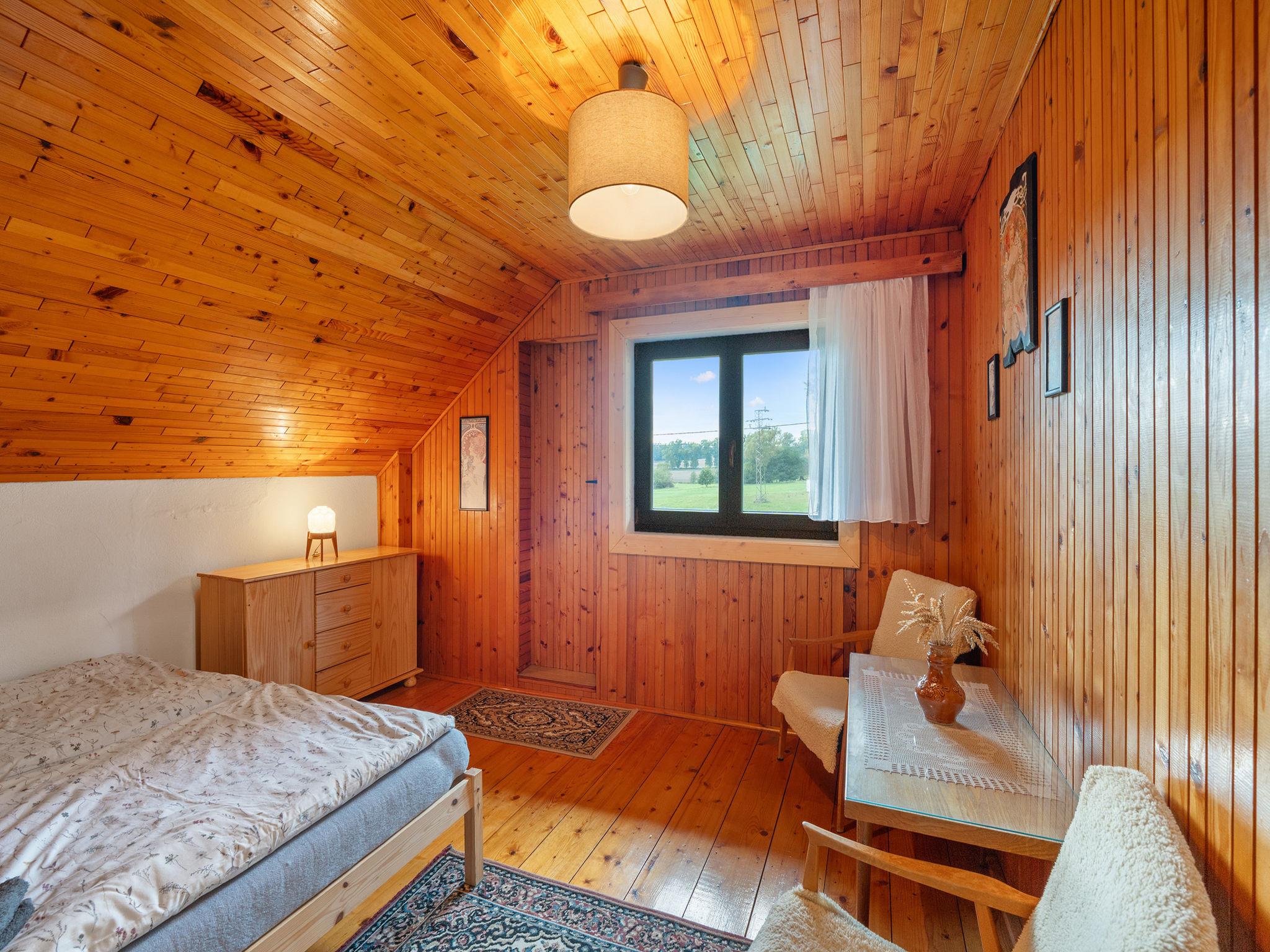 In a picturesque corner of the Bohemian Paradise protected area, with a location 400 m from the Komárov pond and the Príhrazské skály nature reserve. Cosy cottage "Jaruška", 2 storeys, detached, surrounded by meadows. In the resort Zakopaná, 2 km from the centre of Branžež, in a quiet, sunny position, 200 m from the edge of the forest, 400 m from the lake, in the countryside. Private: property 270 m2 (fenced). Garden furniture, barbecue, fireplace. In the house: storage room for bicycles. Parking (for 5 cars) at the house. Shop 5 km, shopping centre 10 km, restaurant 400 m, bus stop "Zakopaná" 30 m, railway station "Brezina" 6.5 km, outdoor swimming pool 5 km, public bathing area 400 m. Nearby attractions: Drábské svetnicky 4 km, Hrad Kost 5 km, Valecov, Zámek Humprecht 10 km, Hrad Trosky, Valdštejn, Zámek Sychrov H 20 km, Hrubá Skála, Skalní mesto 20 km, Prachovské skály 20 km, Malá Skála - Pantheon 25 km. Well-known lakes can easily be reached: Komárovský rybník 400 m. Also only 400 m from the main tourist route "Golden Path of Bohemian Paradise.".