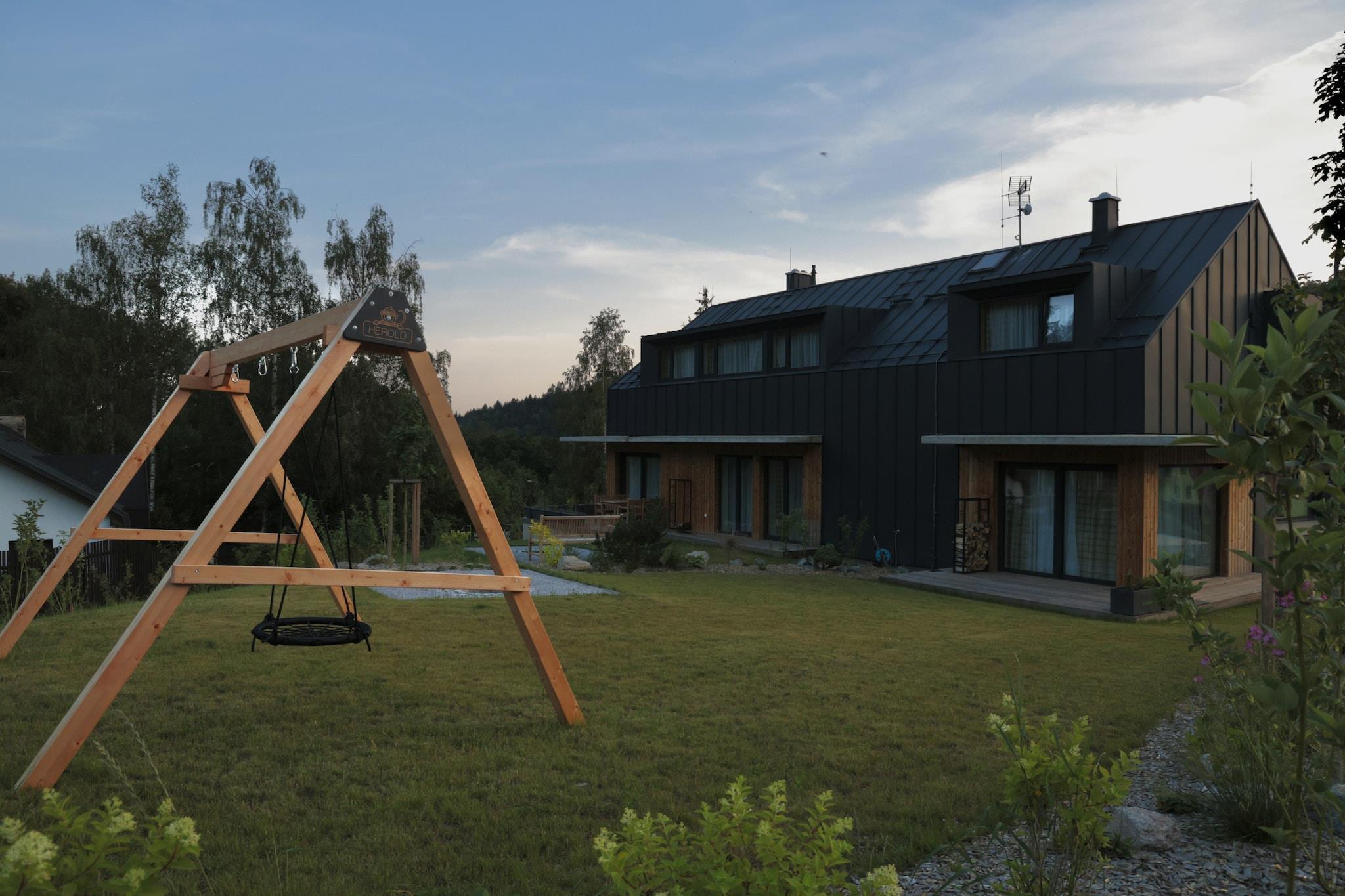Nestled in the peaceful landscape of Cerny Dul, this luxurious apartment for six offers the perfect blend of comfort and nature, making it an unforgettable retreat in the heart of the Giant Mountains. Whether you're planning a quick weekend getaway or an extended stay, this apartment is ideal for families, groups of friends, or couples seeking both adventure and relaxation. The apartment itself is designed for convenience and relaxation, with a cozy living room featuring a fireplace, a fully-equipped kitchen, and two comfortable bedrooms—one with a double bed and one with two single beds. With easy access to SkiResort Cerná Hora, skiers and snowboarders will find 7.9 km of pristine slopes right at their doorstep. In the summer, enjoy breathtaking hiking and biking trails, making this apartment the perfect year-round destination for nature lovers and adventure seekers alike. Part of a recently built complex, this spacious apartment is located in one of two beautiful buildings, each offering its own unique charm. The complex features a total of six modern apartments, four of which can accommodate six people, with the option to rent an entire building for larger groups. Each apartment has been designed to complement the stunning surroundings, creating a harmonious and welcoming atmosphere.