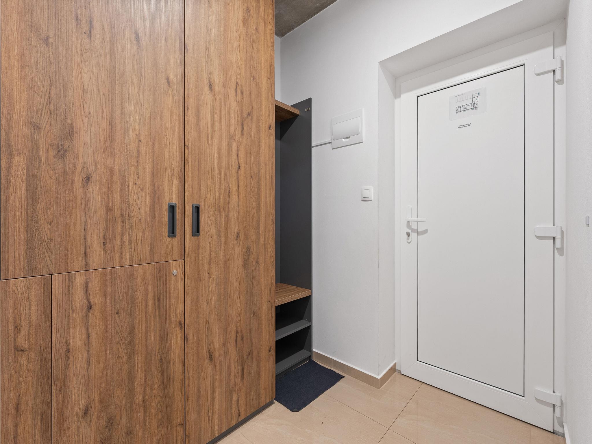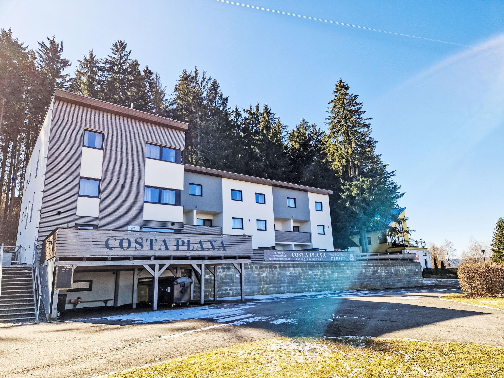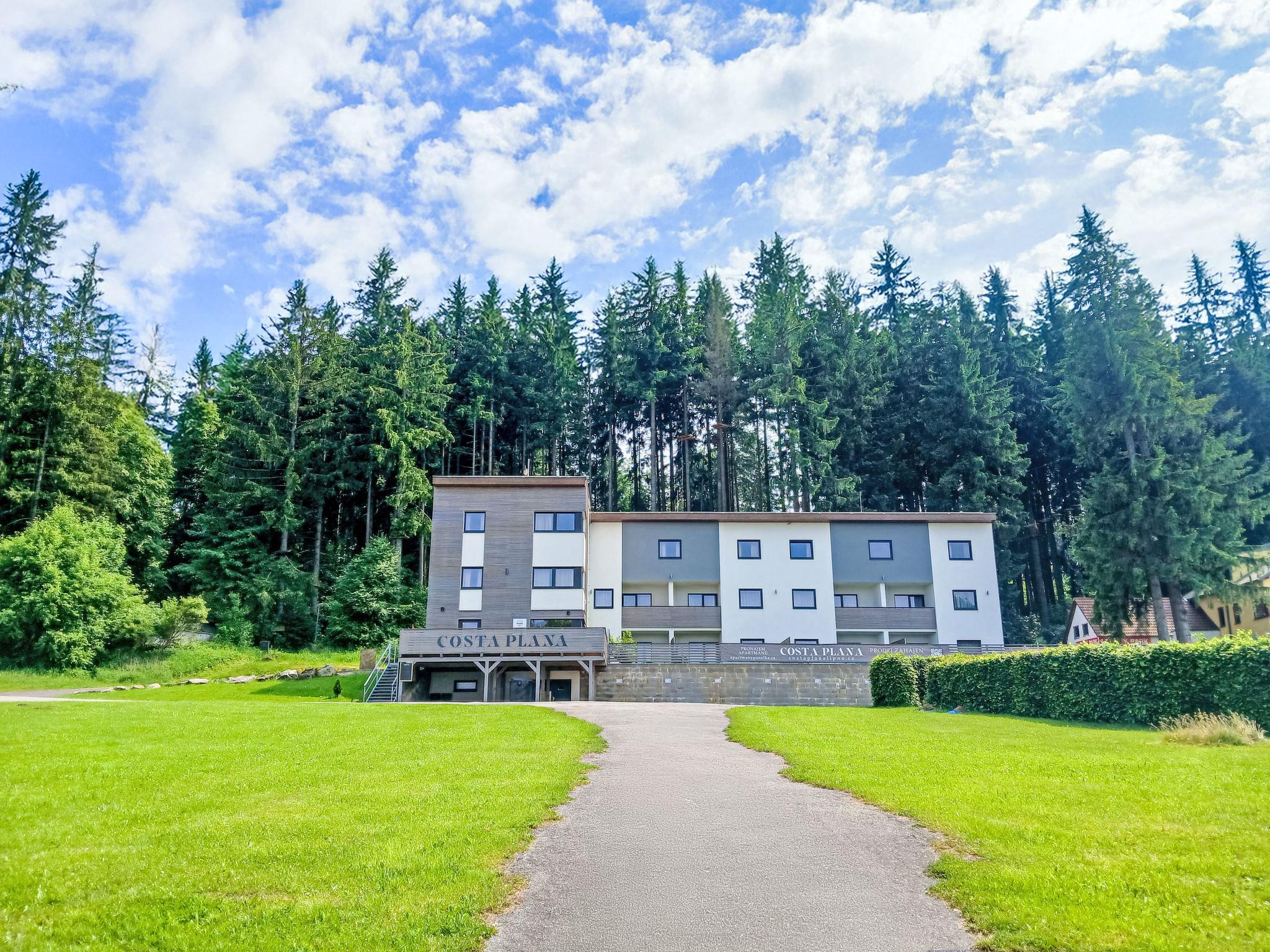 Cerná v Pošumaví 20 km from Ceský Krumlov: Modern apartment block "Costa Plana", 3 storeys, detached, built in 2020. In a sunny position, 10 m from the edge of the forest, 100 m from the lake. Private: small garden 31 m2 (fenced). Terrace (6 m2). In the house: bistro, central heating system. Parking at the house. Grocery 1 km, restaurant, pub garden 300 m, bus stop "Cerná v Pošumaví" 500 m, railway station "Cerná v Pošumaví" 1.5 km, sandy beach "Lipno" 100 m, indoor swimming pool 11 km, bathing lake "Lipno" 100 m. Golf course (18 hole) 27 km, minigolf 150 m, walking paths from the house 10 m, cycle lane 50 m, cable car 19 km, ski school 19 km, cross country ski track 2 km, children's playground 100 m. Nearby attractions: Adventure Park - paintball, lanový park 50 m, Aquapark Frymburk 11 km, Aquaworld Lipno, Bikepark, Marina, Stezka korunami stromu, Lesní hrište Království lesa (Lipno) 19 km, Ceský Krumlov (UNESCO) 22 km, Klášter Zlatá koruna 27 km, Rožmberk 29 km. Well-known ski regions can easily be reached: Frymburk 11 km, Lipno nad Vltavou 19 km, Sternstein 42 km, Hochficht 44 km, Mitterdorf 52 km. Well-known lakes can easily be reached: Lipenské jezero 100 m. Hiking paths: CHKO Šumava, Svatojakubská cesta. Please note: suitable for families.