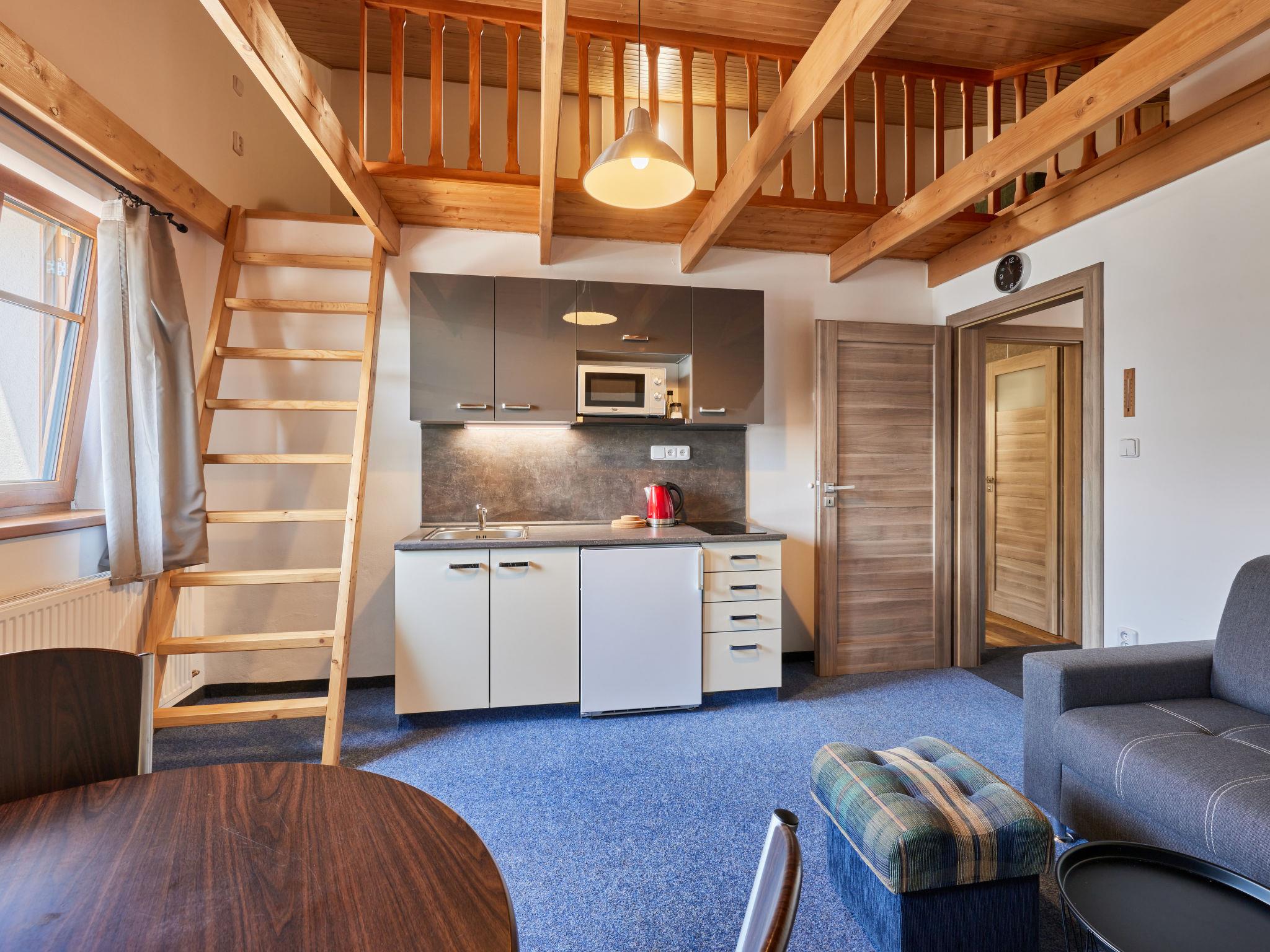 Cosy house "Marika", detached. Property composed of main house and outbuilding, in the centre of Cerný Dul, 300 m from the skiing area. For shared use: property. In the house: sauna, hot tub (all extra), central heating system, washing machine. Parking at the house. Grocery 50 m, shopping centre 8 km, restaurant 200 m, bus stop 200 m, railway station "Vrchlabí" 10 km, indoor swimming pool 6 km. Golf course (18 hole) 12 km, tennis 5 km, walking paths from the house 10 m, cycle lane 10 m, ski lift, chair lift, slopes, ski rental 300 m, ski school, children's ski school 300 m. Nearby attractions: Aquacentrum Janské Lázne 6 km, Vrchlabí 13 km, Aquapark Trutnov 28 km, Zoo Safari Dvur Králové 32 km, Bozkovské jeskyne 40 km, Adršpašské skály 47 km. Well-known ski regions can easily be reached: Cerný Dul (SkiResort Cerná hora-Pec) 300 m, Janské Lázne 5 km, Herlíkovice, Pec pod Snežkou 20 km. Well-known lakes can easily be reached: Cistá 3.5 km, Vrchlabí 12 km. Hiking paths: Snežka 28 km.