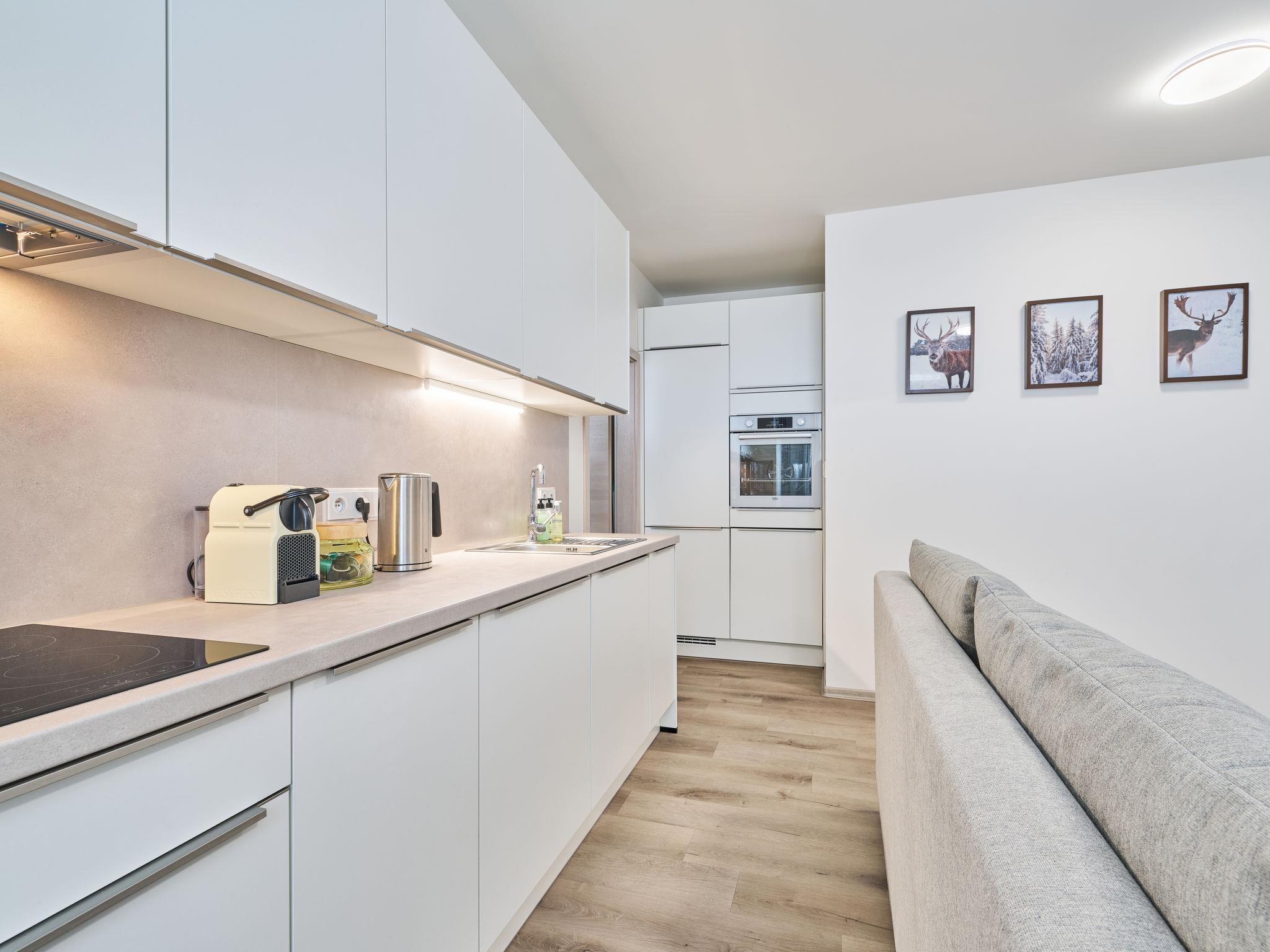 Modern, comfortable apartment block "Cerný Dul", detached. In the centre of Cerný Dul, 900 m from the skiing area. In the house: lift, storage room for skis, central heating system. Parking at the house. Grocery 600 m, bus stop "Cerný dul, námestí" 640 m, indoor swimming pool 25 km. Golf course (18 hole) 12 km, tennis 5 km, walking paths from the house 10 m, cycle lane, ski lift 900 m, chair lift, slopes, ski rental 900 m, ski school, children's ski school, ski-kindergarten. Nearby attractions: Janské Lázne Spa 6 km, Vrchlabí 13 km, Aquapark Trutnov 28 km, Zoo Safari Dvur Králové 32 km, Bozkovské jeskyne 40 km, Adršpašské skály 47 km. Well-known ski regions can easily be reached: Cerný Dul 900 m, Janské Lázne 5 km, Herlíkovice, Pec pod Snežkou. Well-known lakes can easily be reached: Cistá 3.5 km, Vrchlabí 12 km. Hiking paths: Snežka 28 km.