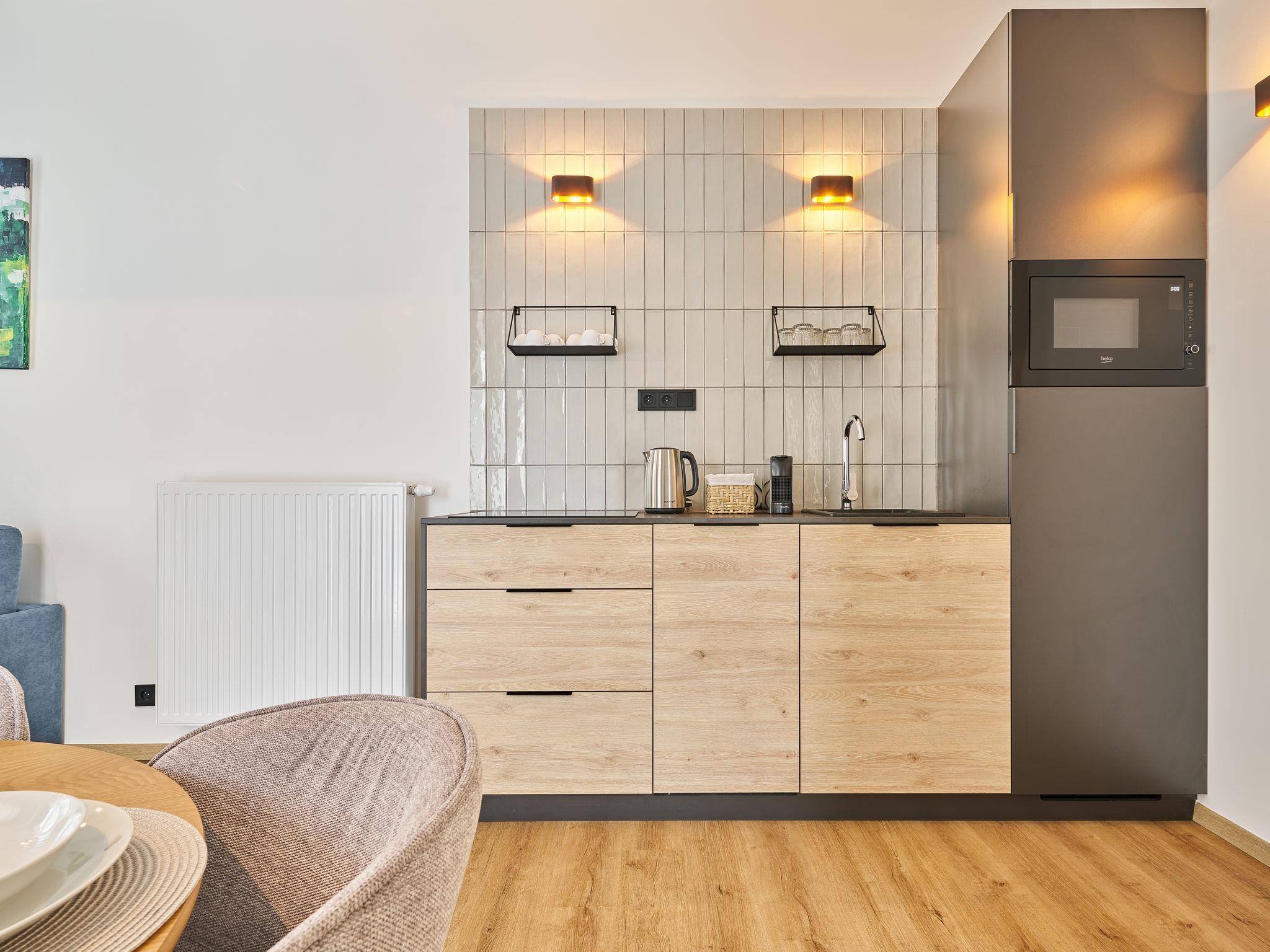 "Luxury Home with large terrace & Netflix", 2-room apartment on the ground floor. Very beautiful and stylish furnishings: living/dining room with 1 double sofabed, dining table and TV. 1 room with 1 double bed. Kitchenette (dishwasher, 4 ceramic glass hob hotplates, toaster, kettle, microwave, freezer, electric coffee machine). Shower/WC. Large terrace 35 m2. Terrace furniture, box-room. Facilities: safe, iron, children's high chair, baby cot, hair dryer. Internet (WiFi, free). Parking at the house. Suitable for families.