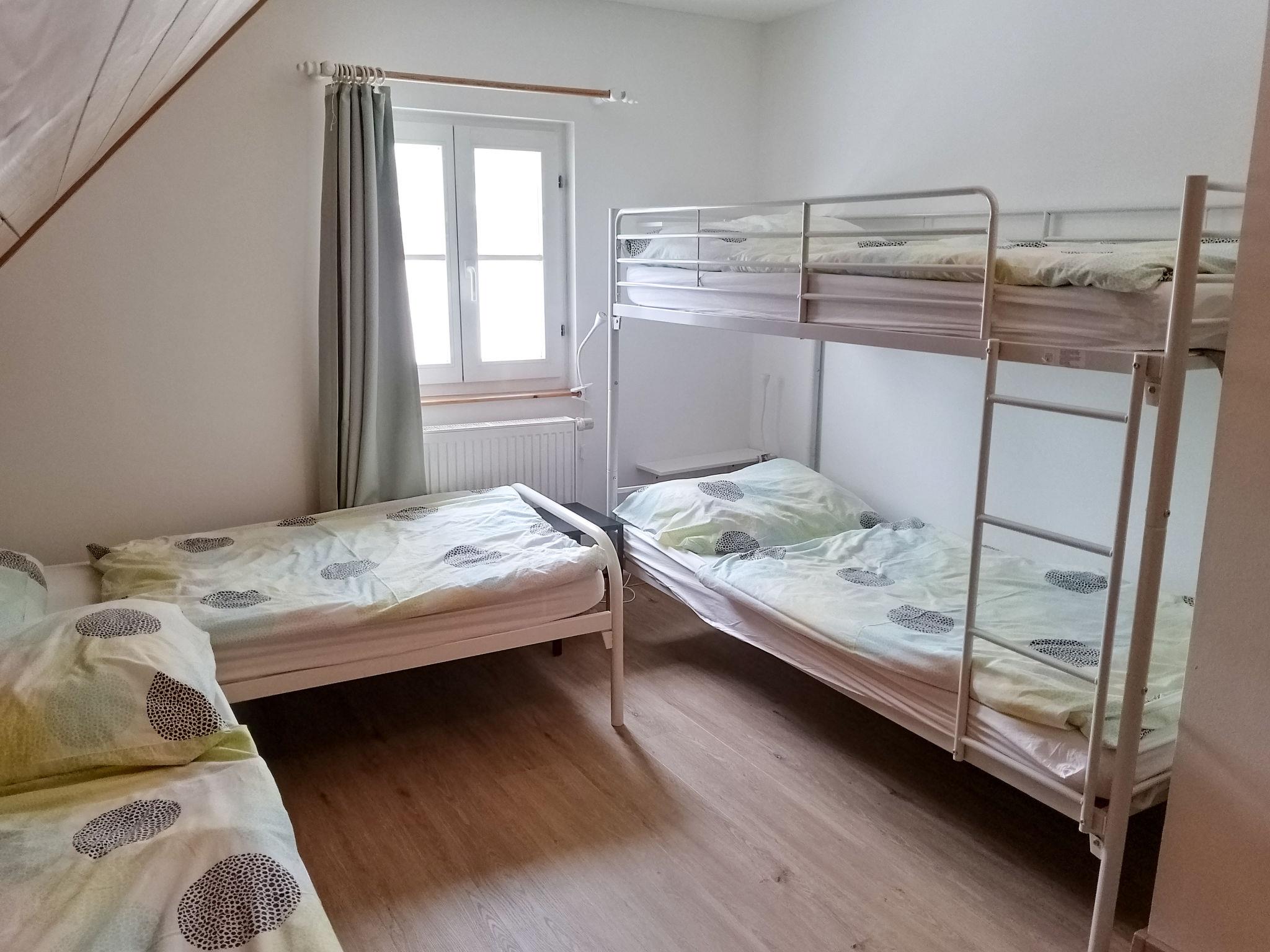 4-room cottage 100 m2 on 2 levels. Bright, comfortable and cosy furnishings: open living room with satellite TV. Exit to the terrace. Kitchen (oven, dishwasher, 4 ceramic glass hob hotplates, toaster, kettle, microwave, freezer, electric coffee machine) with dining table. Sep. WC. Upper floor: 2 rooms, each room with 1 double bed. 1 room with 2 beds and 1 x 2 bunk beds. Bath/WC. Large terrace 17 m2. Terrace furniture, barbecue (portable). Facilities: washing machine, dryer, baby cot (extra), hair dryer. Internet (WiFi, free). Please note: suitable for families. Non-smoking house. Maximum 2 pets/ dogs allowed.