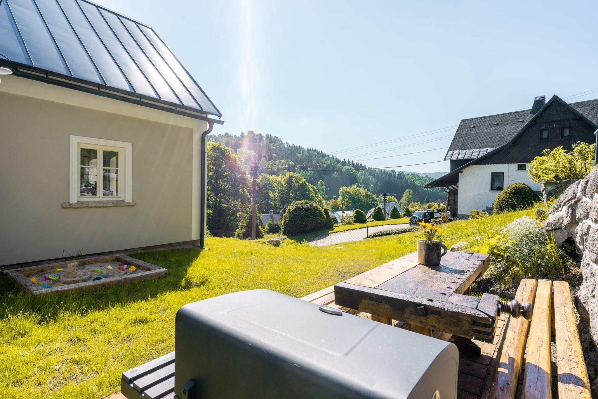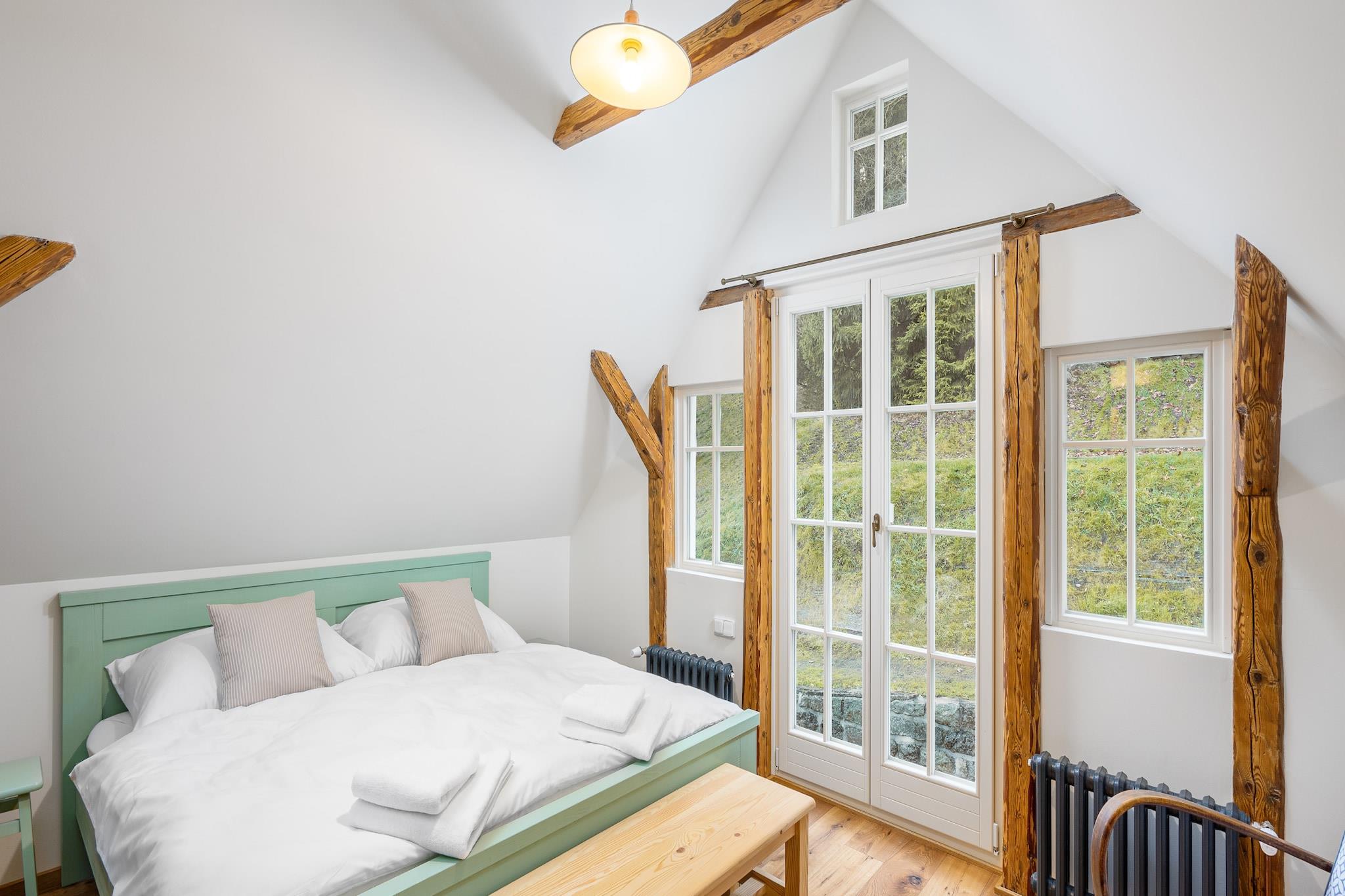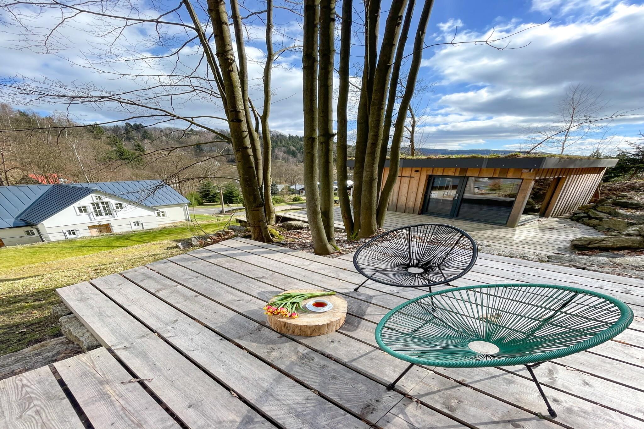 This charming traditional cottage, located in the heart of the Jizera Mountains, is perfect for families, groups of friends, and sports enthusiasts. The cottage can accommodate up to 8 adults and 6 children, with rooms featuring double beds and single beds, ideal for families or small groups. Enjoy a peaceful retreat surrounded by nature, with no distractions from a television but with reliable WiFi. For added luxury, the wine cellar offers a selection of organic Czech wines and regional products. The surrounding area is perfect for outdoor adventures. The cottage is just 2 km from the Jizerská magistrála, a popular cross-country skiing route, and only 4 km from the Tanvaldský Špicák ski resort. In the warmer months, guests can enjoy walking and cycling routes, with the Protržená Dam 5 km away and the picturesque village of Jizerka 10 km away. The cottage is surrounded by a terraced garden blending seamlessly with the forest, and a stream runs in front, perfect for a refreshing dip. Inside, the cottage features a luxurious living kitchen, a play area for children with board games and toys, and a wellness area with a Finnish sauna for 8 people. Relaxation options also include a massage service for an additional fee. For those with electric vehicles, there's an 11kW charger available for a fee. In addition to the main house, a stylish duplex apartment for two people is available during the off-season, offering a private kitchen and bathroom, ideal for couples seeking privacy and comfort.