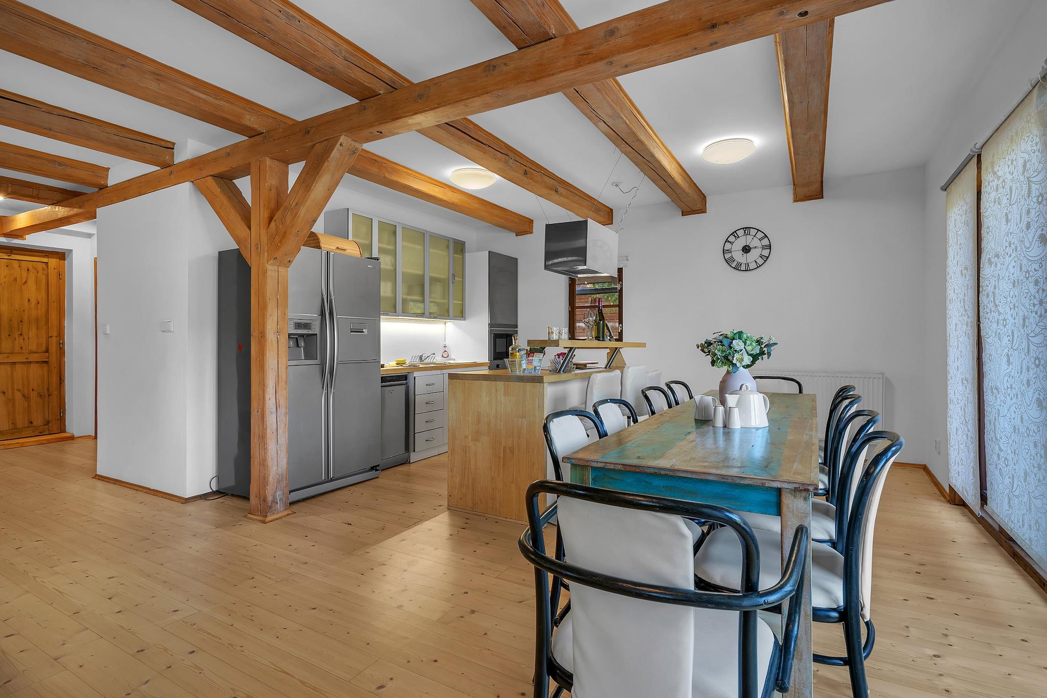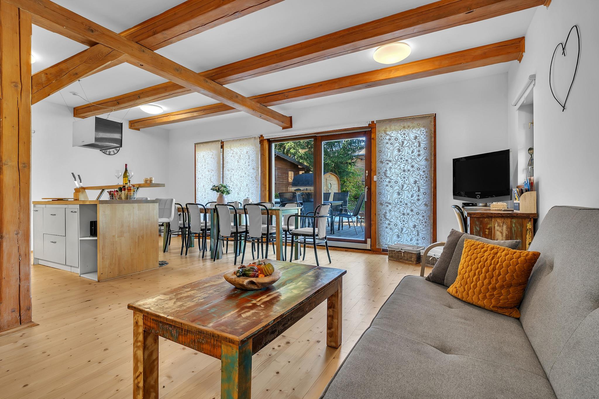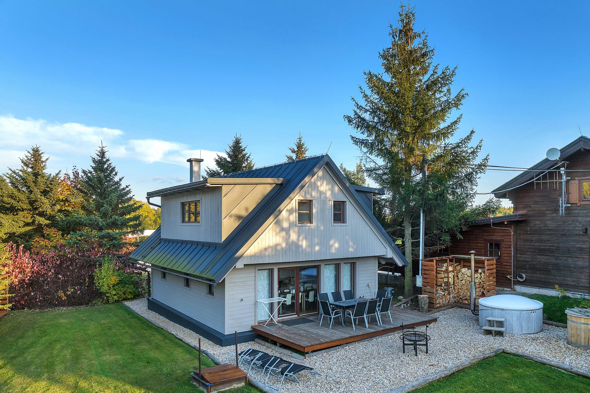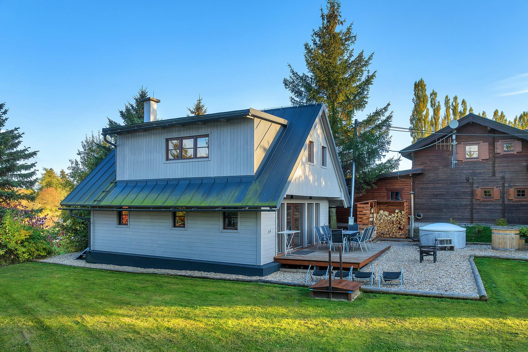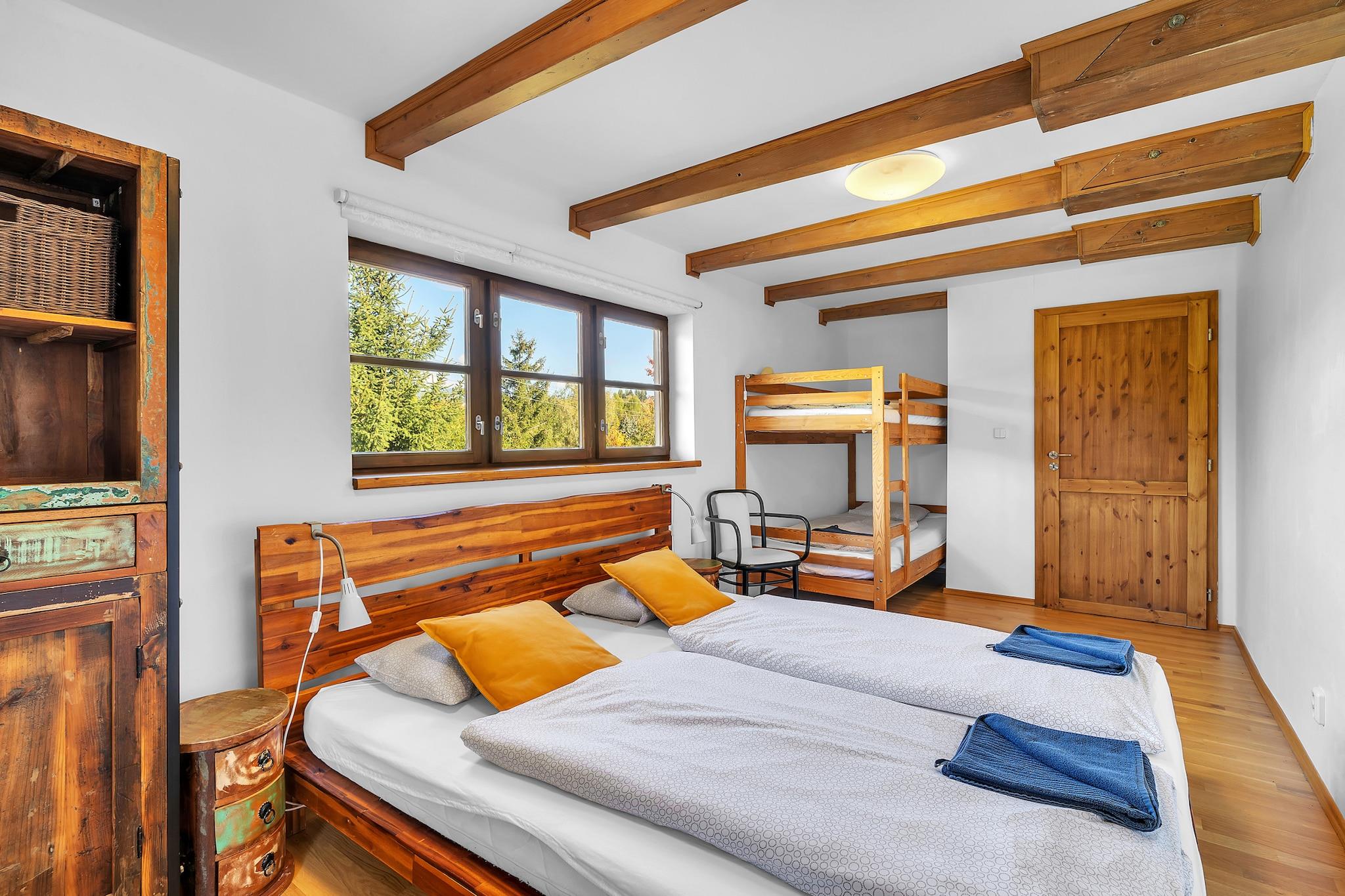 This charming modern villa, nestled in the picturesque town of Dolní Branná, is the ideal retreat for a peaceful getaway. Surrounded by lush greenery, the villa offers a serene setting for families or groups of up to 10 people. Its inviting and spacious interior provides ample room for both relaxation and entertainment, making it a perfect choice for family holidays or a getaway with friends. The village is a haven for outdoor enthusiasts, offering a blend of nature and tranquility. The three-bedroom villa is thoughtfully designed to ensure comfort for all guests. With enough bathrooms to accommodate everyone, there’s no need to wait in line. For added relaxation, the villa boasts a sauna and hot tub, providing the ultimate wellness experience. The jacuzzi is included in the price, with a nominal fee for preheating upon arrival. The modern kitchen is fully equipped for your culinary needs, with a refrigerator, oven, microwave, and all the necessary kitchenware. After cooking, you can unwind and let the dishwasher take care of the cleanup. Outside, the beautiful garden is the perfect place for pets and children to play safely. A private swimming pool offers a refreshing escape during the summer, and the barbecue area makes for an ideal spot to relax and enjoy the evening. Whether you're swimming, grilling, or simply soaking up the sunshine, this villa provides a wonderful environment for relaxation. The location also offers easy access to both winter and summer activities, with nearby ski resorts in the winter and hiking, cycling, and nature exploration in the warmer months.