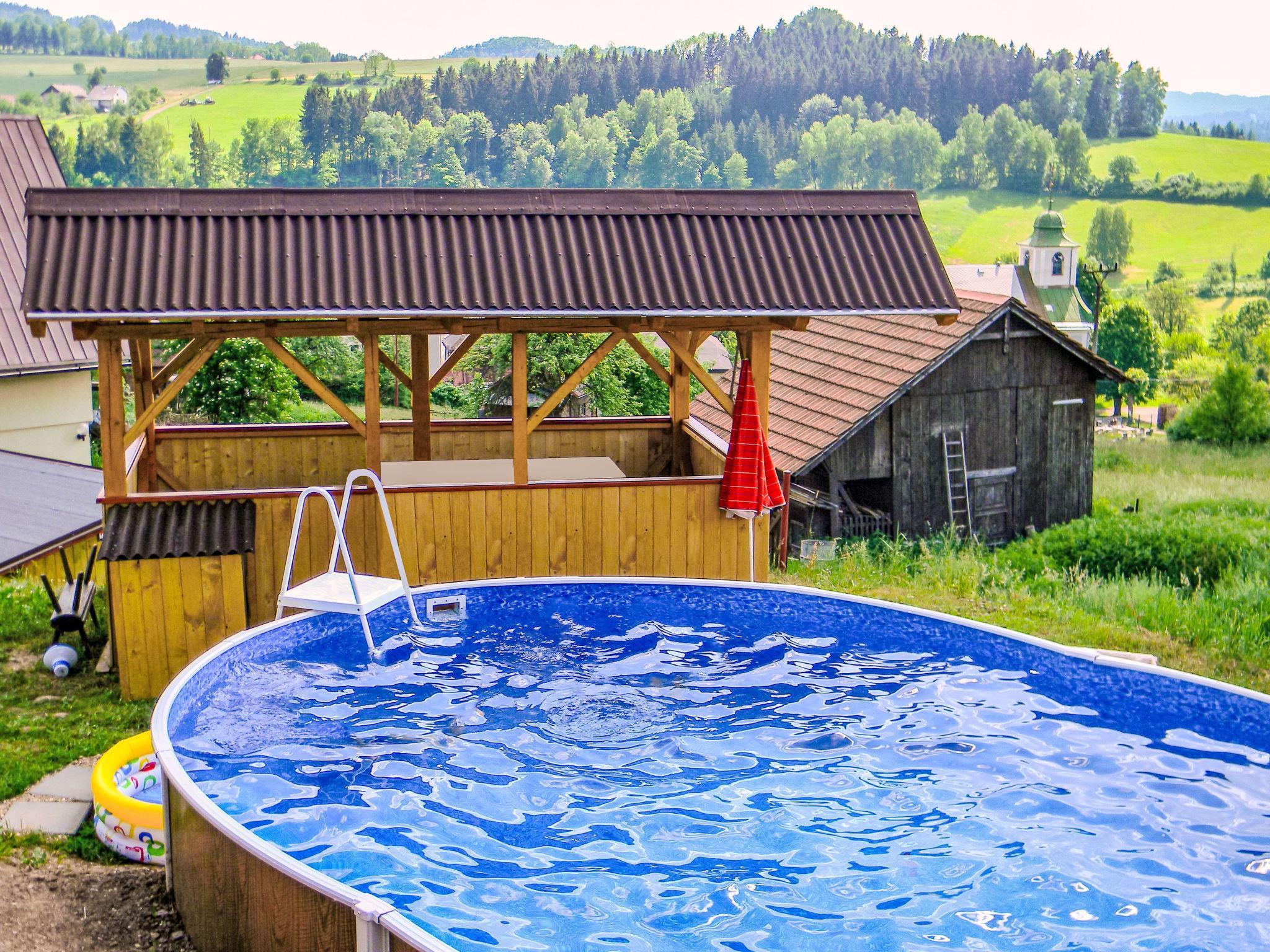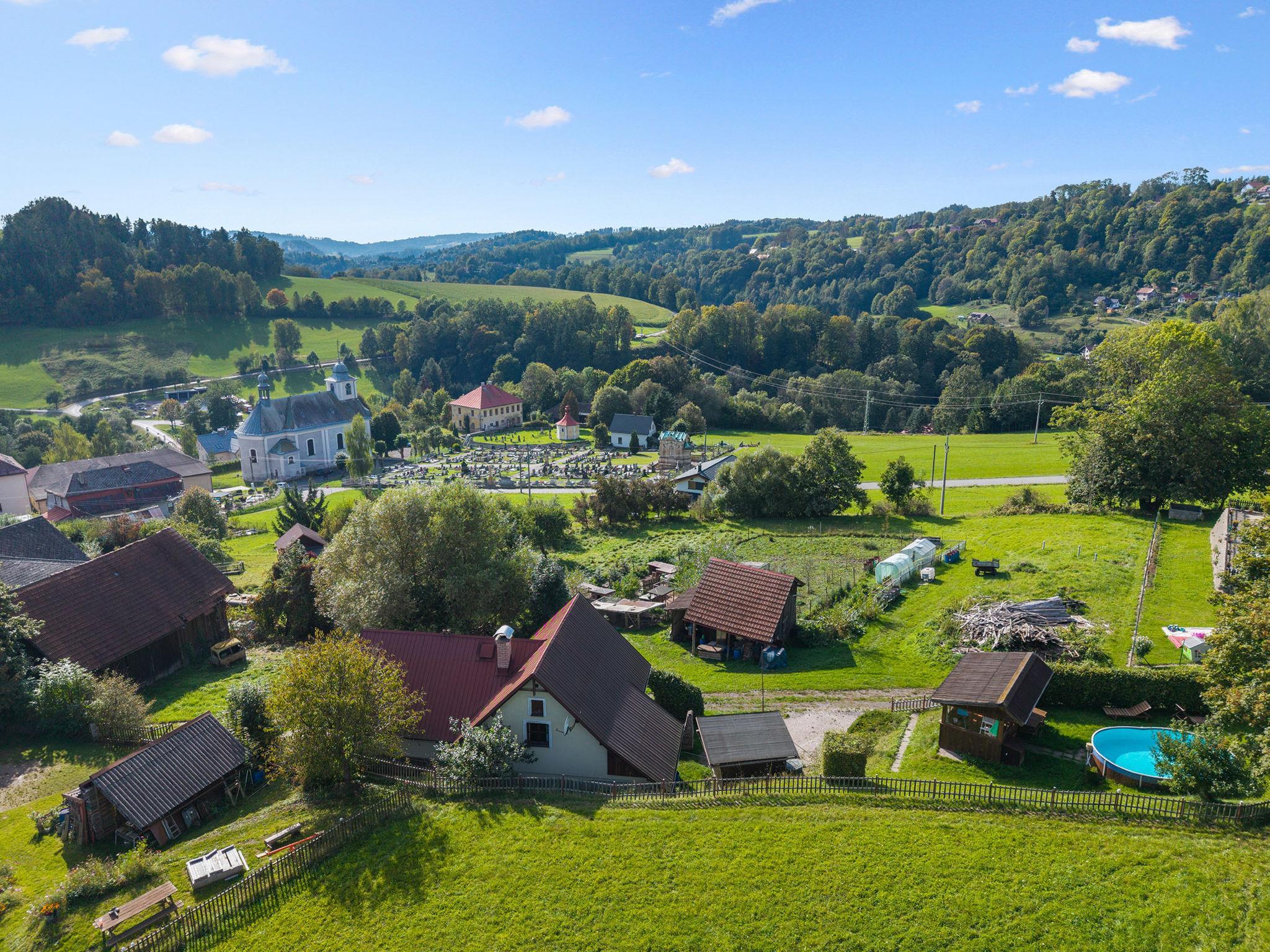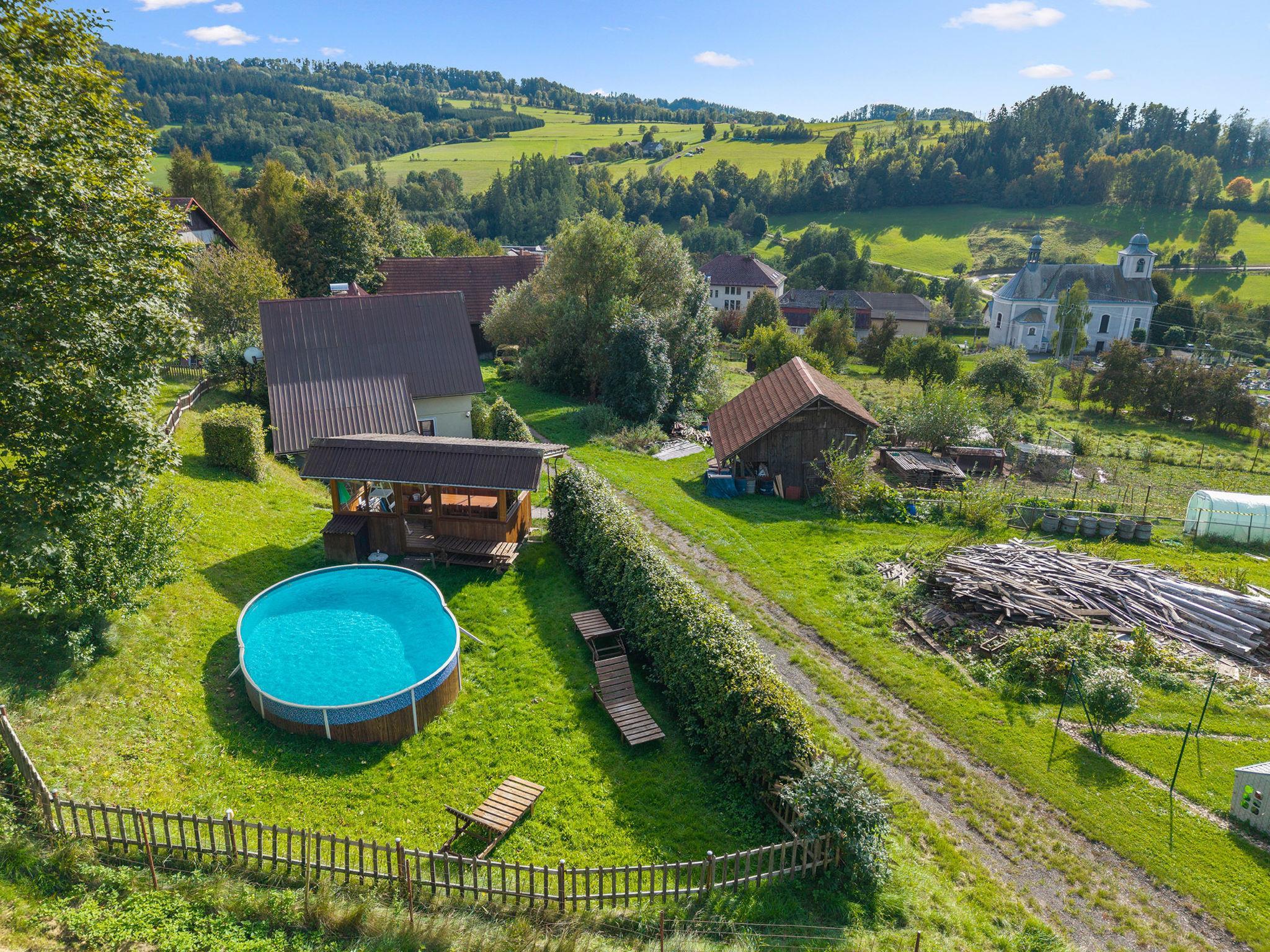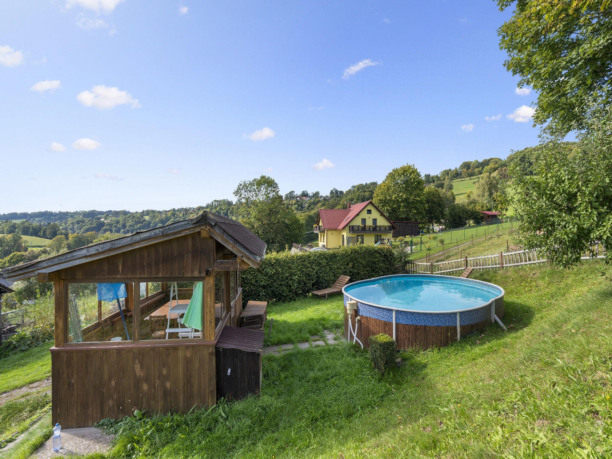 Loukov 10 km from Semily: House, 2 storeys, detached, built in 2009. On the outskirts, in a quiet, sunny position, 10 km from the skiing area. Private: property 400 m2, swimming pool (above ground) (19 m2, seasonal availability: 01.Jun. - 31.Aug.). Terrace, garden furniture, barbecue, children's playground (swing, sandbox). In the house: washing machine. Parking (for 3 cars) on the premises. Shop 1 km, restaurant 1.5 km, bus stop "Háje nad Jizerou, Loukov" 450 m, outdoor swimming pool 5 km, indoor swimming pool 8 km. Ski lift 10 km, cross country ski track 8 km. Nearby attractions: Muzeum moto an auto veteránu Loukov 500 km, Bozkovské jeskyne 15 km. Well-known ski regions can easily be reached: Vysoká nad Jizerou 10 km, Benecko 15 km, Vítkovice 20 km. Hiking paths: Jilemnice 10 km, Ceský ráj (Hrubá Skála, Trosky) cca. 40 km.