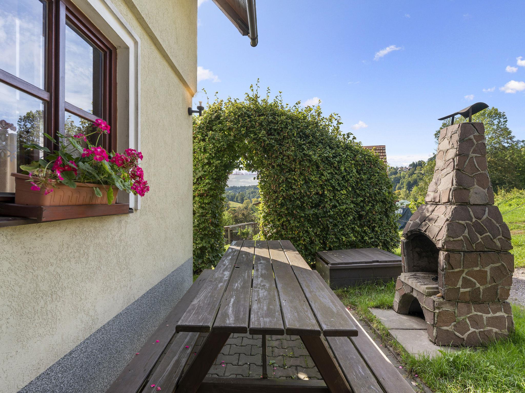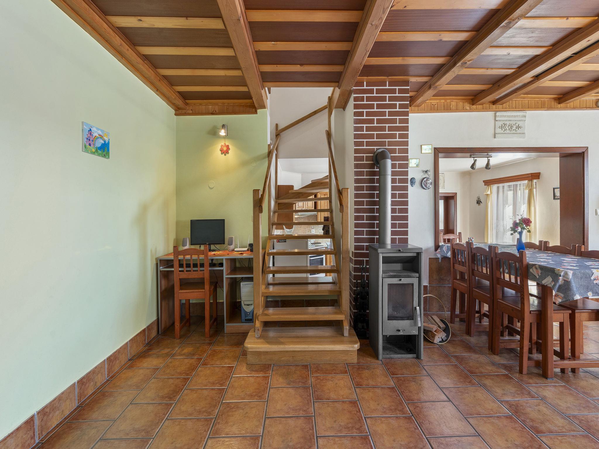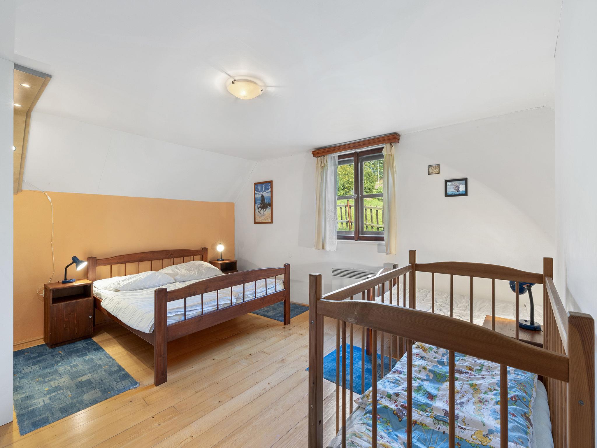 "Loukov u Semil", 4-room house 144 m2 on 2 levels. Living room with 1 sofabed, Scandinavian wood stove and satellite TV. Open kitchen (oven, dishwasher, 4 ceramic glass hob hotplates, toaster, kettle, microwave, electric coffee machine) with dining table. Bath/shower, bidet, sep. WC. Upper floor: 1 room with 1 bed and 1 double bed. 1 room with 1 bed and 1 double bed. 1 room with 2 beds. Sep. WC. Electric heating, wood heating. 2 terraces. Terrace furniture. Beautiful view of the countryside. Facilities: logs (free). Internet (WiFi, free). Please note: suitable for families. Non-smoking house. Maximum 2 pets/ dogs allowed. Smoke alarm, fire extinguisher.