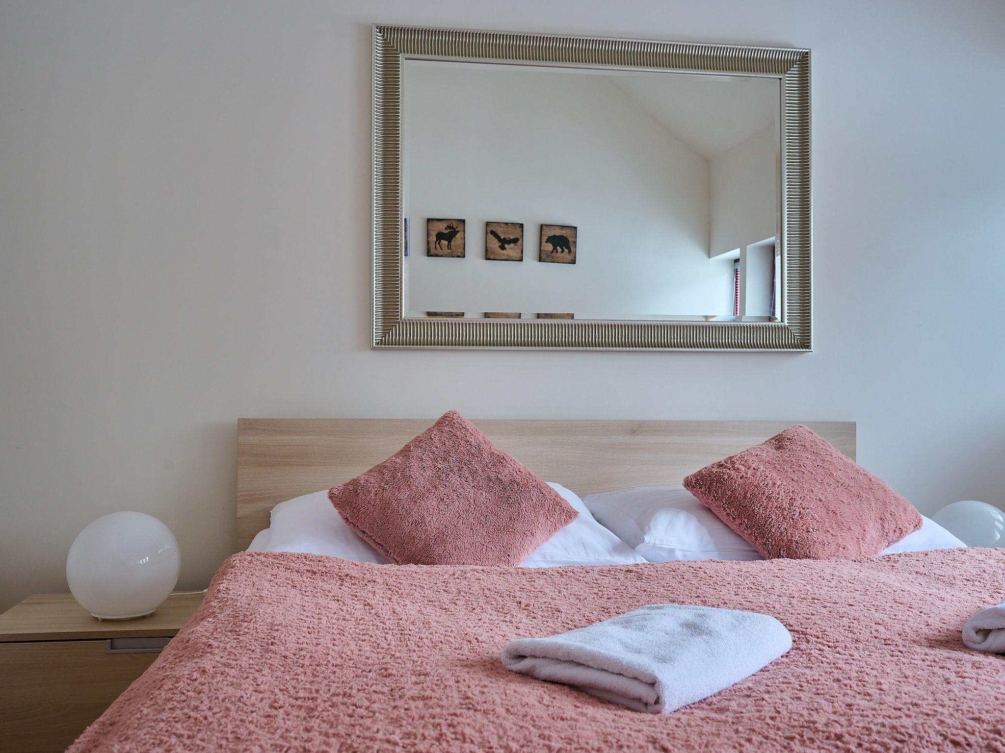 6-room chalet 120 m2 on 3 levels. Comfortable and modern furnishings: large living/dining room with satellite TV (flat screen). Exit to the terrace. Kitchenette (oven, dishwasher, 4 ceramic glass hob hotplates, toaster, kettle, microwave, freezer, grill, electric coffee machine). Shower/WC. Boiler (300 litres). Upper floor: 3 rooms, each room with 1 double bed. Bath/WC. 2nd upper floor: 2 rooms, each room with 2 beds. Terrace 15 m2. Terrace furniture. View of the mountains, the countryside and the town. Facilities: baby cot for up to 3 year olds. Internet (WiFi, free). Maximum 1 pet/ dog allowed.