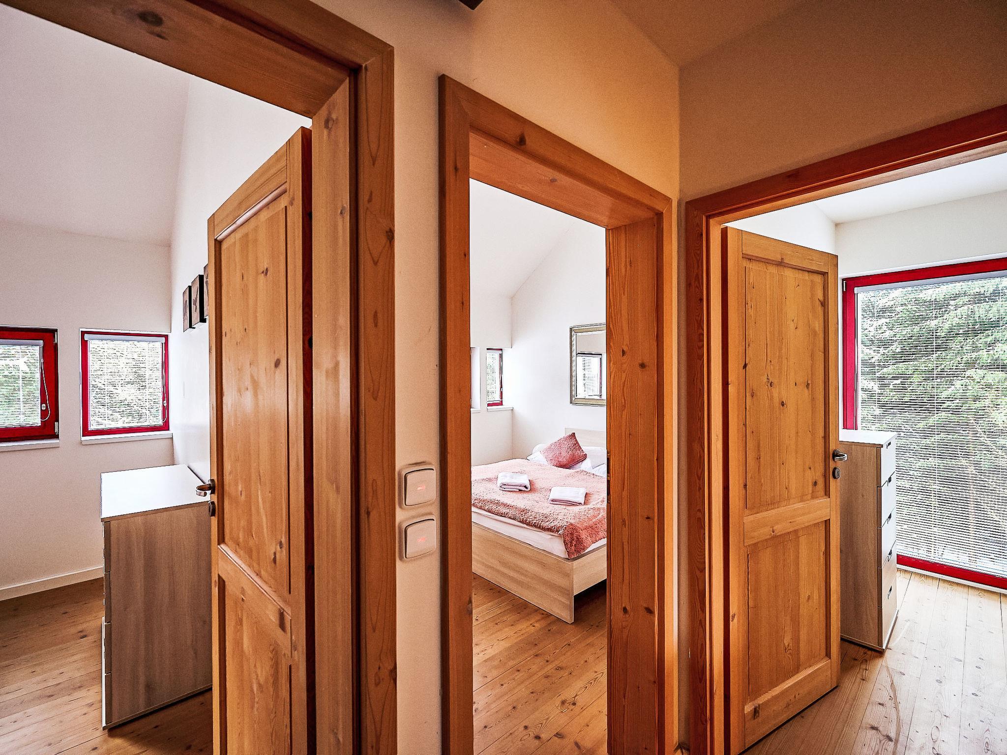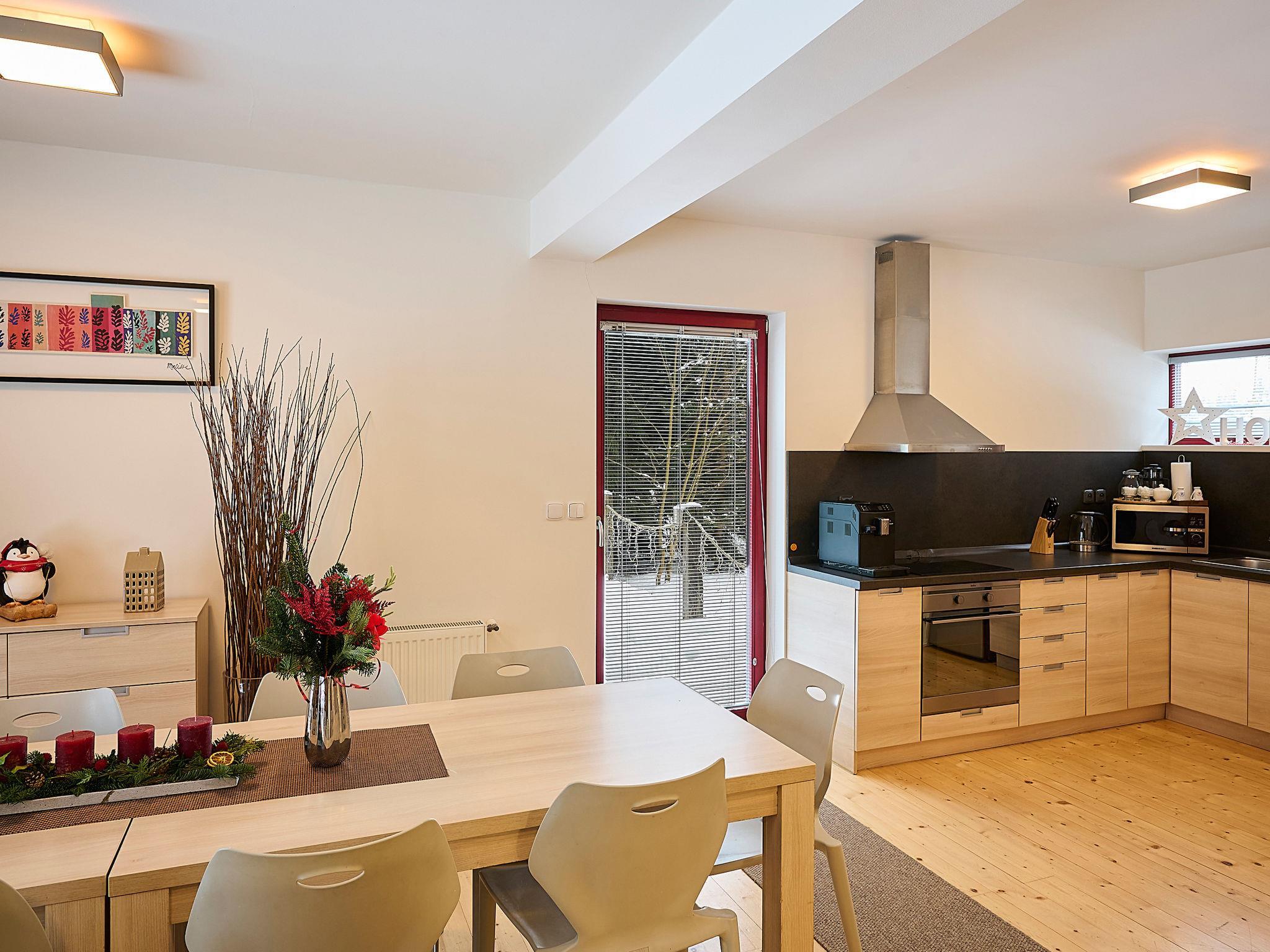 Modern chalet "Harrachov", 3 storeys. On the outskirts, 500 m from the centre of Harrachov, in a quiet, elevated position, 500 m from the skiing area. For shared use: property, meadow. Private: terrace, garden furniture. In the house: central heating system. Roofed, parking at the house. Shop, grocery 200 m, supermarket 300 m, restaurant 200 m, bus stop 100 m, railway station 3 km, outdoor swimming pool 500 m, thermal baths "Orea Resort Sklár" 100 m. Golf course (9 hole) 5 km, mountain railway, ski lift 400 m, ski bus stop 50 m, ski school 200 m, cross country ski track 400 m, children's playground 100 m. Nearby attractions: Mumlavský vodopád 1 km, Skokanské mustky Harrachov 1.5 km, Bobová dráha, Muzeum skla 2 km, Vosecká bouda, Dvoracky 9 km, Hutský vodopád 9 km, Vodopád Kamienczyka, Szklarki (PL) 12 km. Well-known ski regions can easily be reached: Zákoutí 150 m, Hilbert 300 m, Certova Hora 500 m, Ryžovište 2 km, Korenov 7 km, Rokytnice nad Jizerou 15 km. Well-known lakes can easily be reached: Vodní nádrž Souš 15 km.