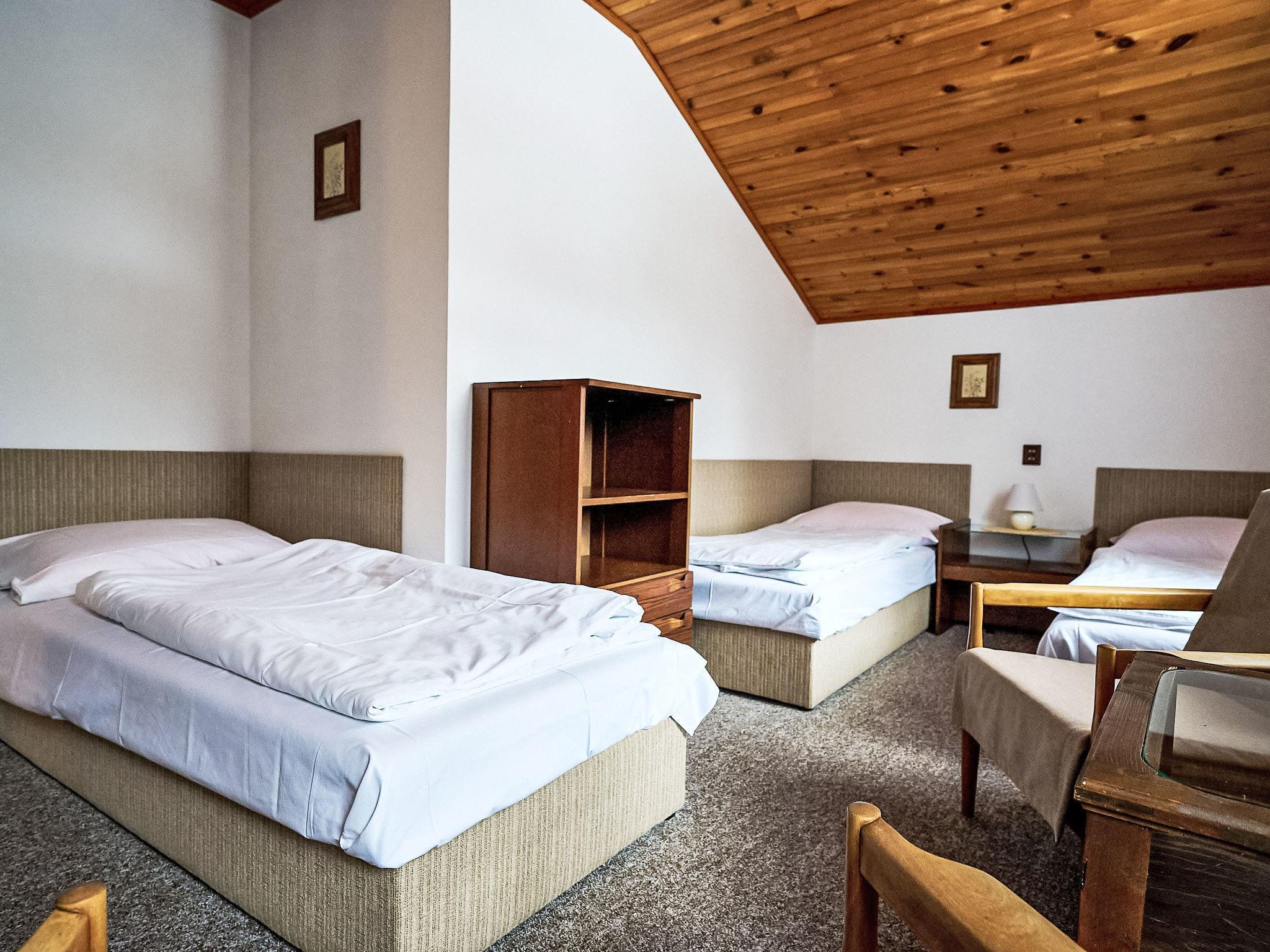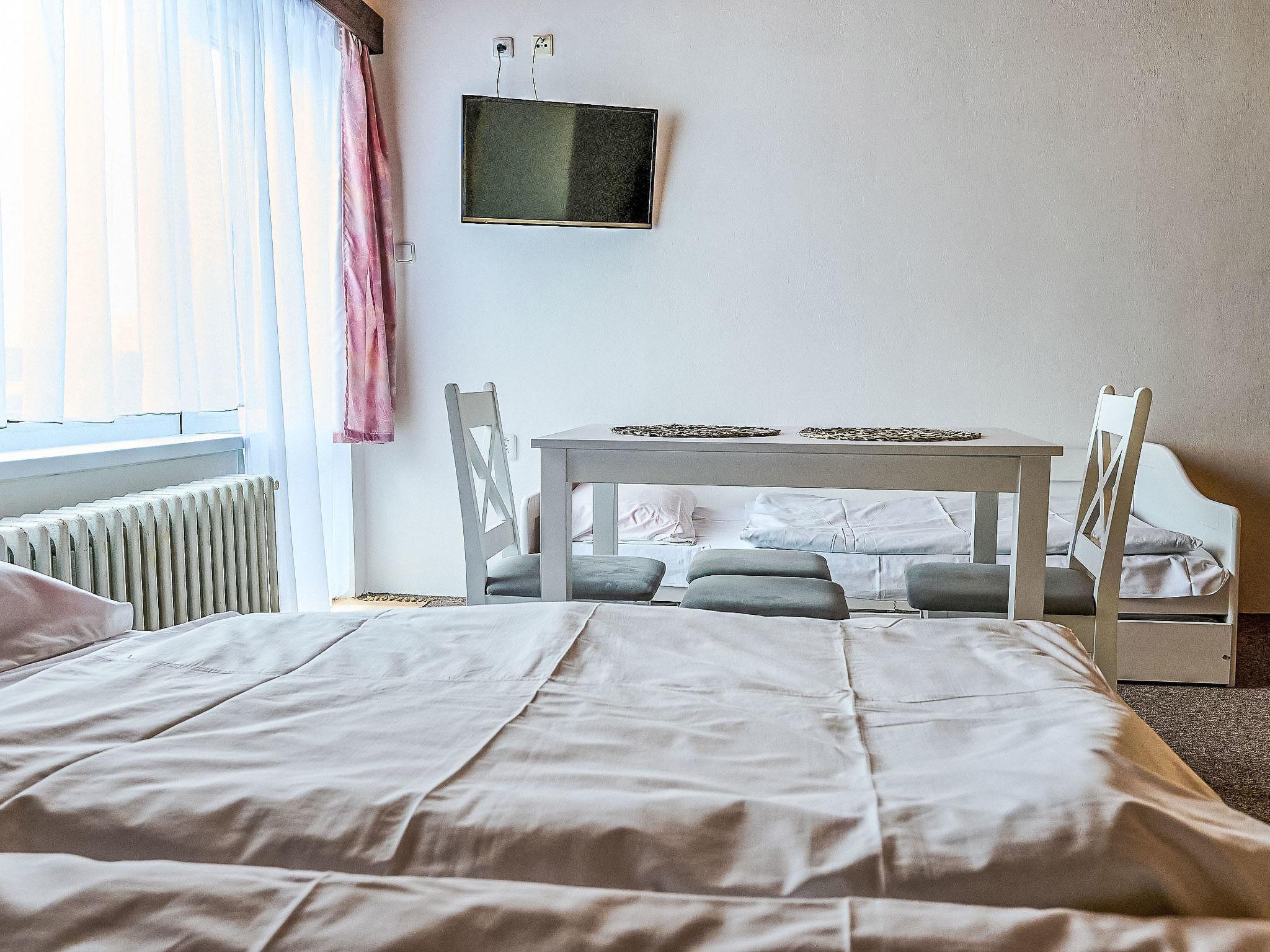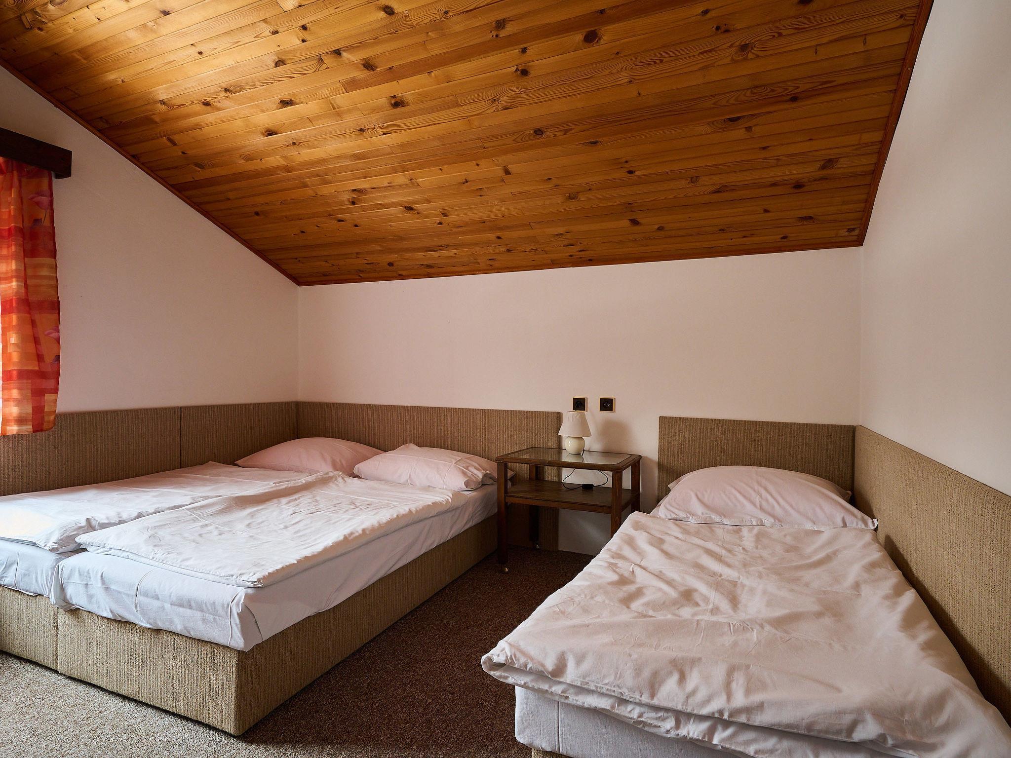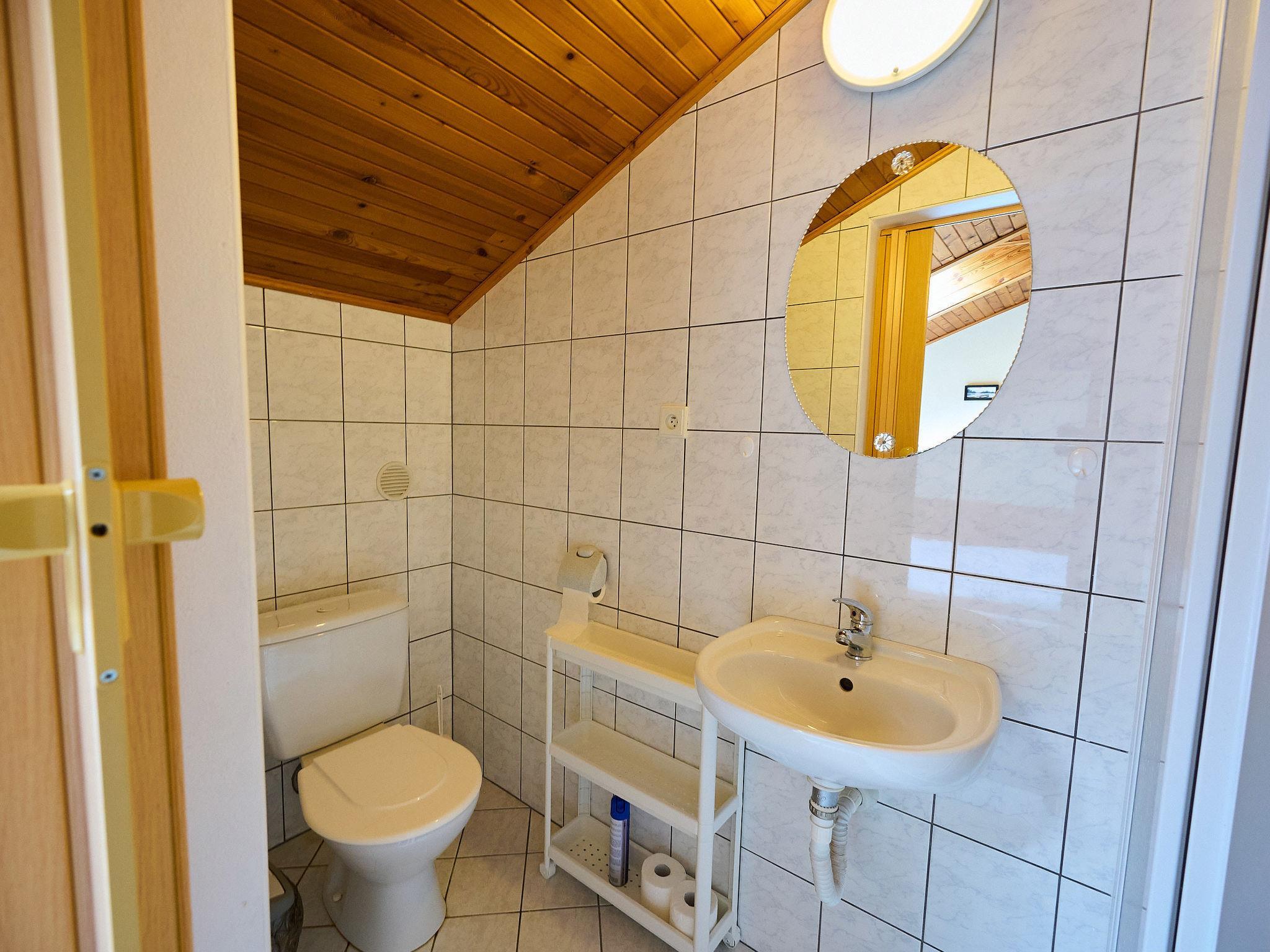 "Burger", 6-room house on 2 levels. Practical furnishings: on the lower ground floor: living/dining room with satellite TV. Small kitchenette (2 hot plates, toaster, kettle, microwave, electric coffee machine). Electric heating. Top floor: 2 rooms with sloping ceilings, each room with 1 bed, 1 double bed, shower/WC and satellite TV. Exit to the balcony. 1 room with sloping ceilings with 1 double bed, shower/WC and satellite TV. 2 rooms with sloping ceilings, each room with 3 beds, shower/WC and satellite TV. View of the garden. Facilities: Internet (WiFi, free). Please note: suitable for families. Non-smokers only. Maximum 1 pet/ dog allowed. When there are less than the maximum number of guests staying at the property, not all of the bedrooms will be available for use.